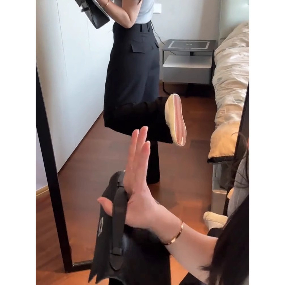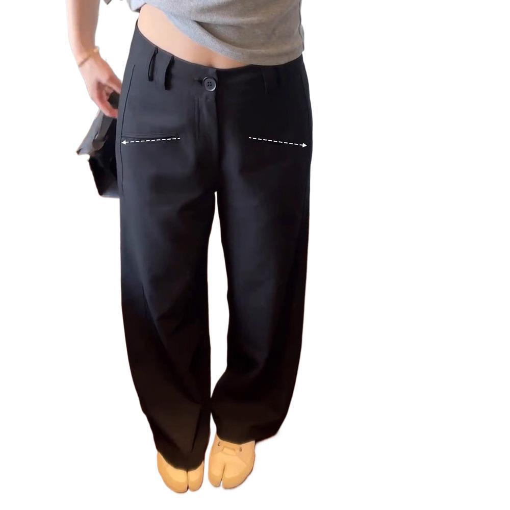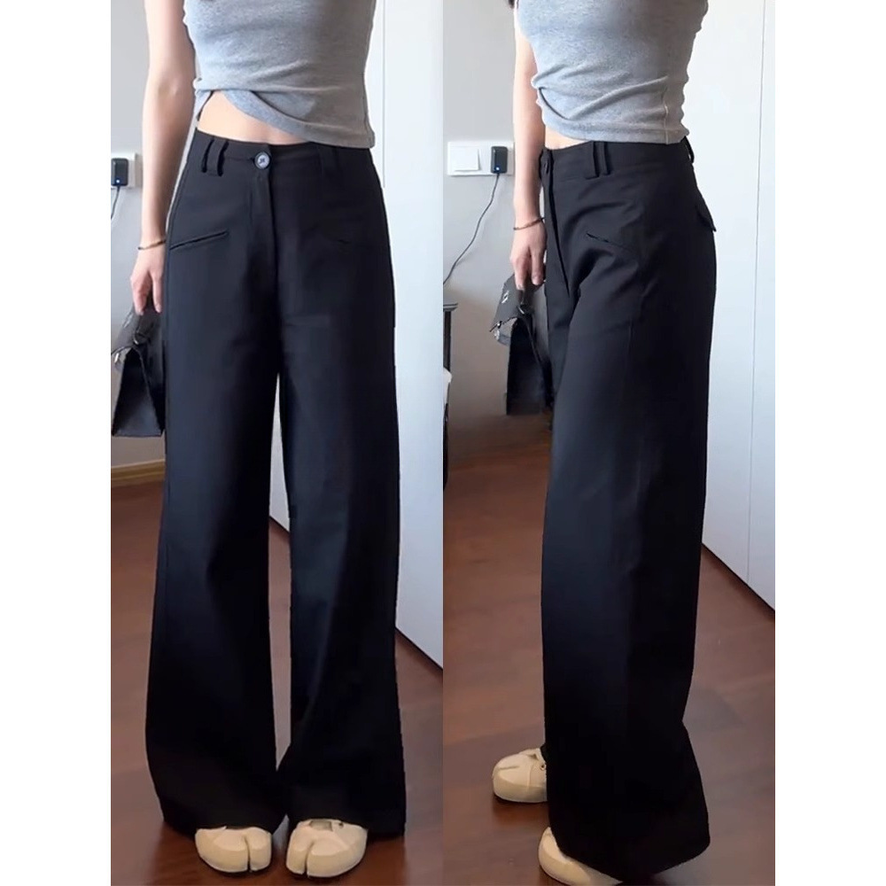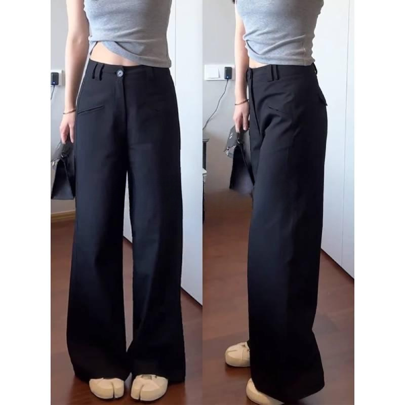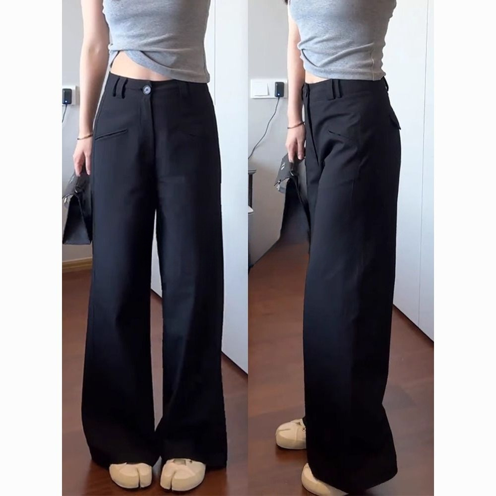 Черные брюки с широкими ногами женские ранние осенние толстые большие размеры груши с высокой талией