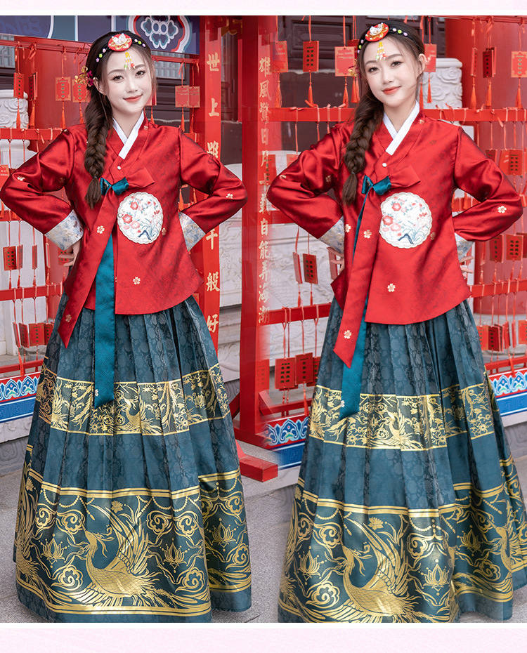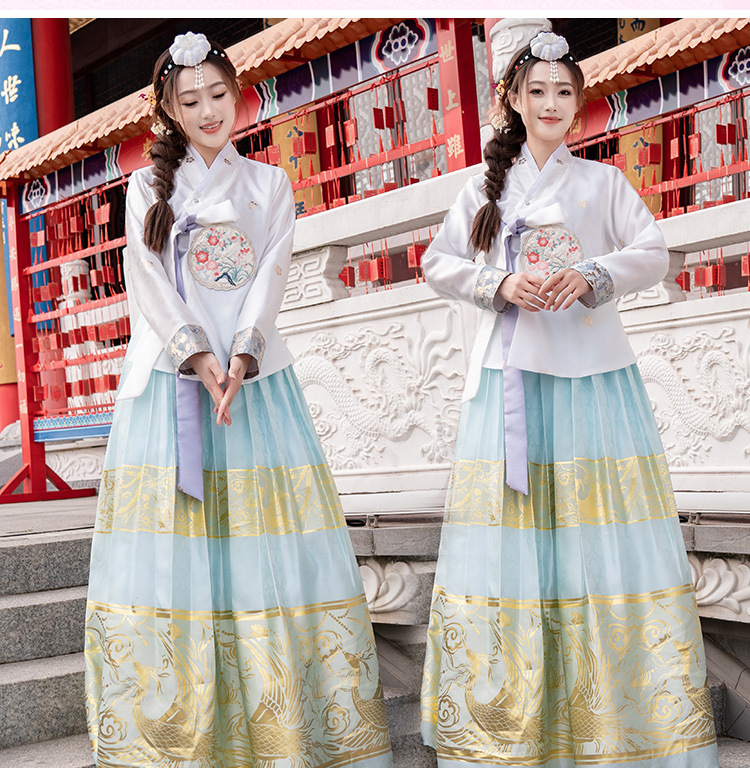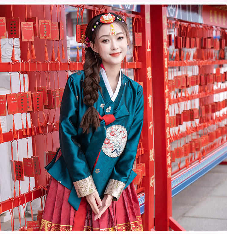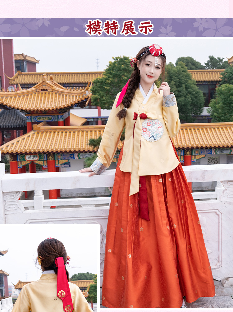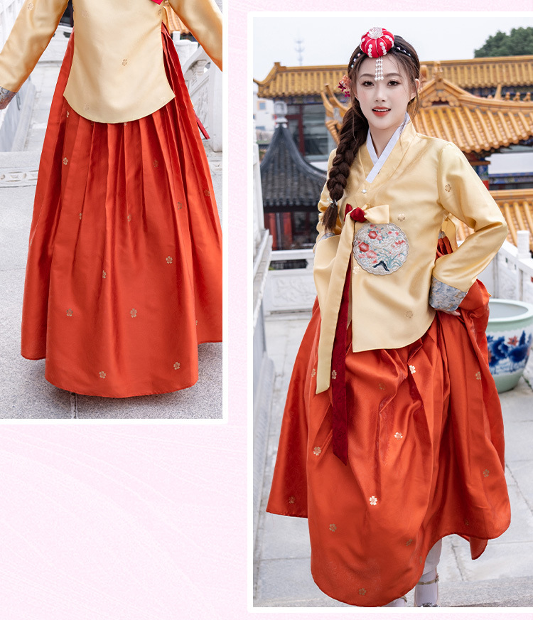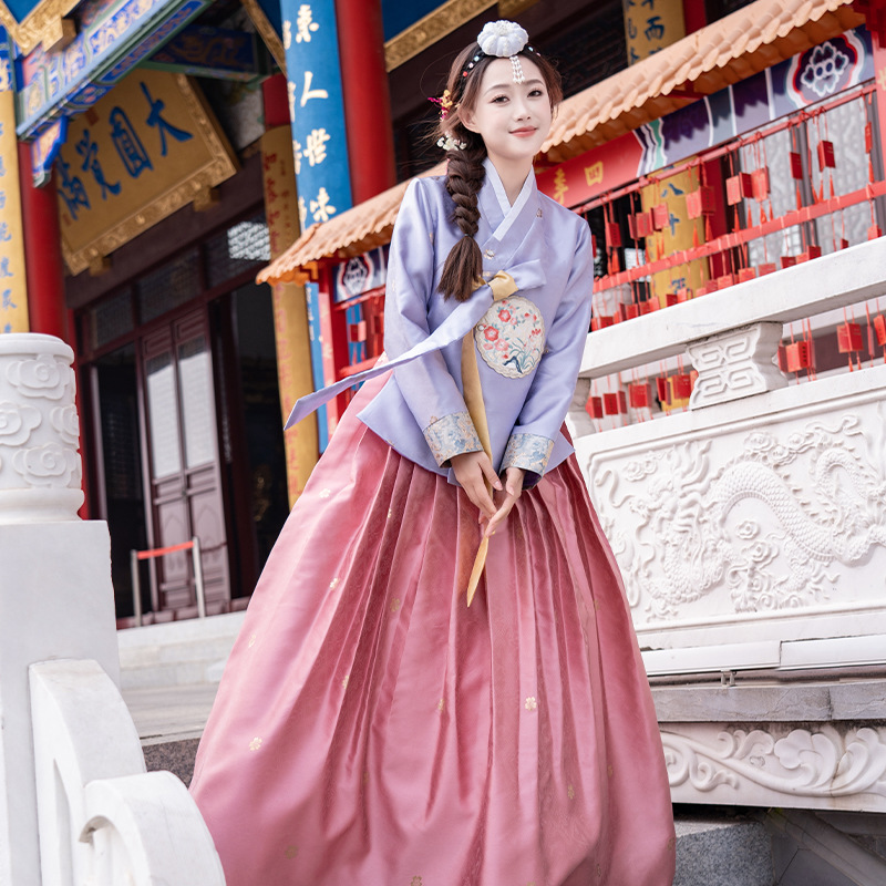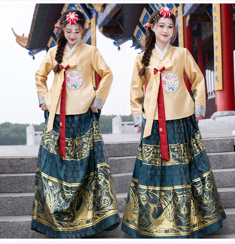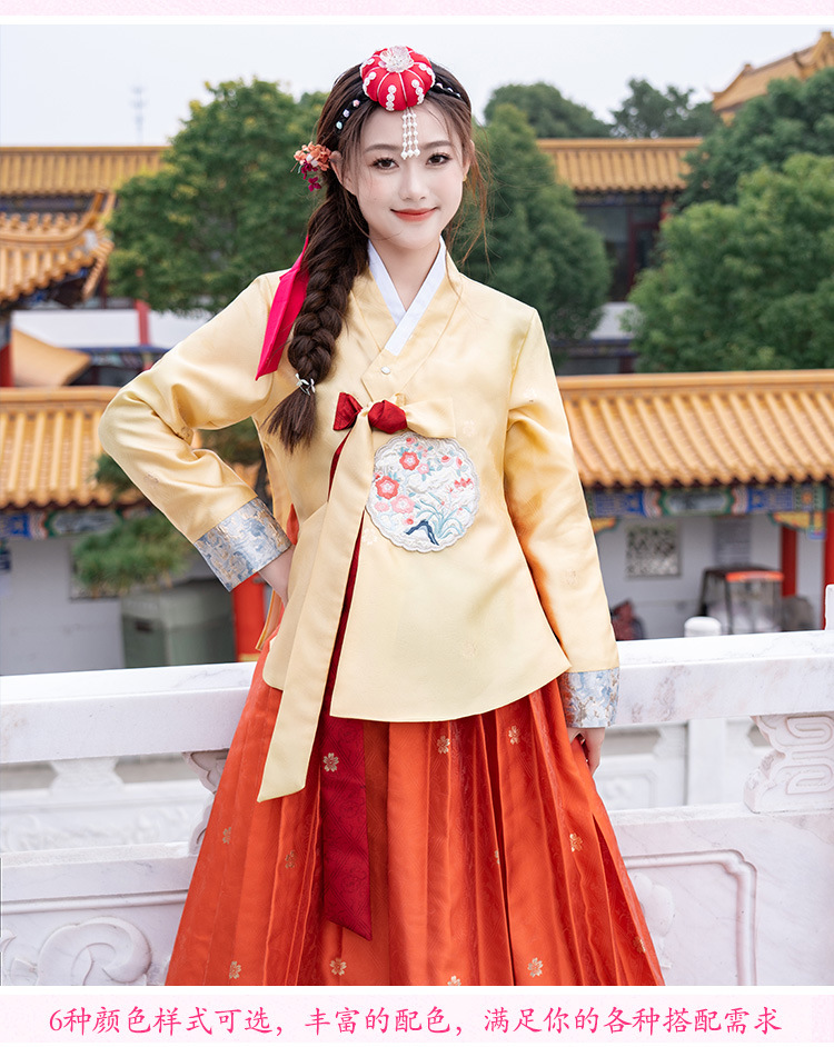 2025 новая корейская одежда свежая корейская одежда корейская женская традиционная корейская одежда красный синий национальный танцевальный костюм