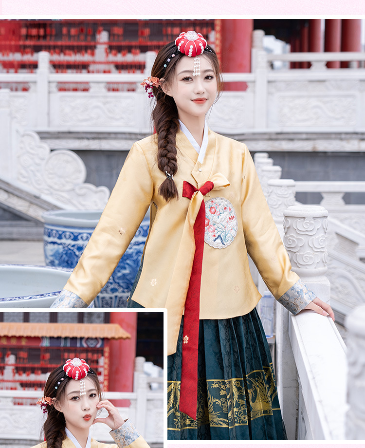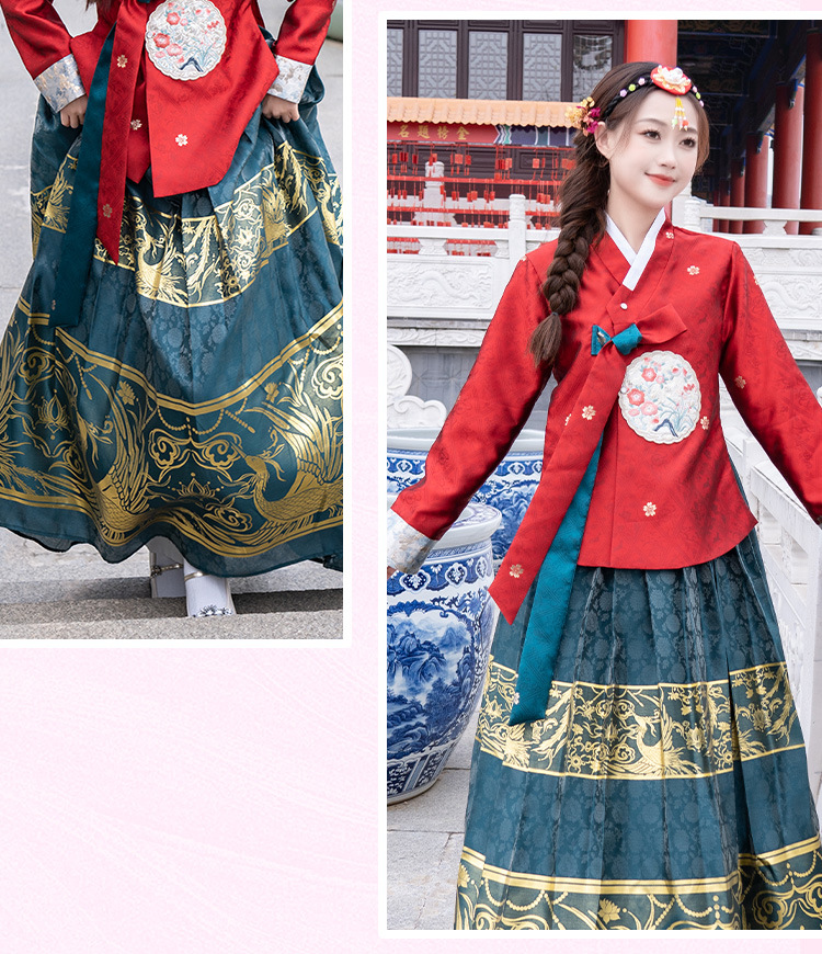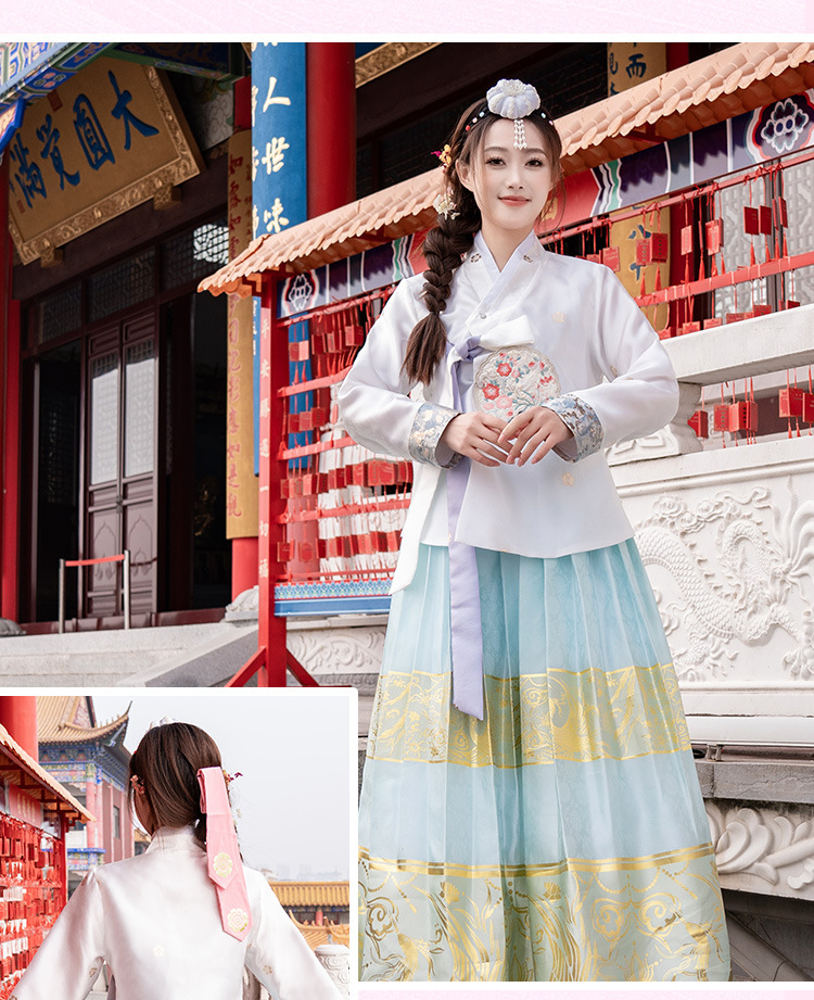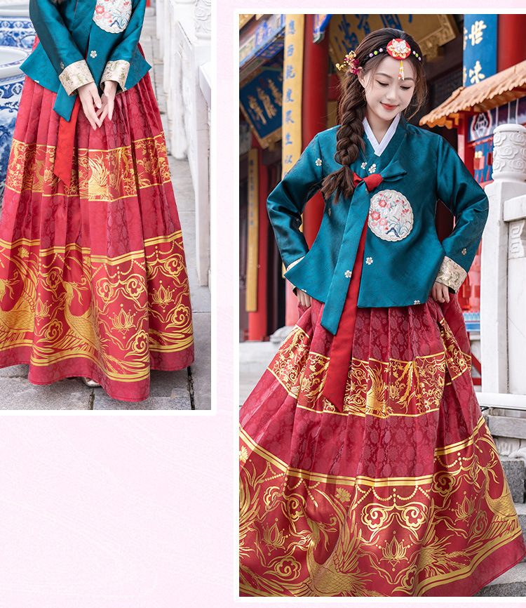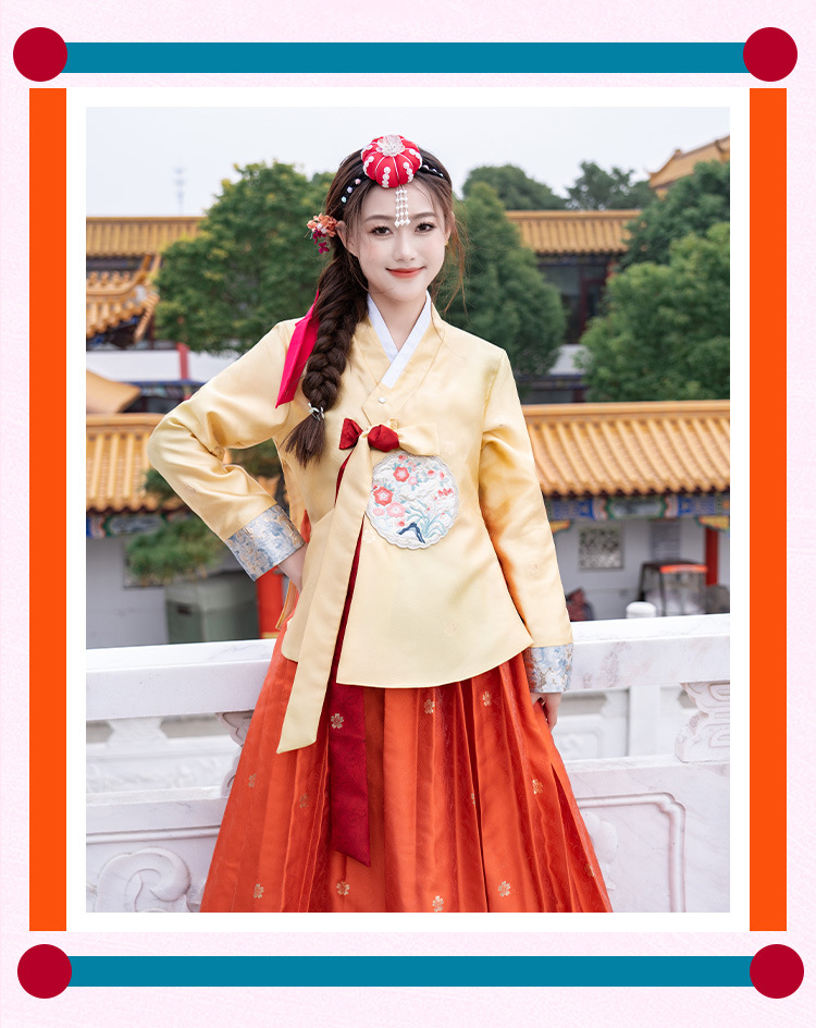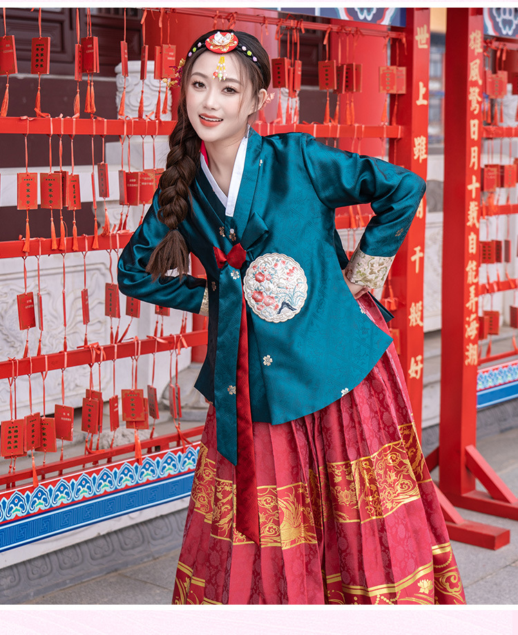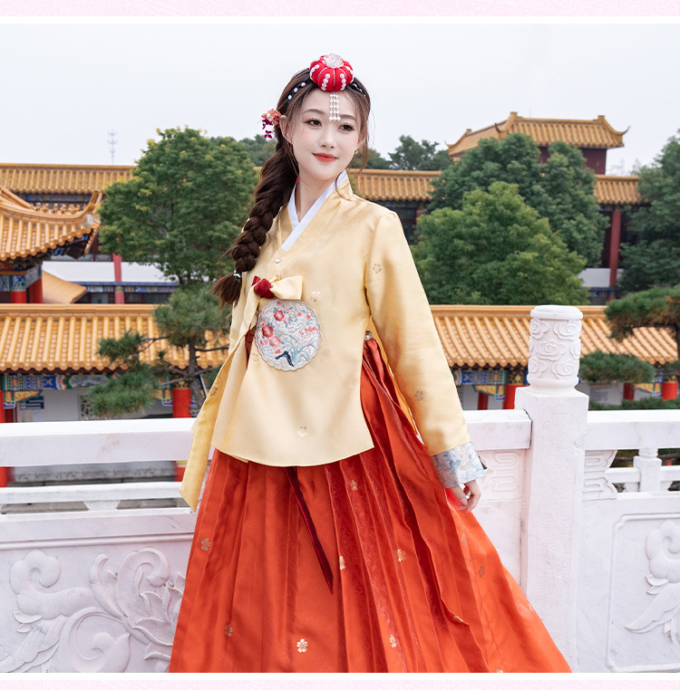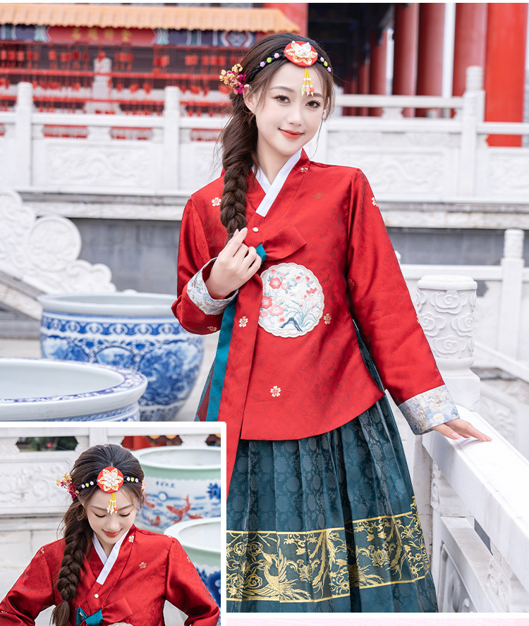 2025 новая корейская одежда свежая корейская одежда корейская женская традиционная корейская одежда красный синий национальный танцевальный костюм