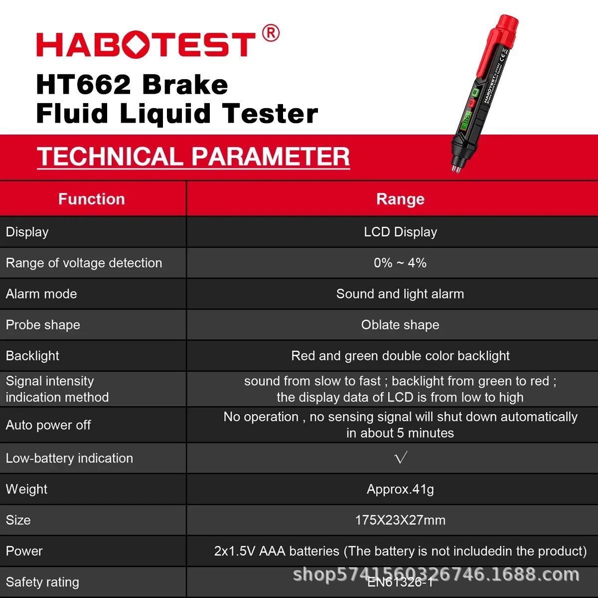 HT662 ручка для проверки тормозной жидкости, английская версия