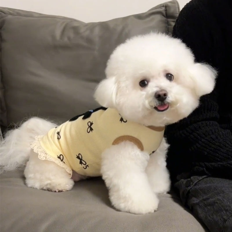 Собачья одежда весной и летом новый вафовый хлопковый кружевной жилет Тедди Пи Шнауцер костюм