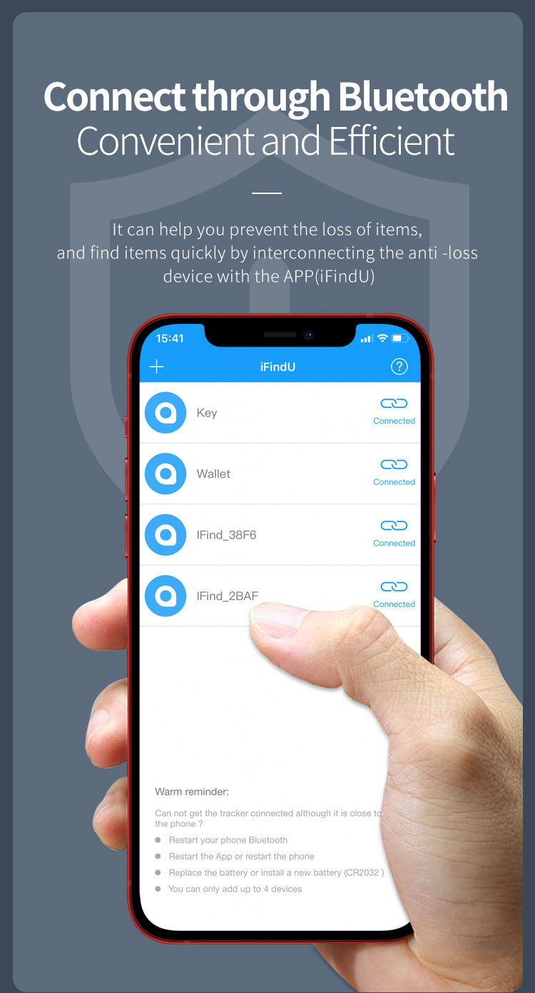 3. 请点击注册界面的+,并把iFindU靠近手机,iFindU将会和手机自动匹配。