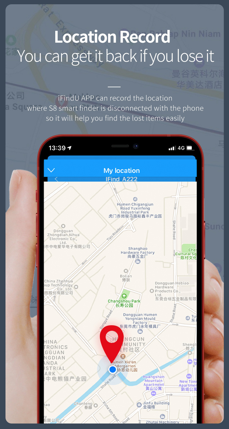 2.智能防丢寻物:自动记录物品丢失位置,当设备与手机断开时,软件地图会自动记录位置,通过地图寻找定位记录,当到达有效范围后,设备与手机会自动重连,点击寻找按键,轻松找回丢失物品。