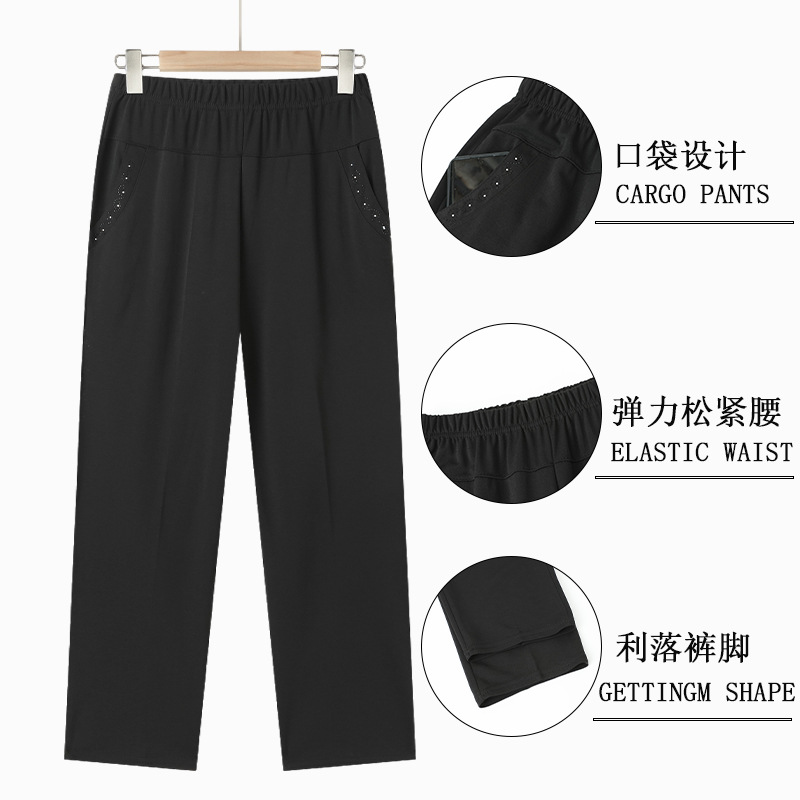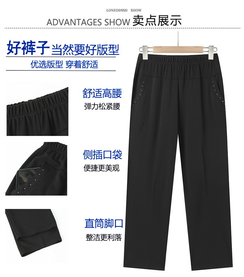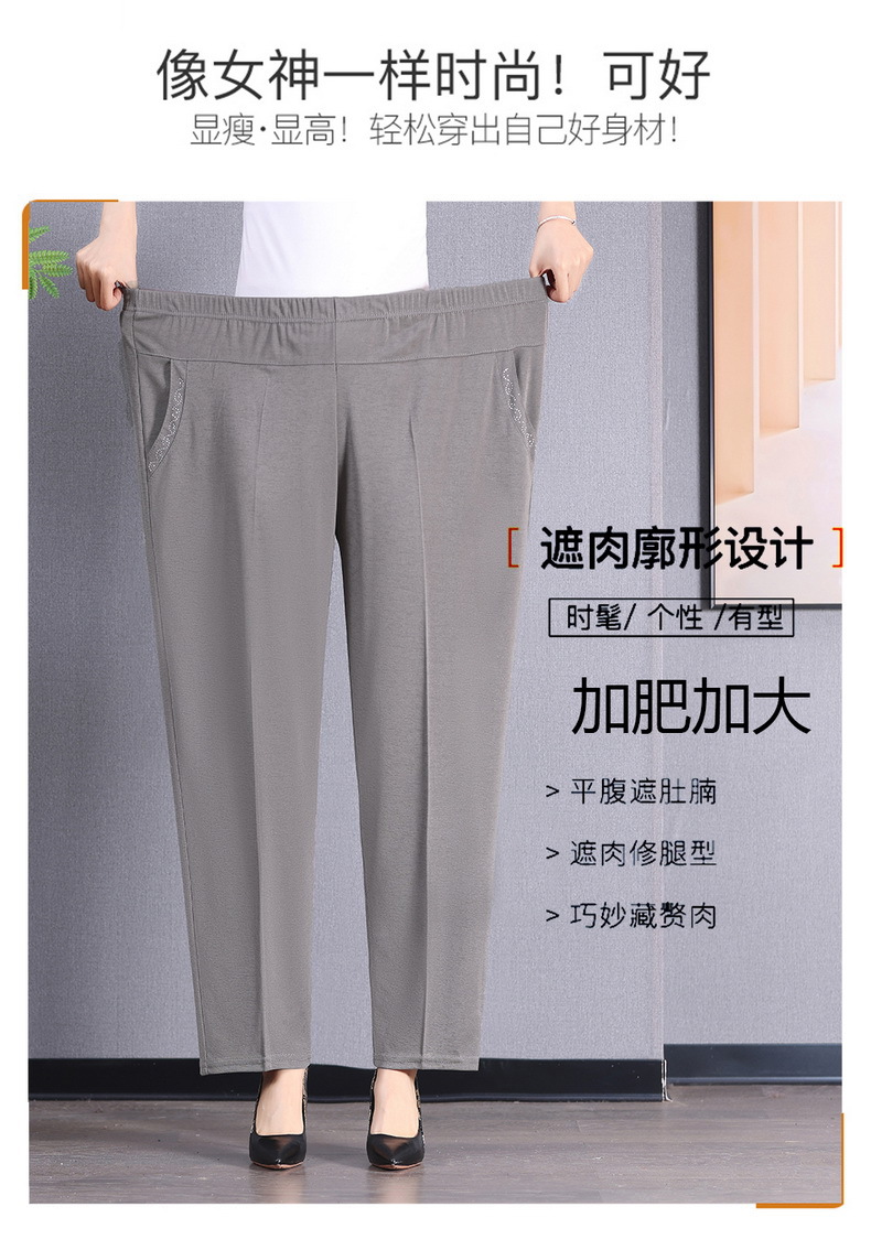 Мама брюки Летние тонкие ледяные шиловые укороченные брюки среднего и пожилого возраста женские брюки летние свободные повседневные брюки большого размера прохладные