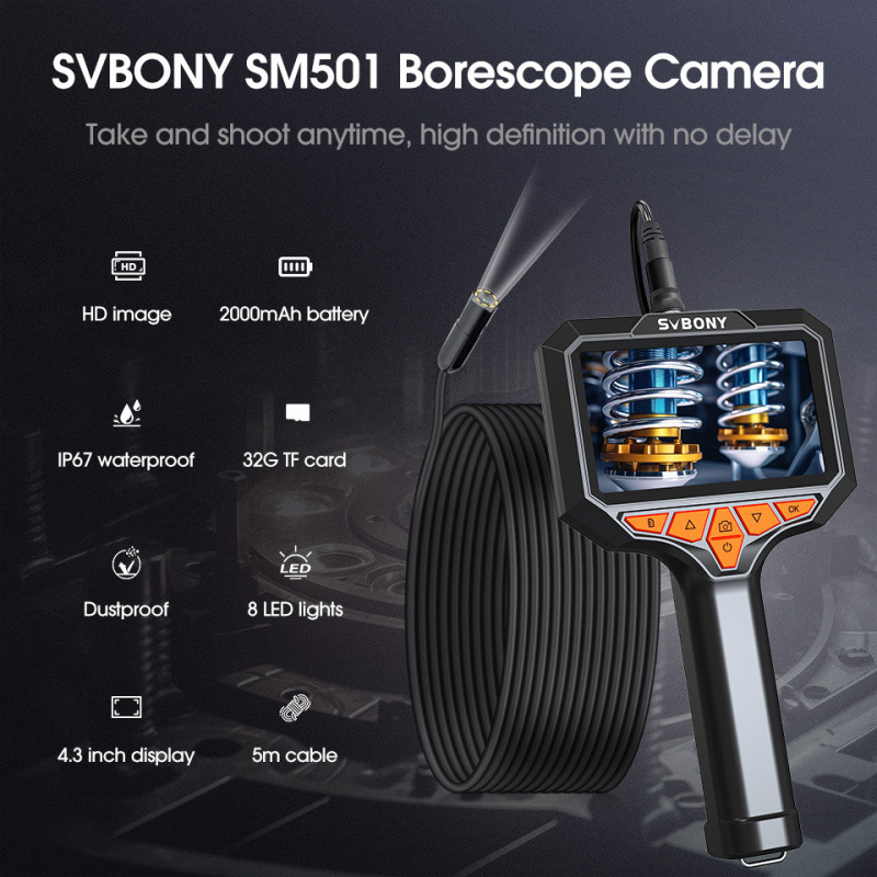 Промышленный эндоскоп SVBONY, 200 Вт, пиксель высокой четкости, 4.3inch IP67, водонепроницаемый зонд для осмотра и фотографии