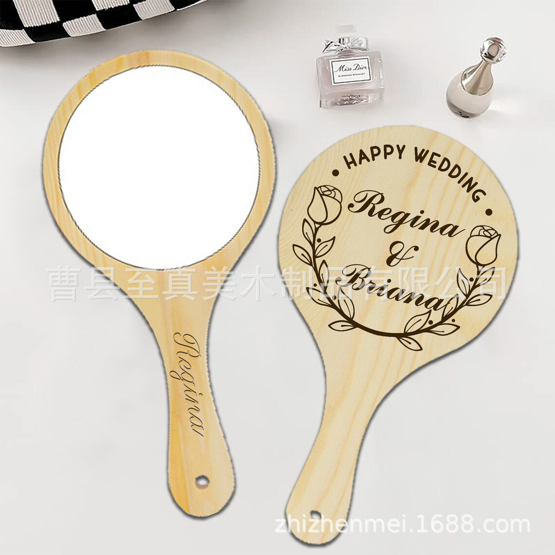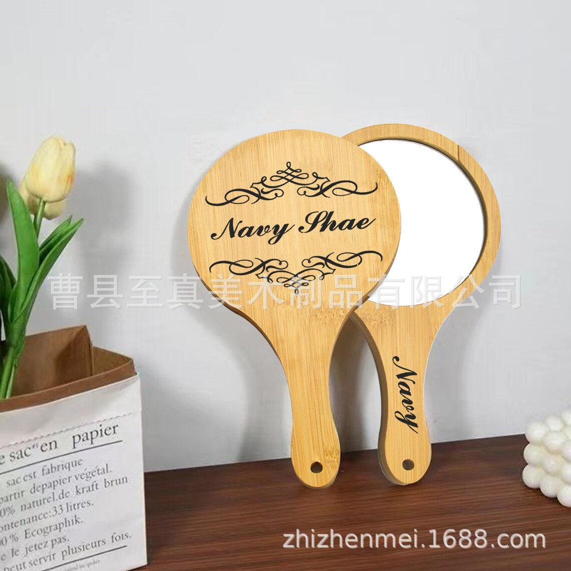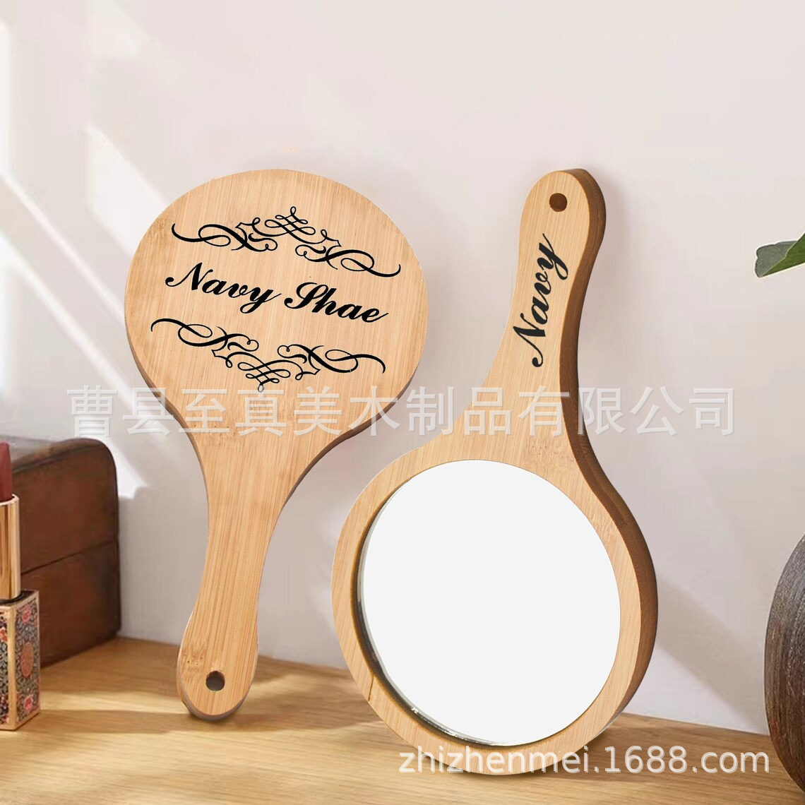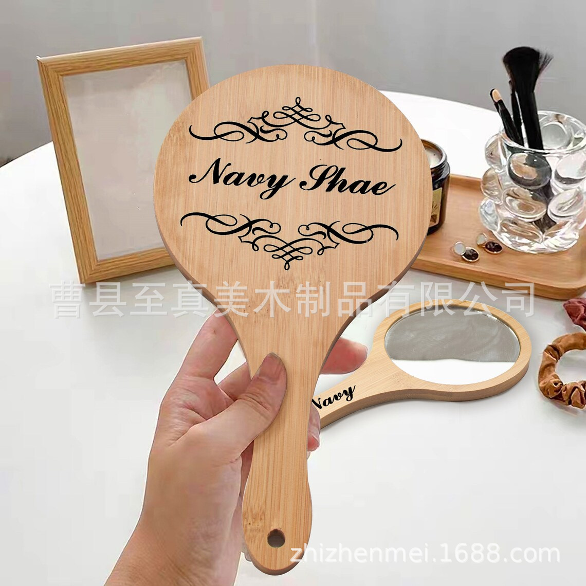 Салон красоты с вышивкой деревянное зеркало для макияжа деревянная ручка зеркало полупостоянное большое старинное зеркало