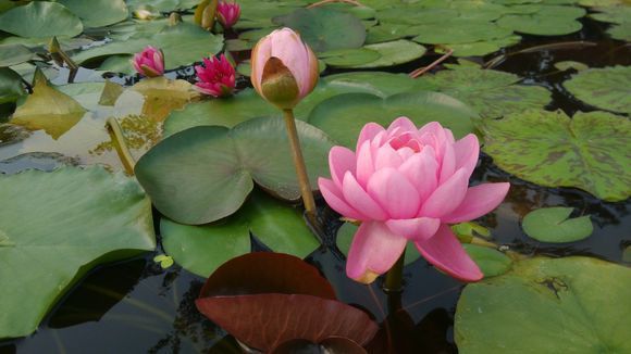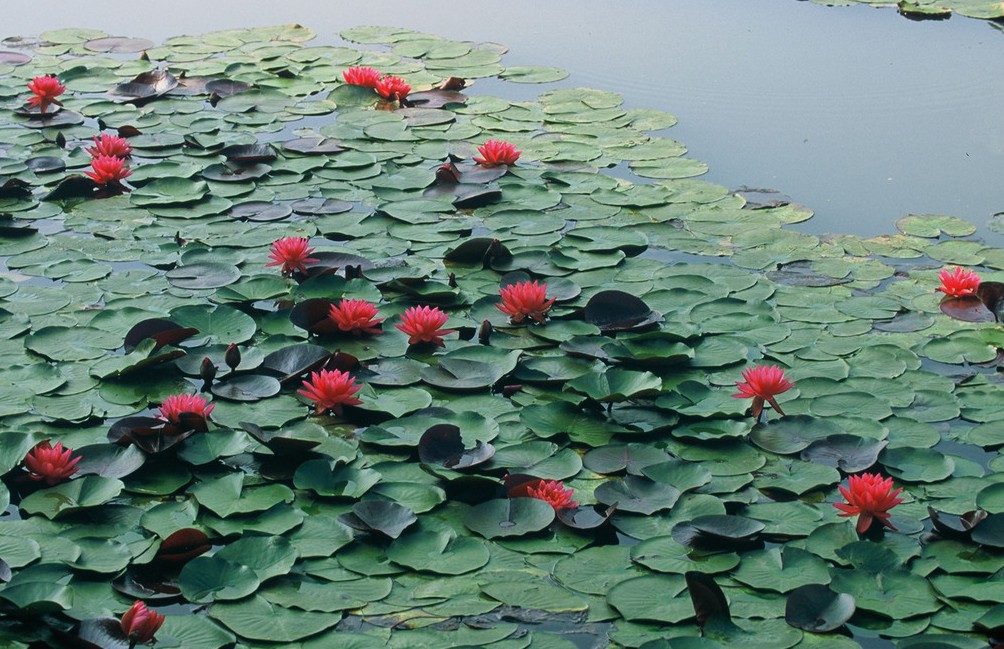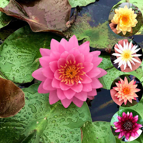 желтая водяная лилия; белая водяная лилия; красная водяная лилия; розовая водяная лилия