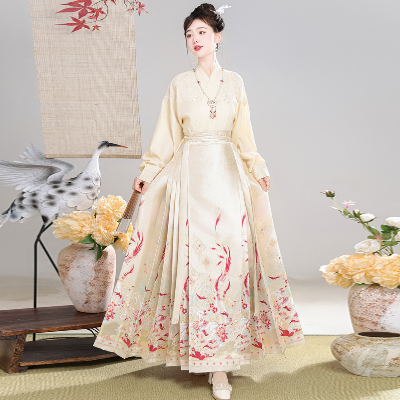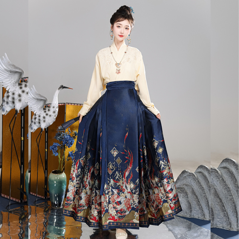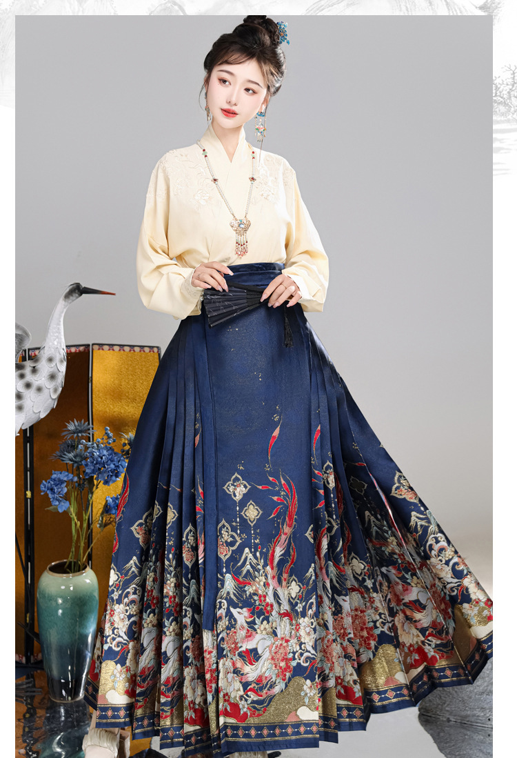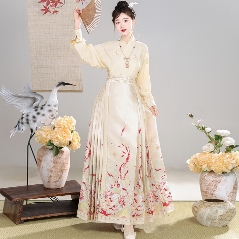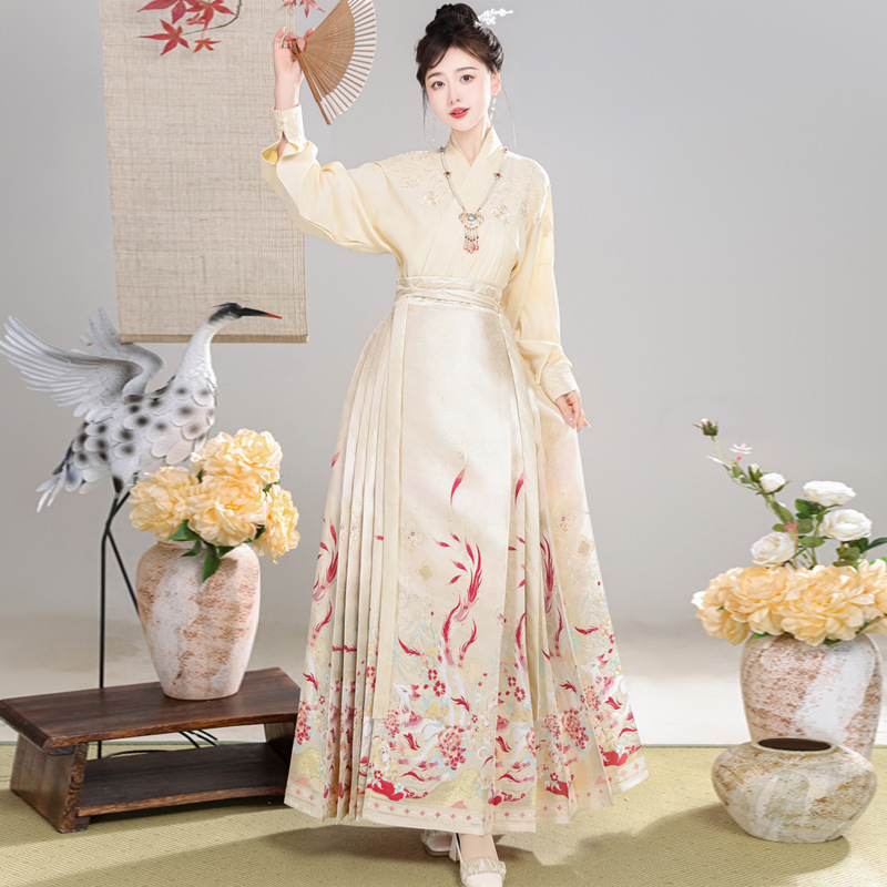 Новый взрослый Hanfu Ming Hanfu Тканая золотая юбка с конским лицом