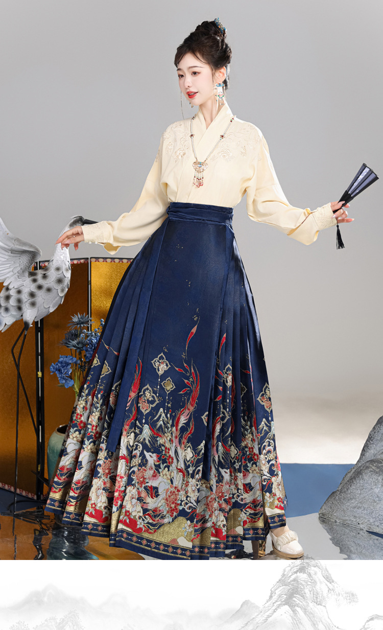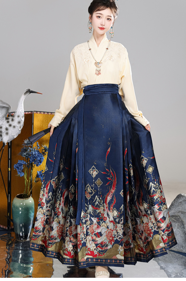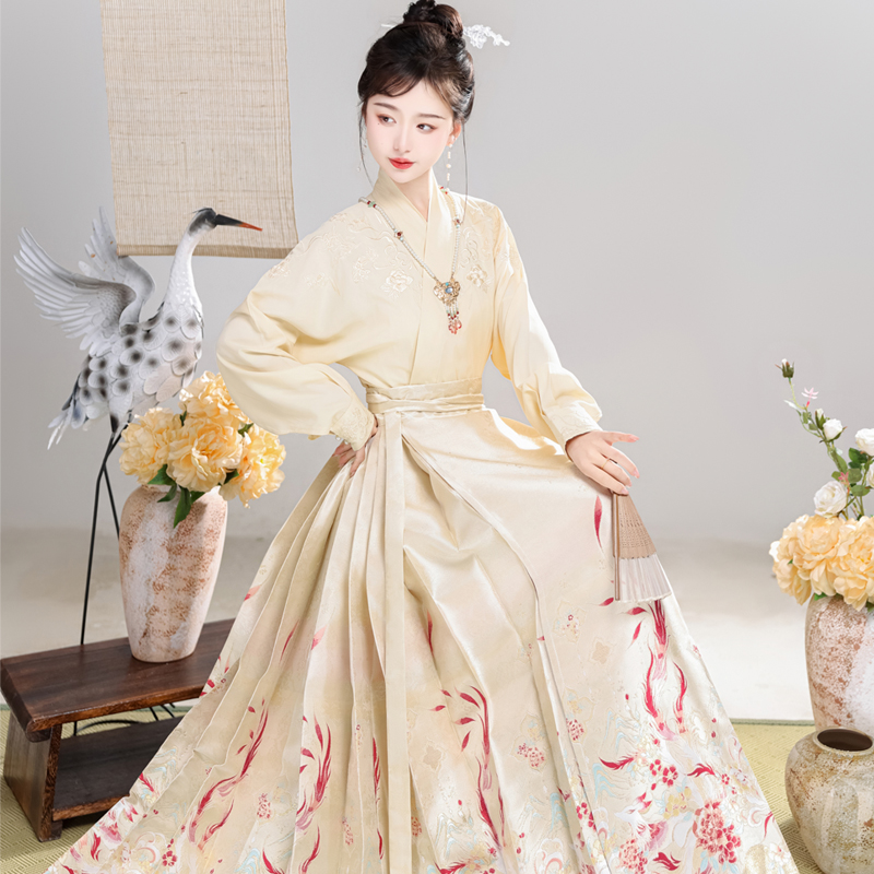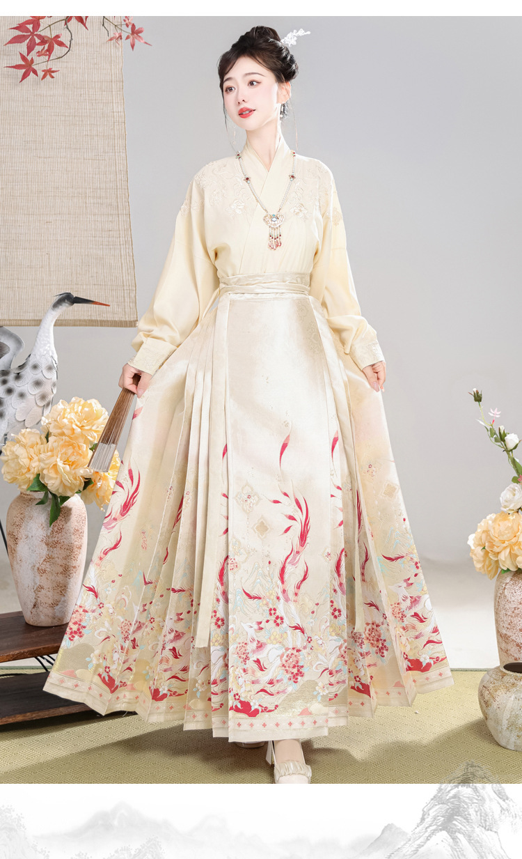 Новый взрослый Hanfu Ming Hanfu Тканая золотая юбка с конским лицом