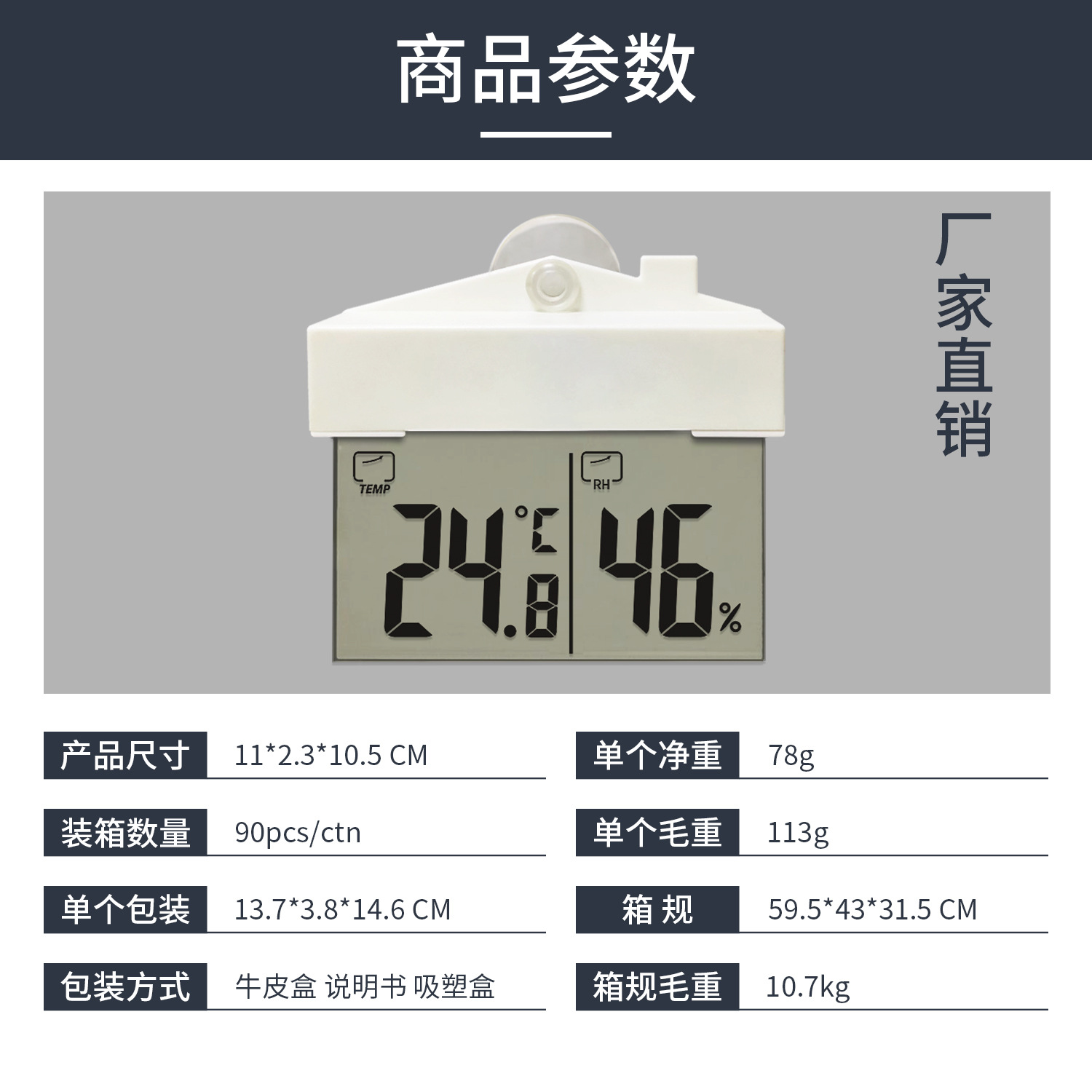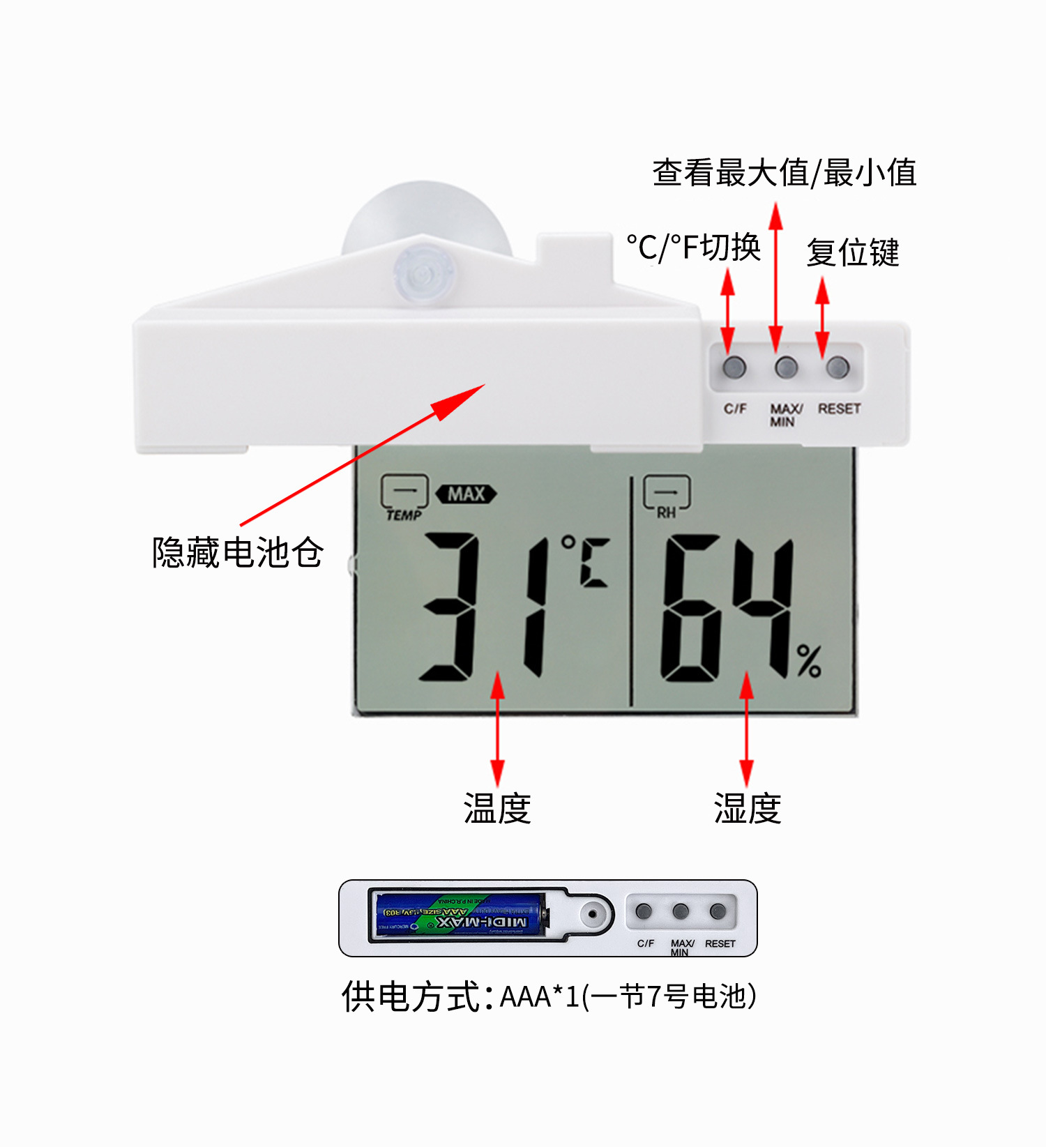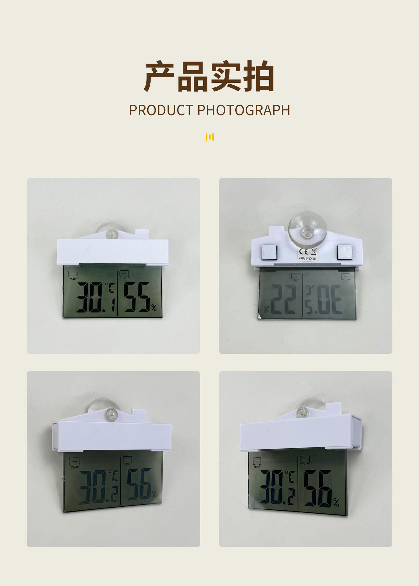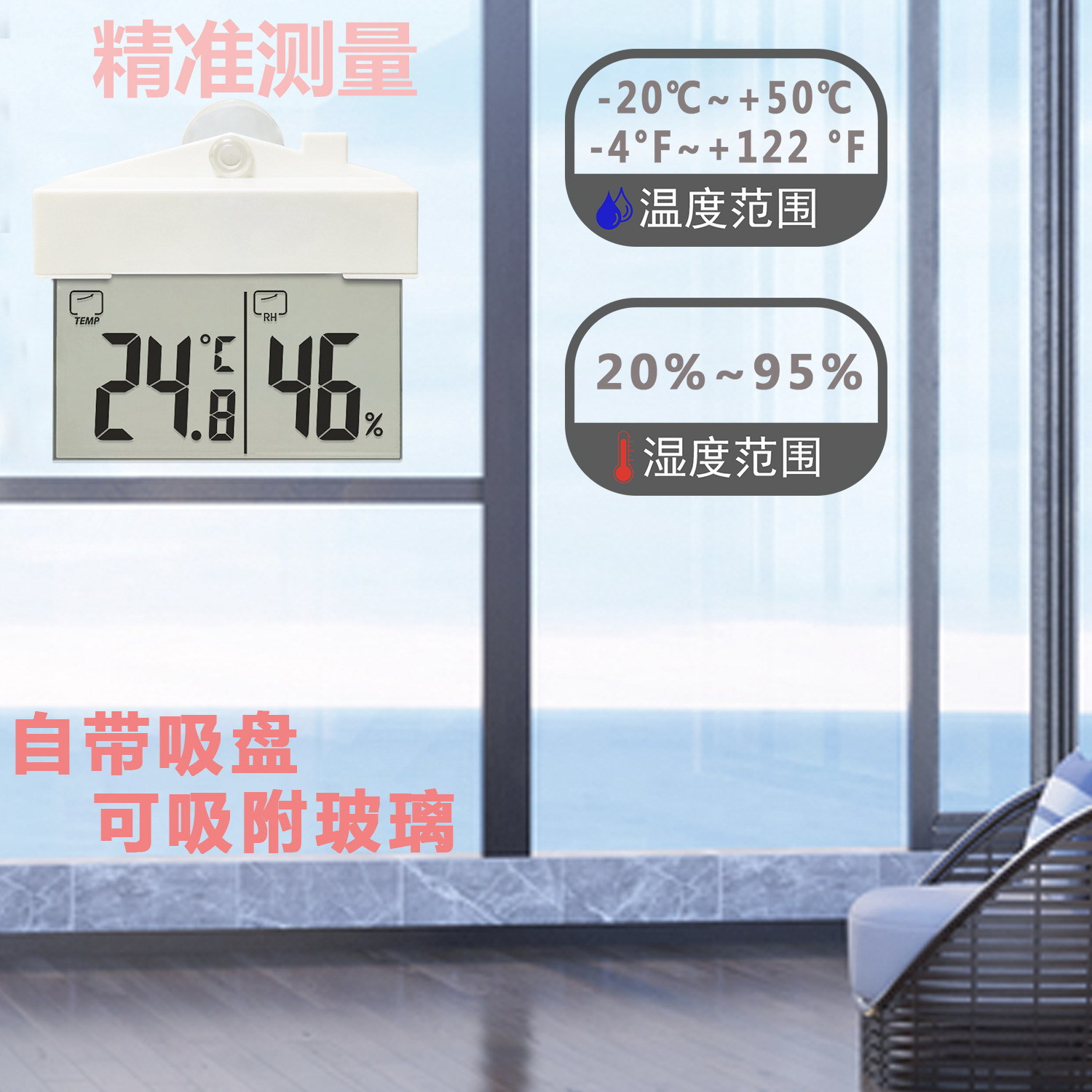 Термометр и гигрометр для окон с присоской, без сверления, самоклеящийся, для использования внутри и вне помещений, для мониторинга температуры и влажности в доме.