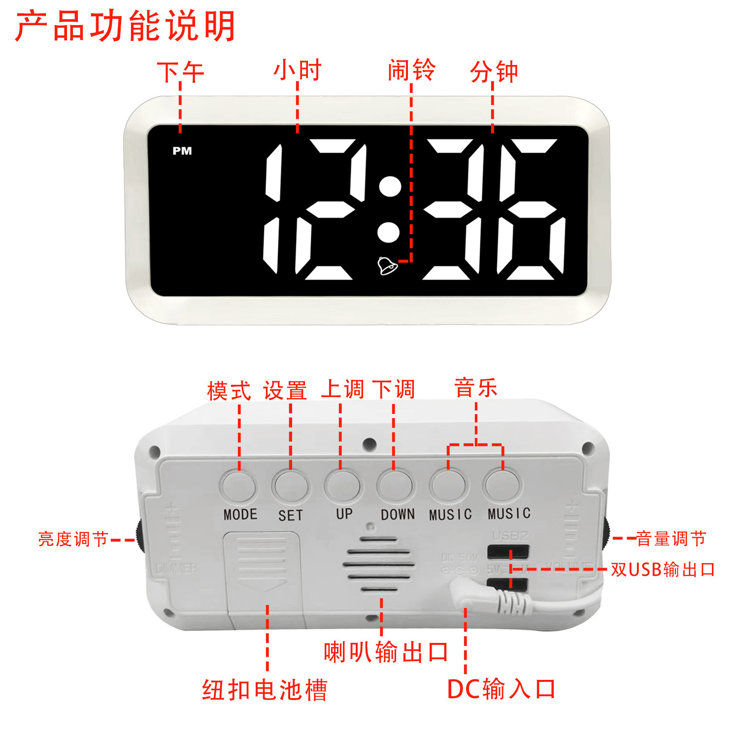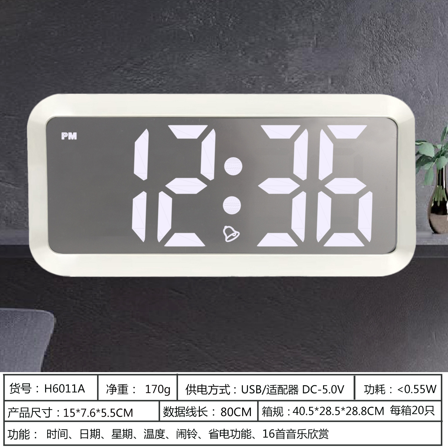 Минималистичный музыкальный зеркальный процесс яркость диспетчерского будильника Регулируемый кабинет Светодиодный детский будильник