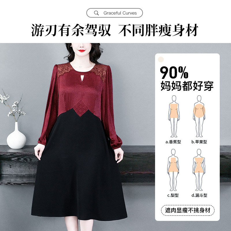Весеннее легкое роскошное стильное тяжелое модное повседневное свободное платье больших размеров для женщин среднего возраста.