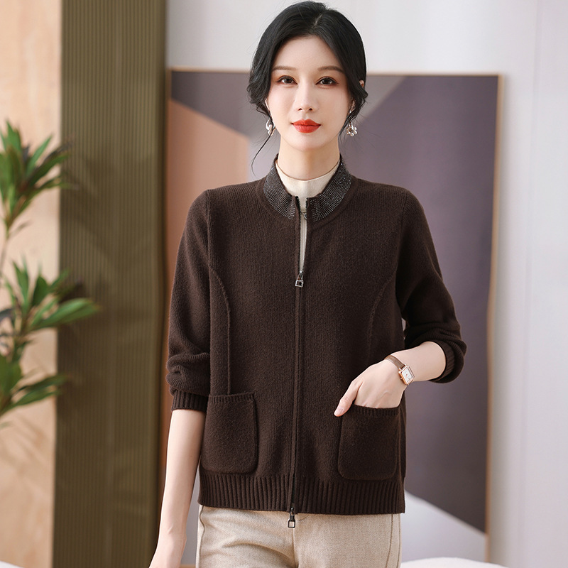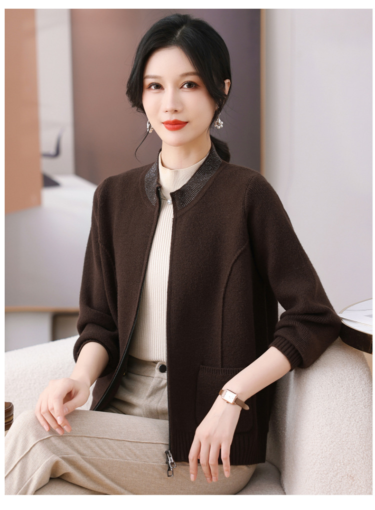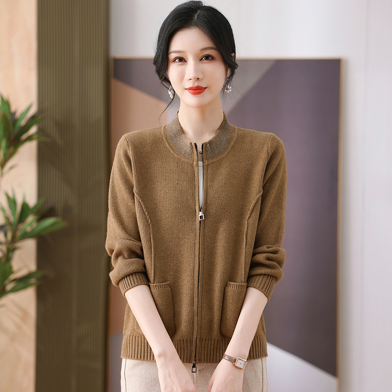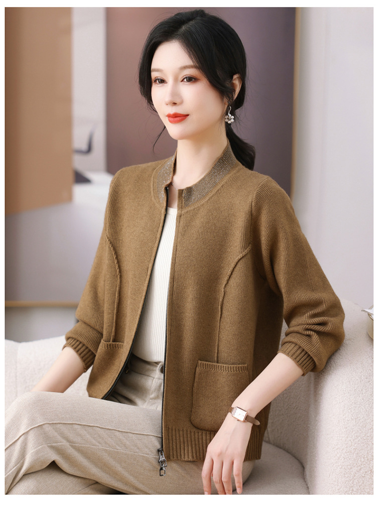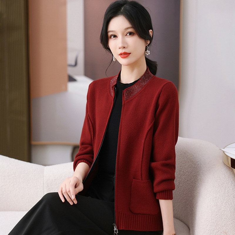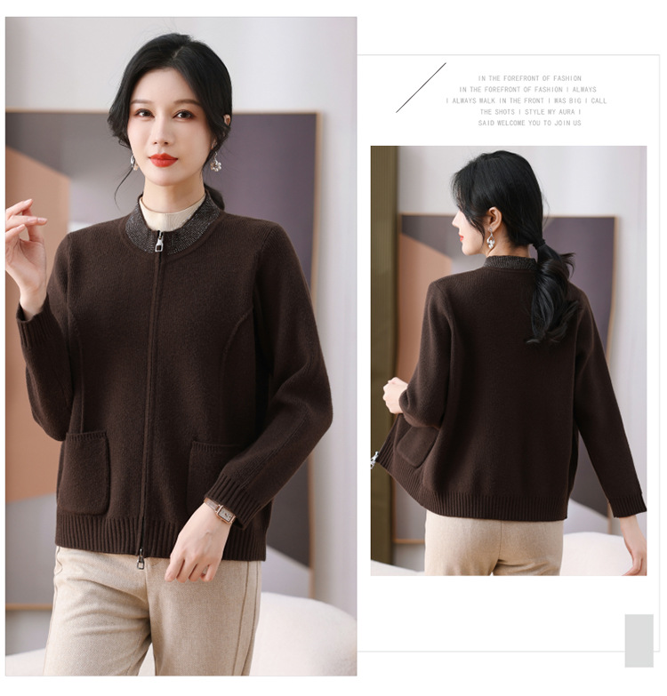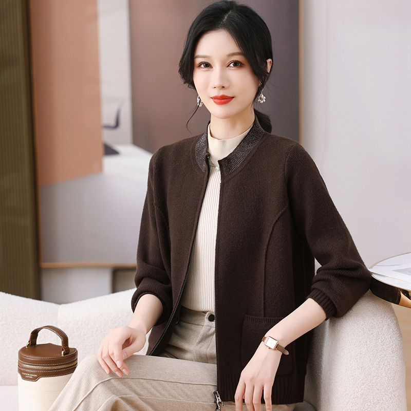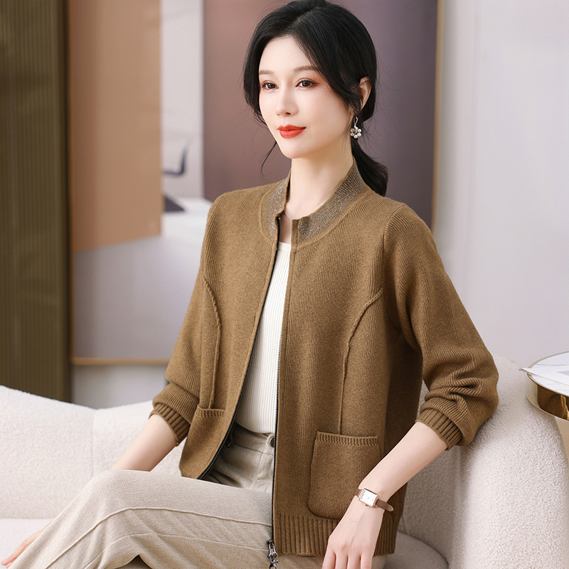 2025 весна новая мама кардиган среднего возраста леди иностранная короткая куртка модная вязаная рубашка тонкая топ