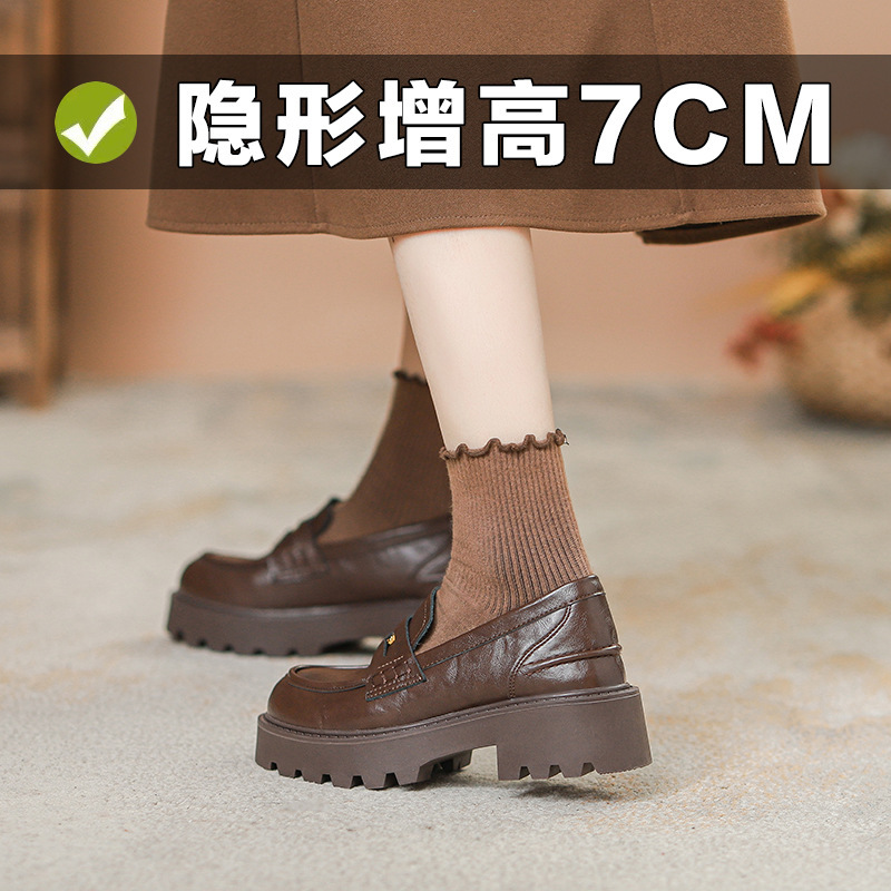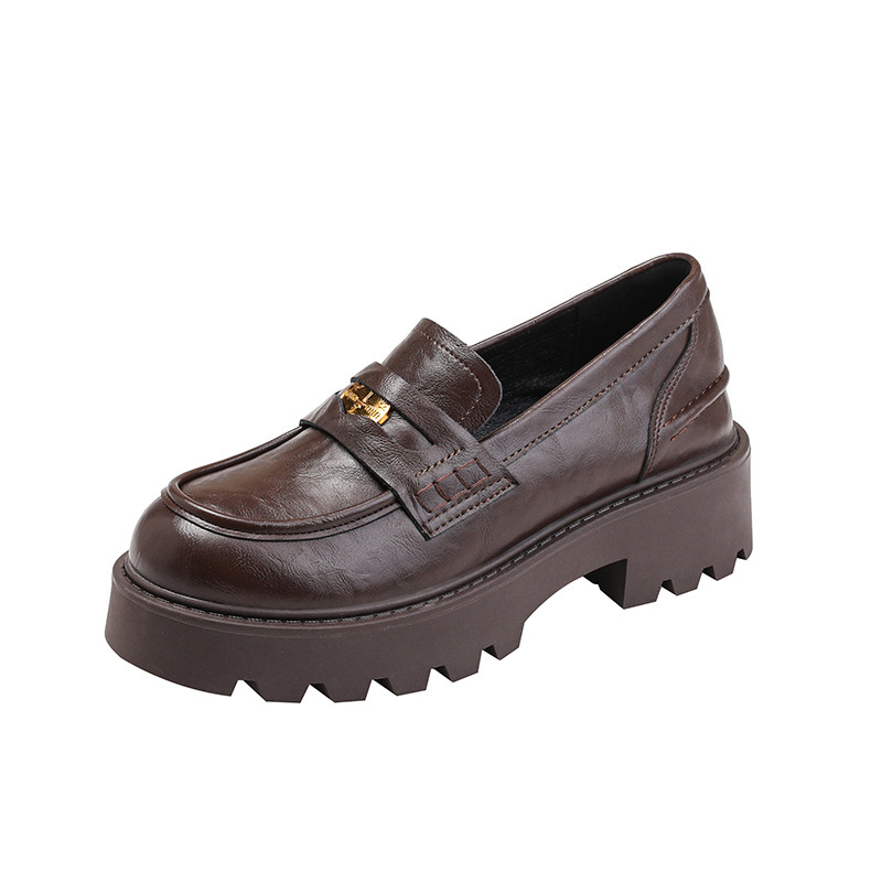 Оптовая продажа дорогих маленьких золотых монет кожаные туфли с круглой головой женские туфли на толстой подошве одиночные туфли