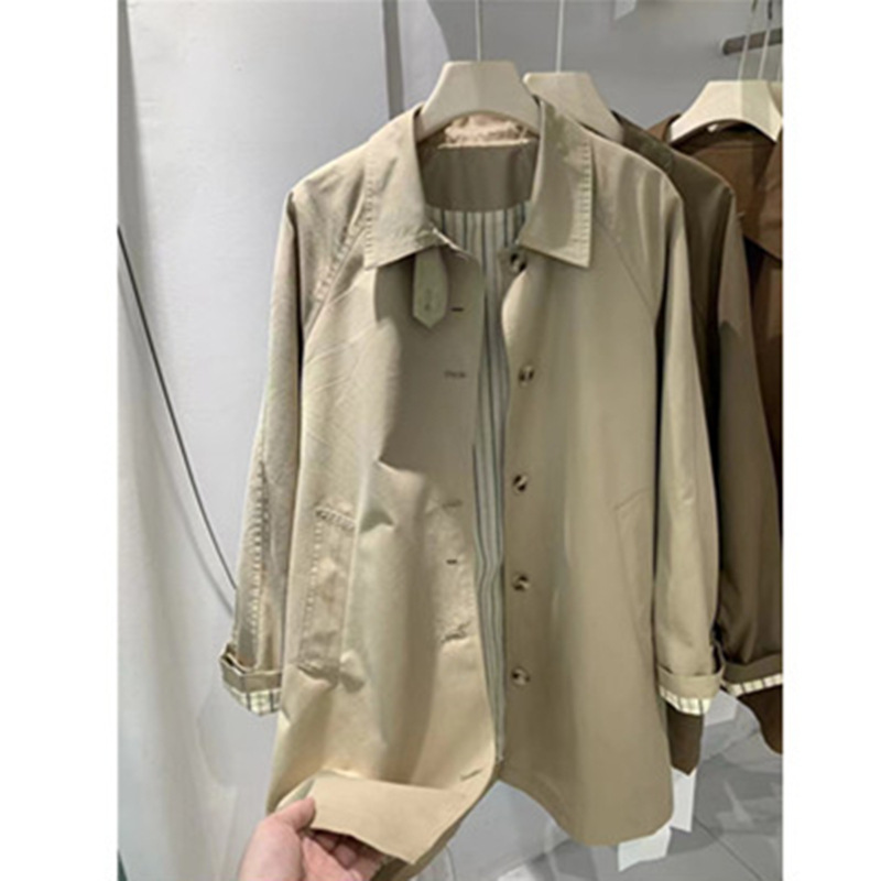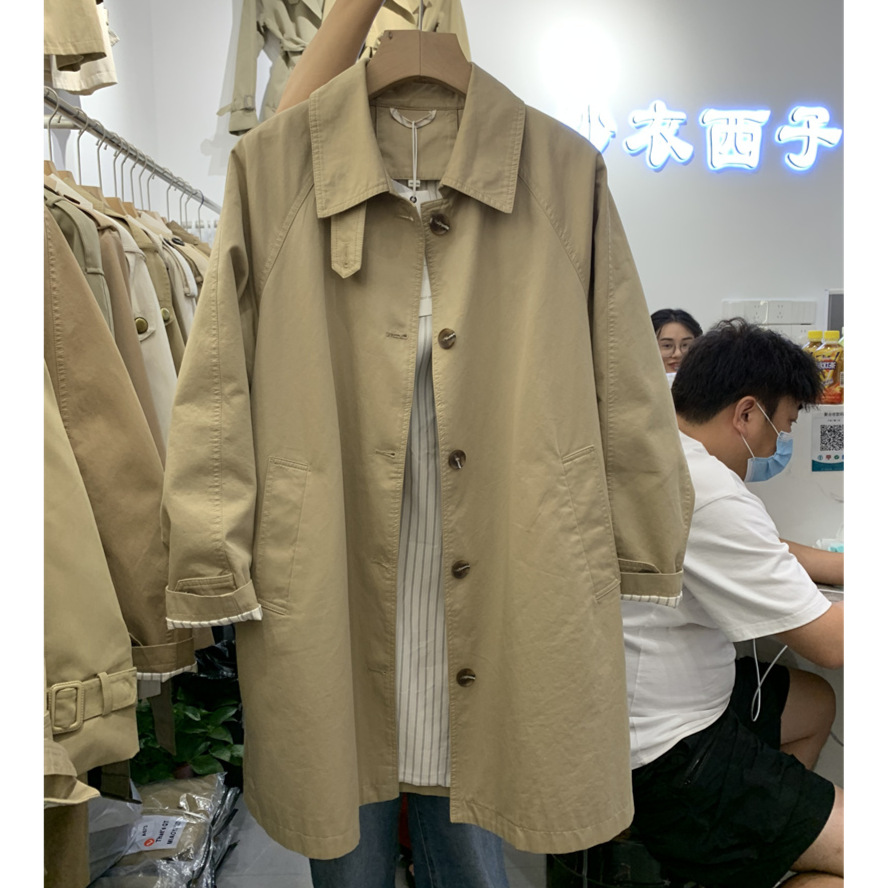 Ветровка женская весна и осень 2025 новая корейская версия однобортная ветровка средней и длинной ветровка тонкая куртка женская повседневная свободная