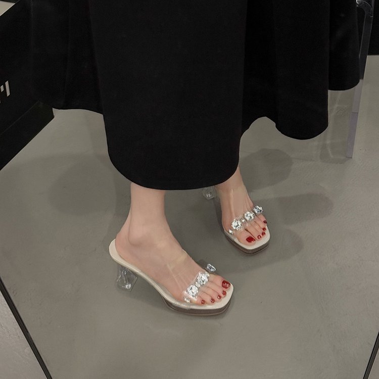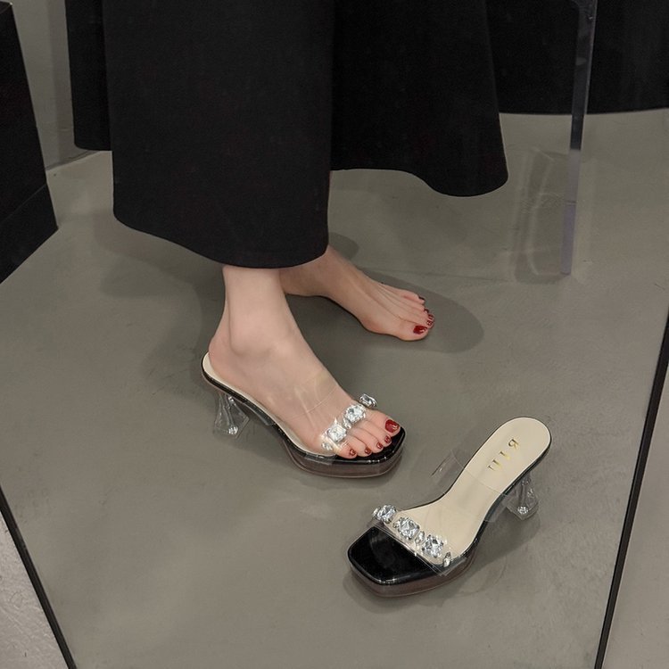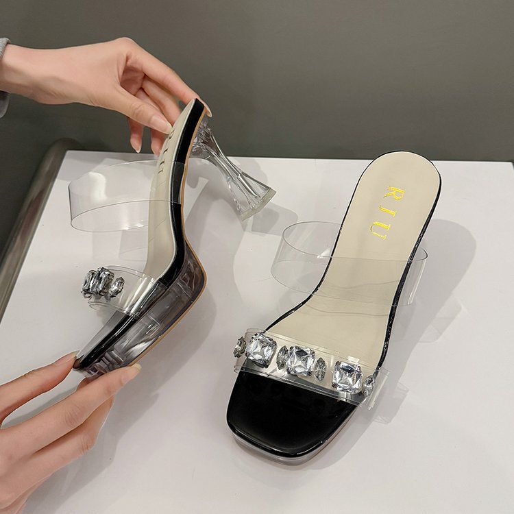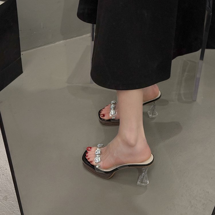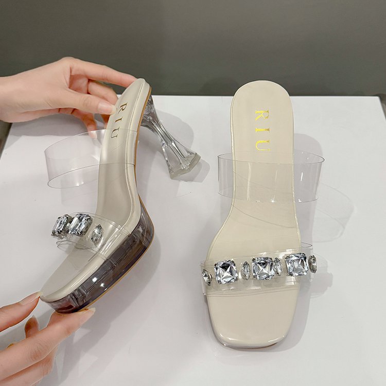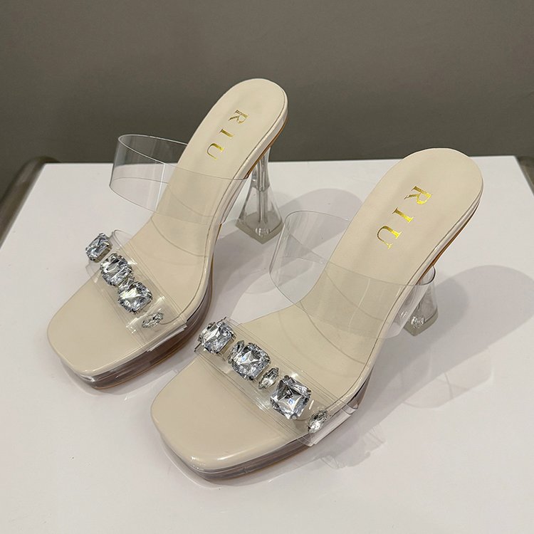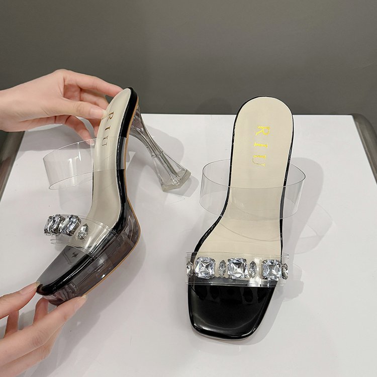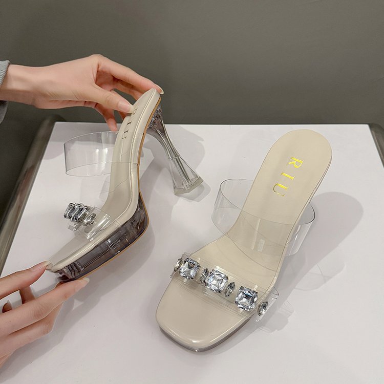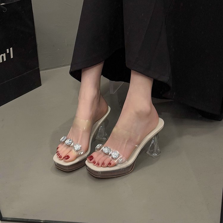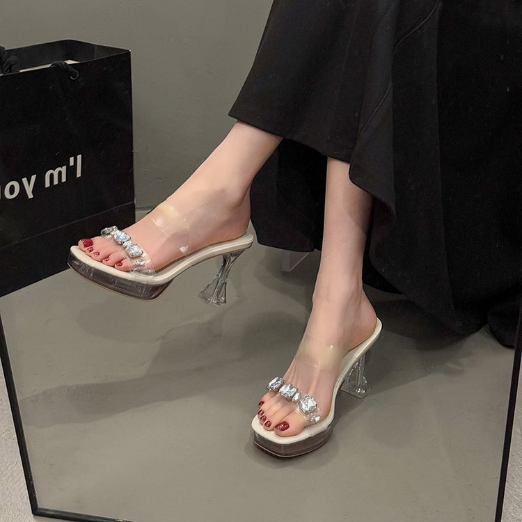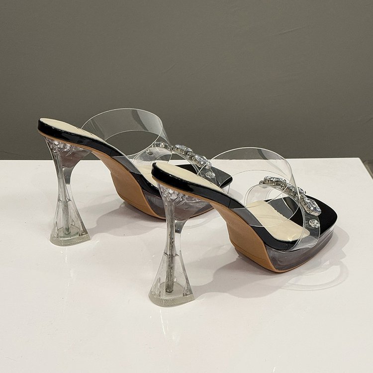 11CM супер высокие каблуки со стразами на каблуках сандалии ненавидят высокие прозрачные хрустальные тапочки водонепроницаемый стол модель женской обуви