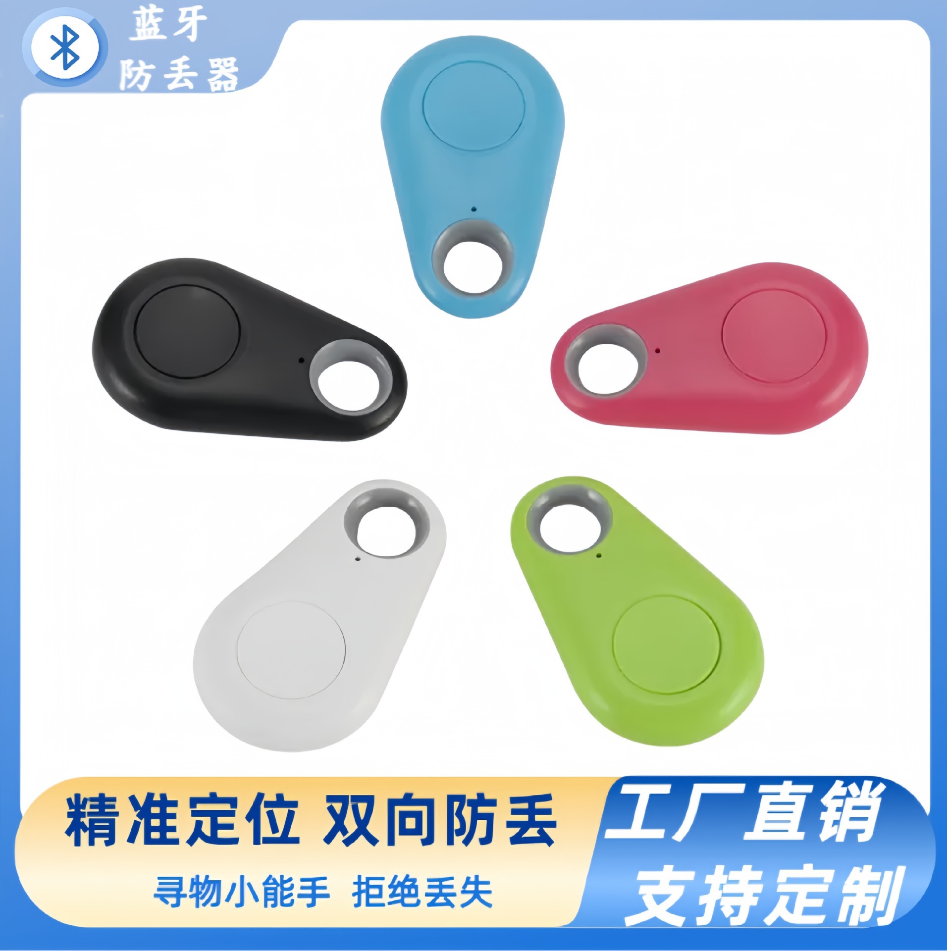本防丢器是一款基于新蓝牙5.0低功耗技术的产品,通过使用APP软件,和手机等移动设备进行蓝牙连接,来将用户容易丢失的物品、贵重物品(例如:钥匙、手提包等)捆绑在一起,实现物品的放丢失提醒、寻找手机的功能,还可以实现远程遥控拍照、录音等功能(例如:聚会合影、自拍等)。