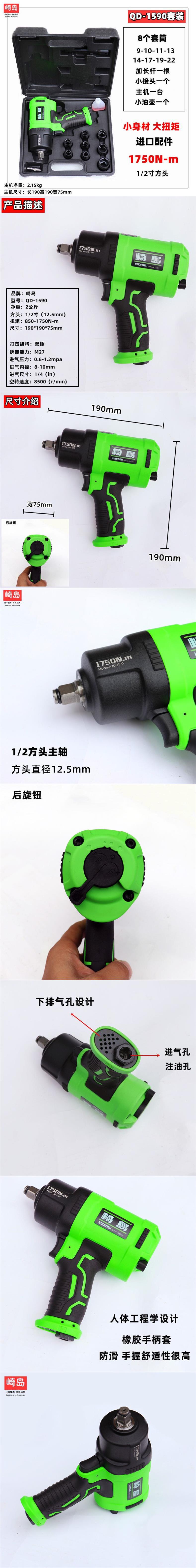 Подлинная QD-1590 Qizima пневматическая 1/2 небольшая ветряная пушка сверхлегкая и мощная промышленная высокая мощность пневматический гаечный ключ
