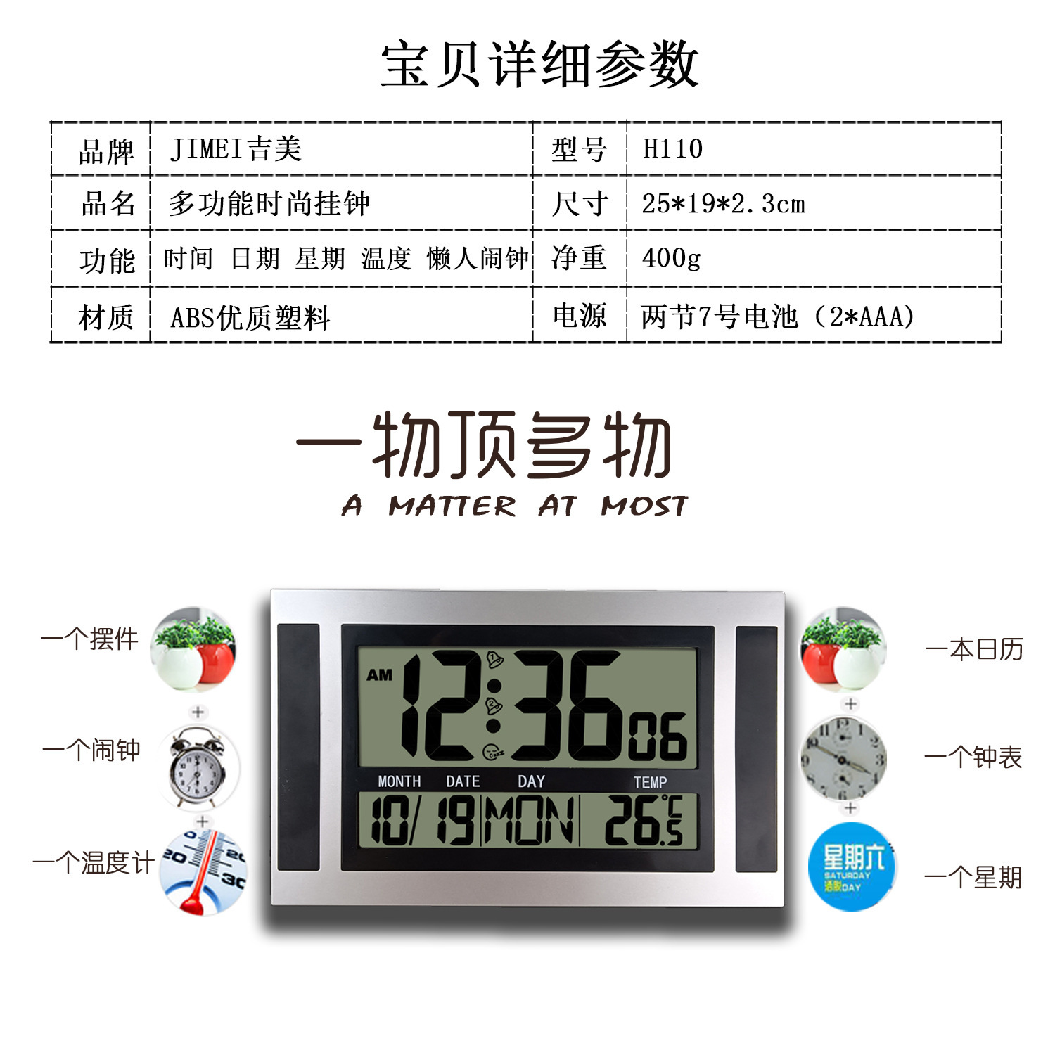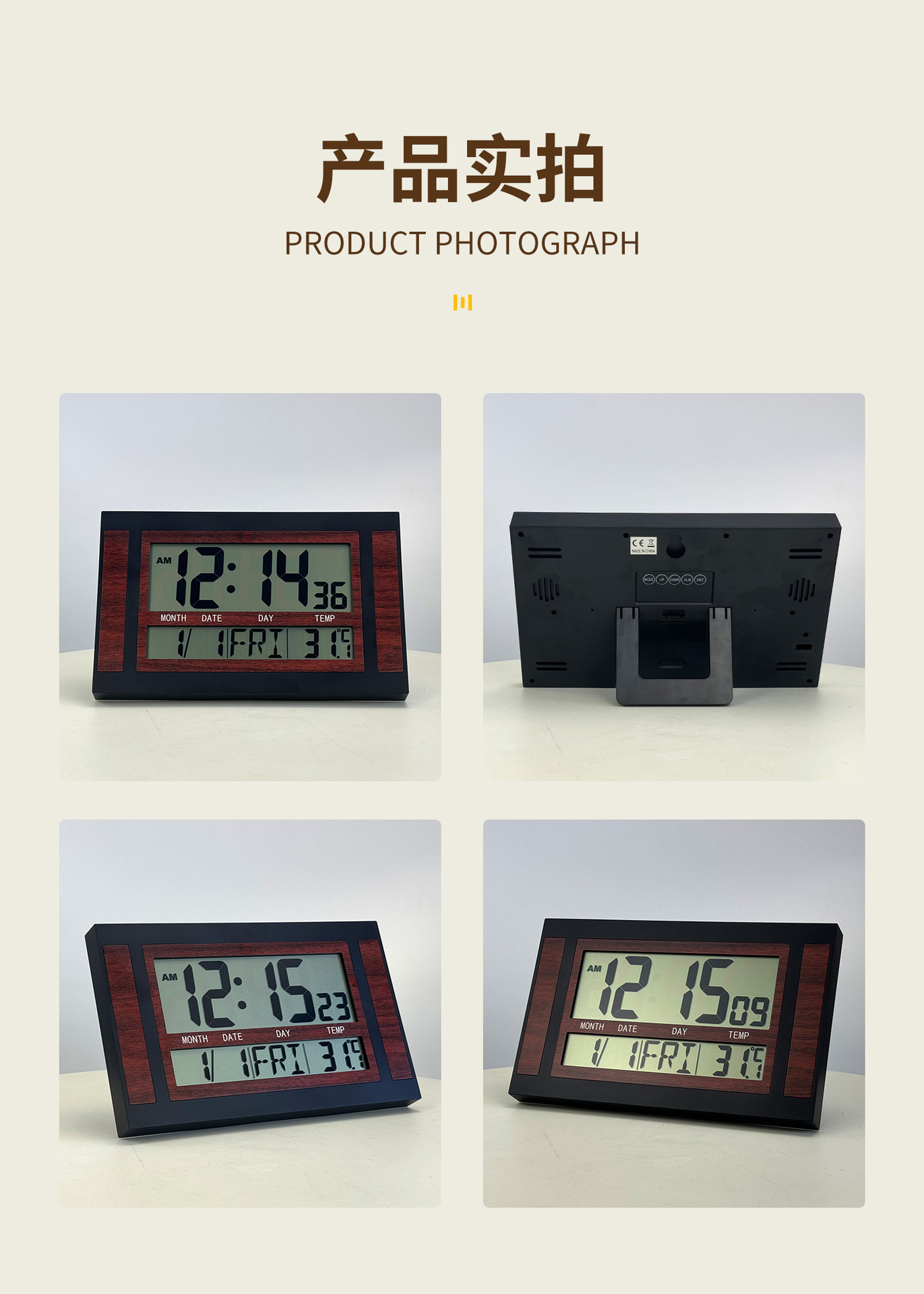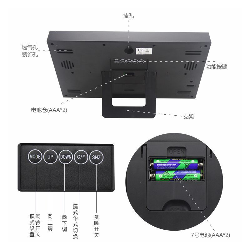 украсить; термометр; вечный календарь; сигнал тревоги; календарь; 24-часовая индикация; отображение дня недели; отображение месяца; Другое