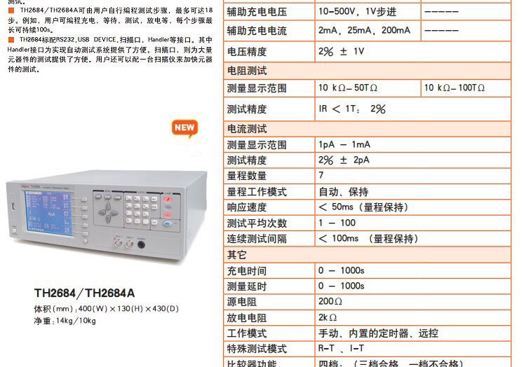 Tonghui TH2684 TH2684A Высокоточный тестер сопротивления изоляции Измерение напряжения потока