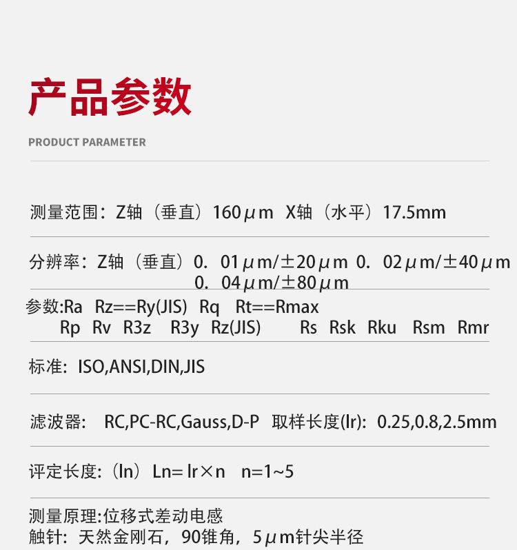 Ra Rz==Ry(JIS) Rq Rt==Rmax Rp Rv R3z