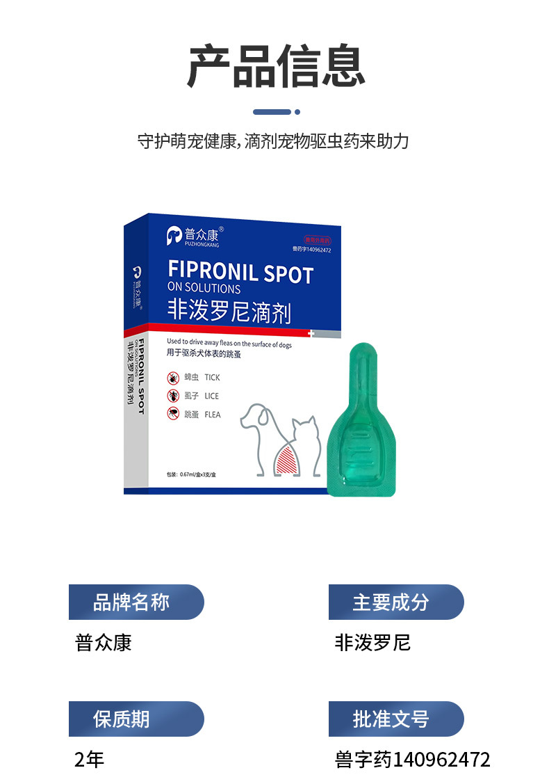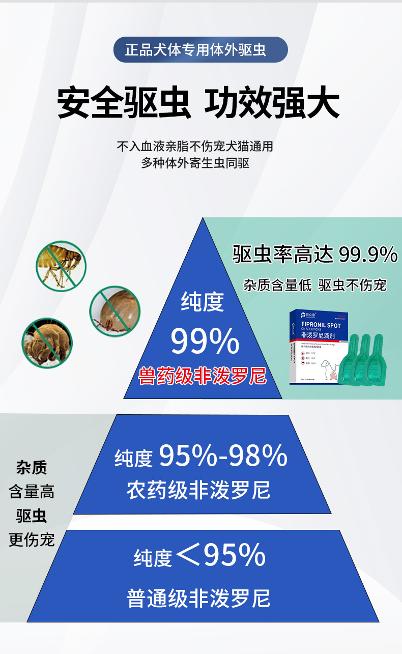 Фипронил в каплях для собак и кошек, 3 тюбика, средство от блох и клещей для наружного применения, инсектицид для животных, средство от блох.