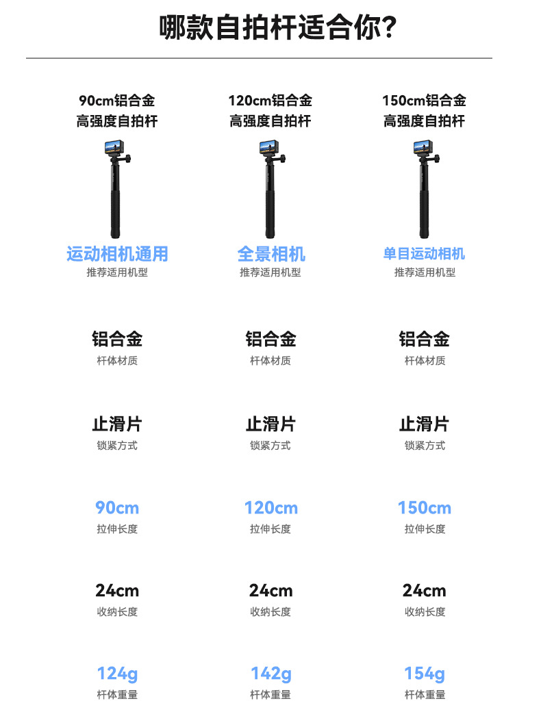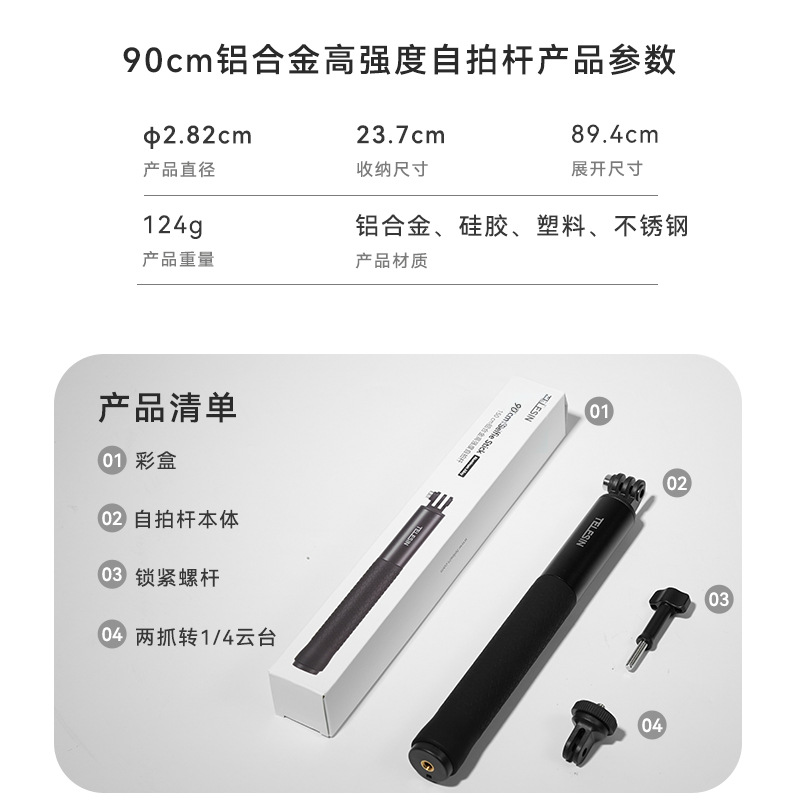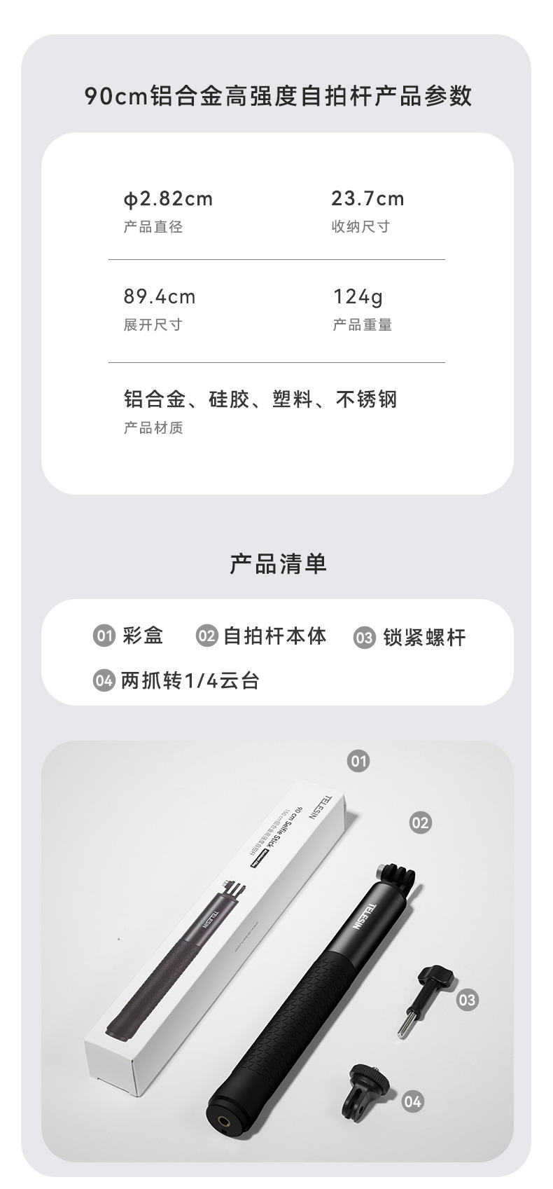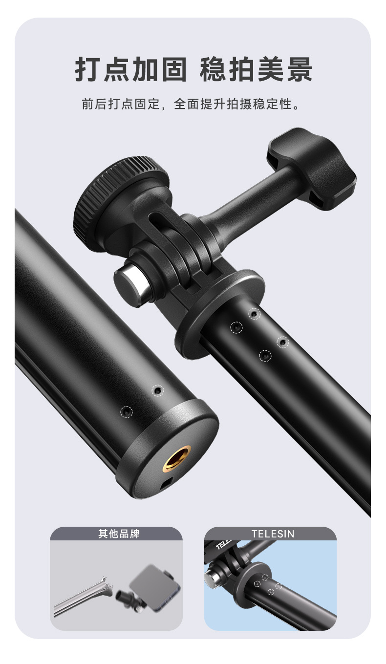 Селфи-палка TELESIN из высокопрочного алюминиевого сплава для GoPro, DJI Nano, Action6/5/4