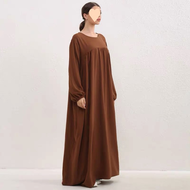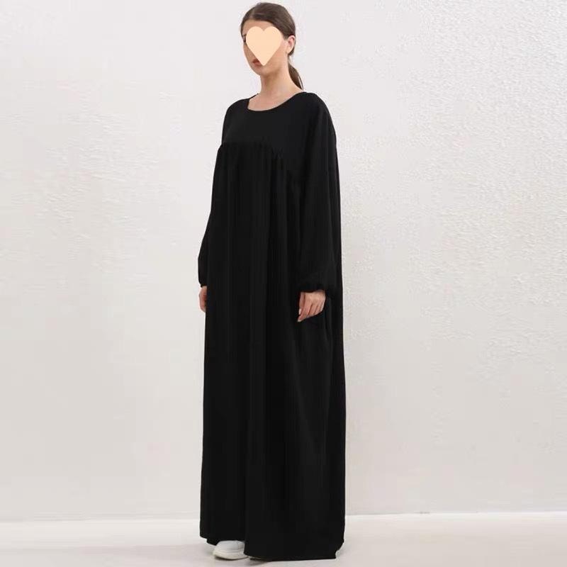 Большой новый сплошной цвет длинное платье, свободное тонкое платье с длинными рукавами, длинное темпераментное платье