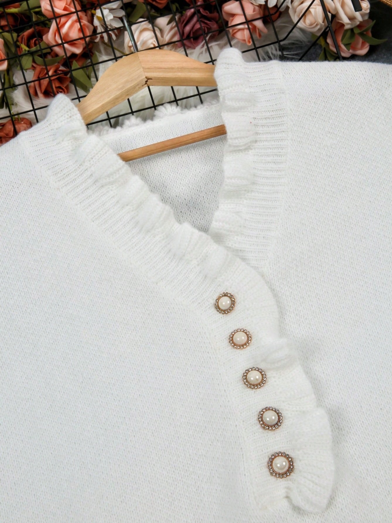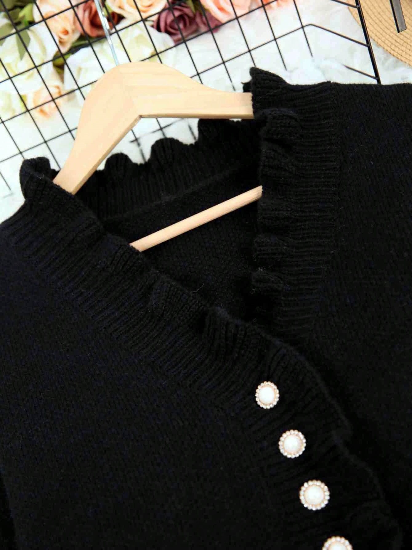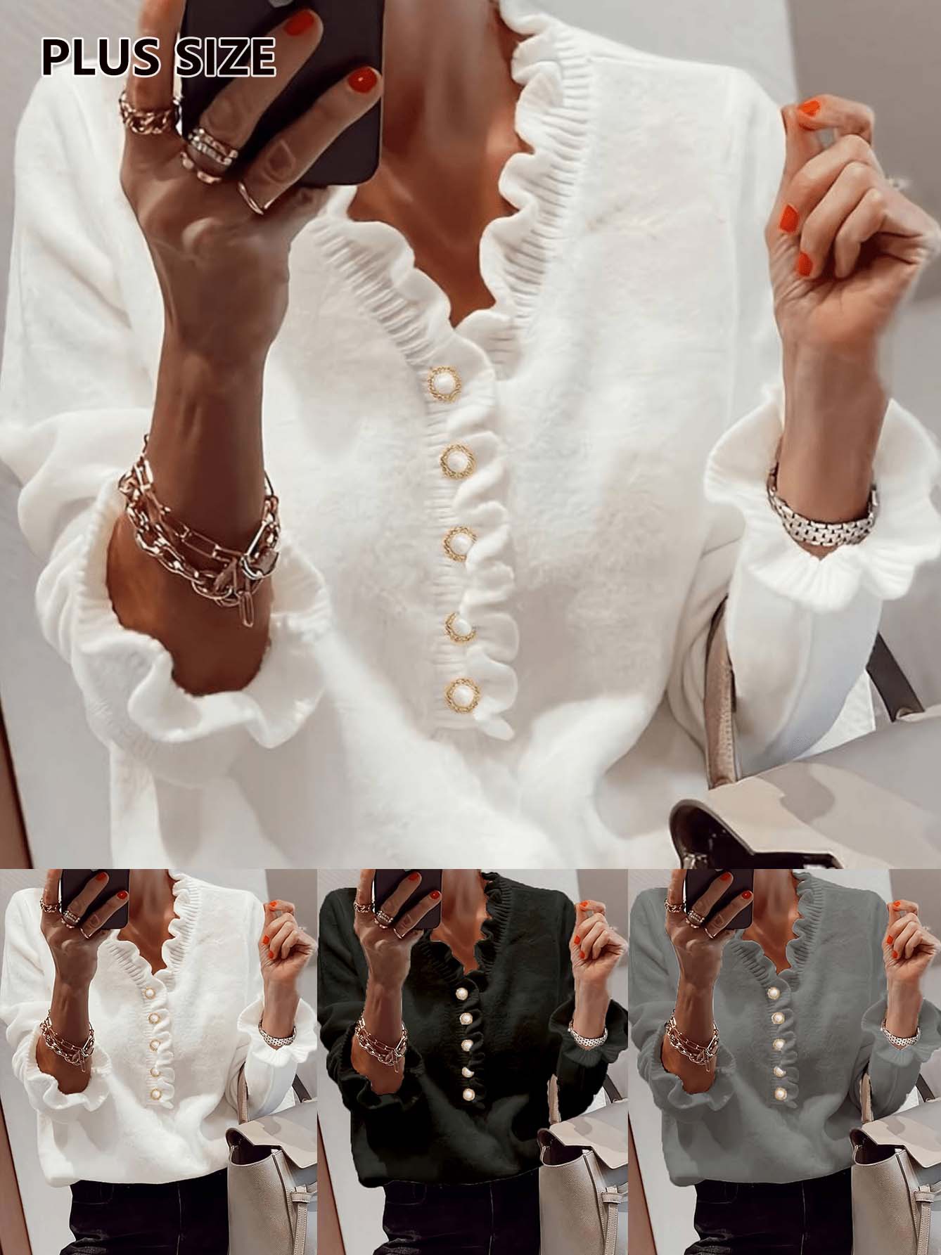 Трансграничные осенние и зимние жемчужные пуговицы с грибками, элегантные женские трикотажные топы небольшого ароматного стиля с полуоткрытым воротником больших размеров