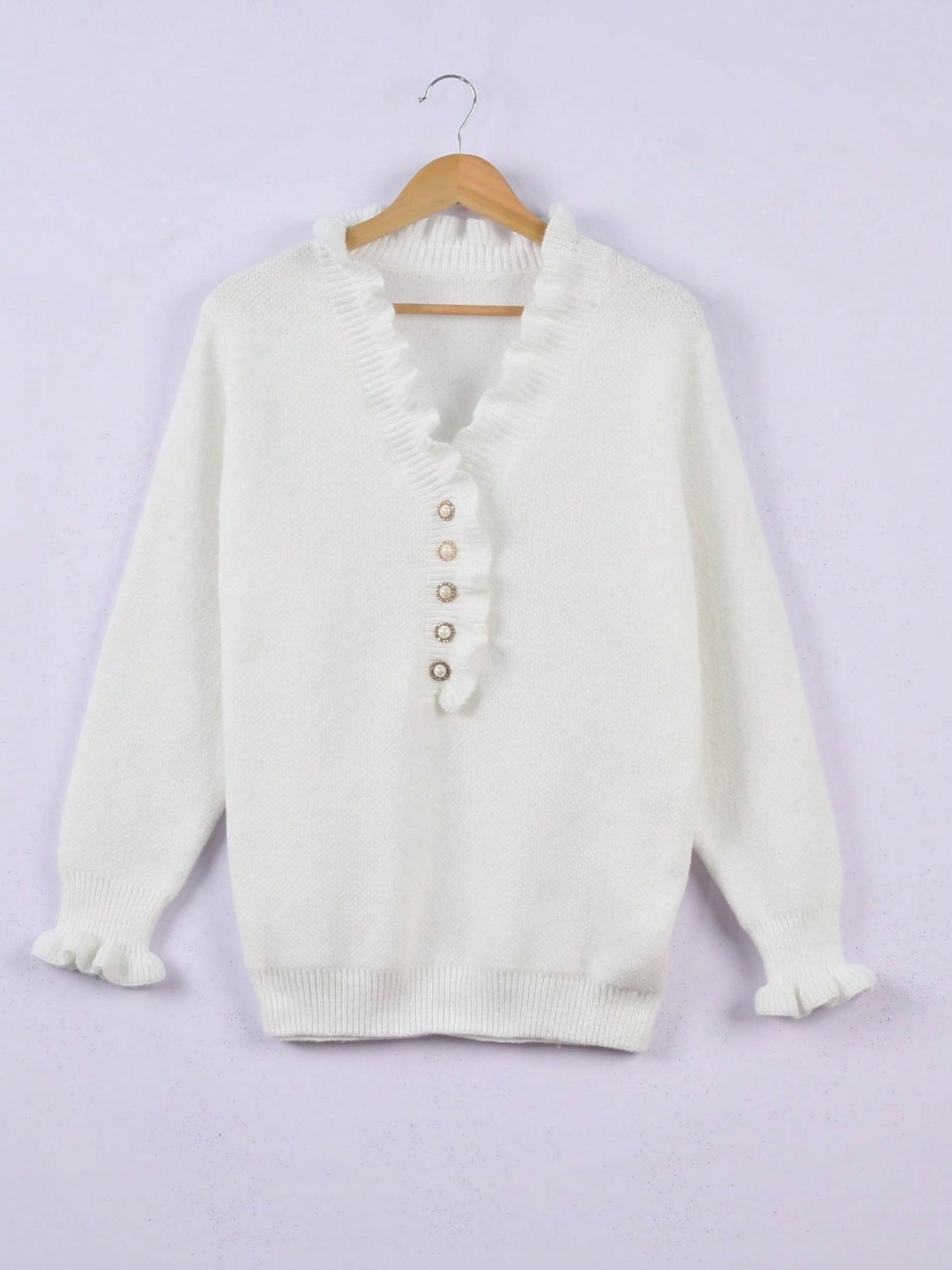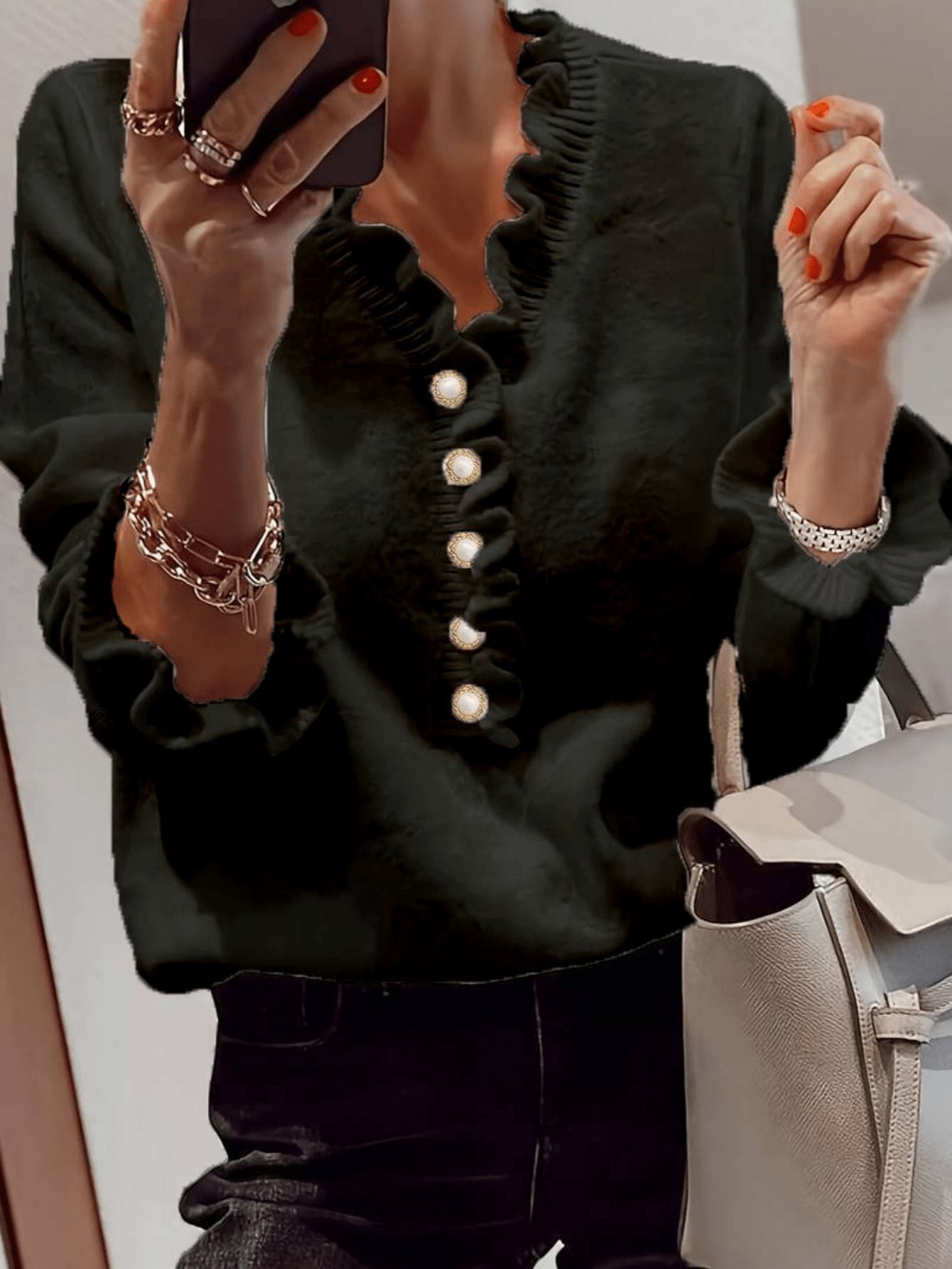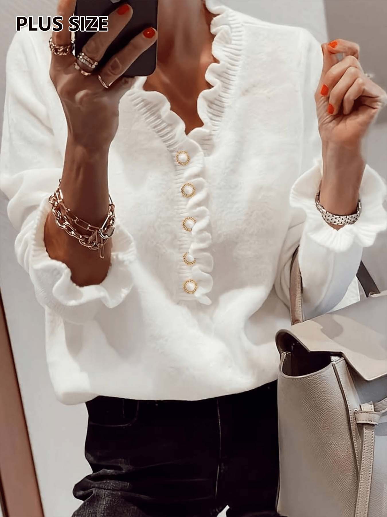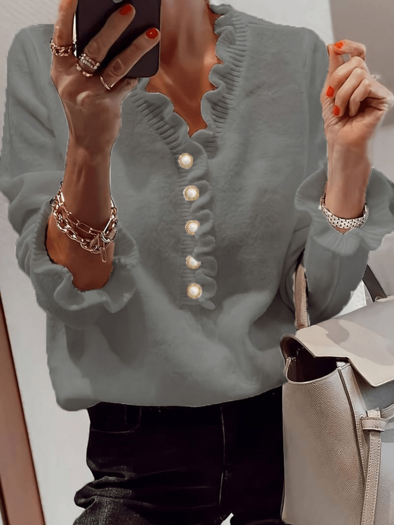 Трансграничные осенние и зимние жемчужные пуговицы с грибками, элегантные женские трикотажные топы небольшого ароматного стиля с полуоткрытым воротником больших размеров