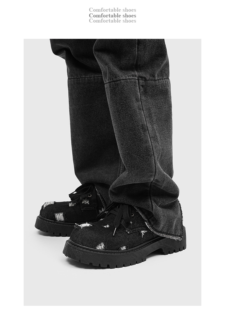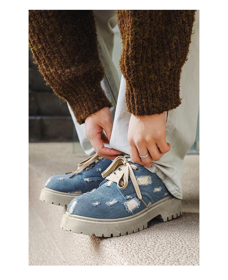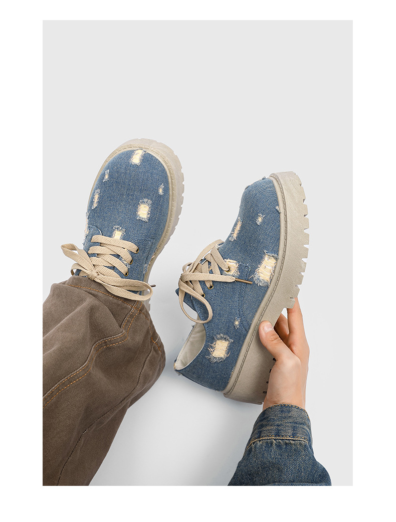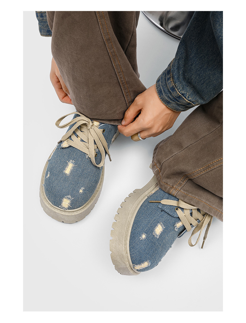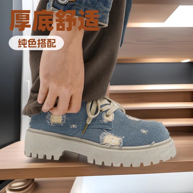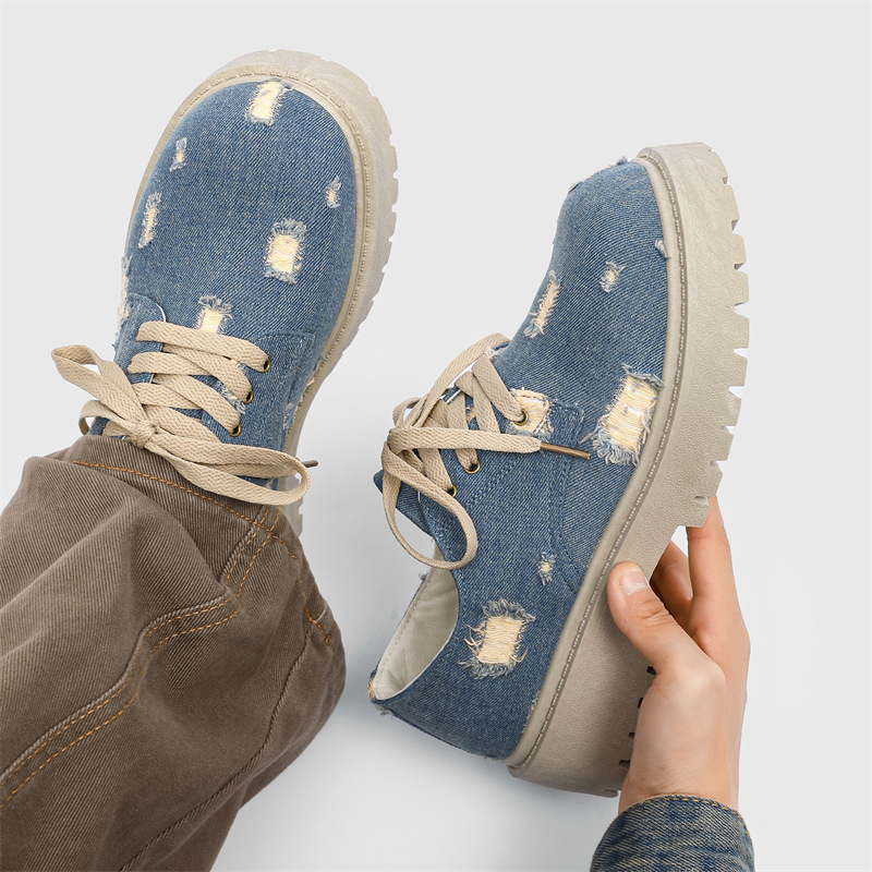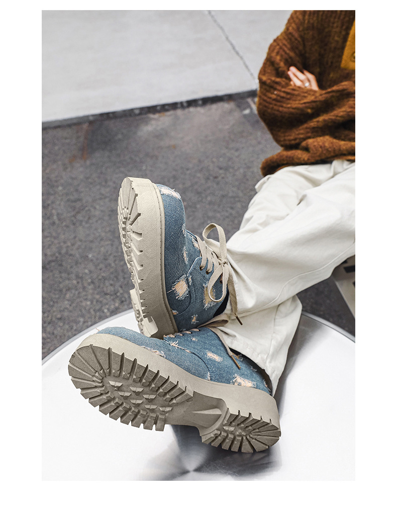 2025 новые джинсовые сапоги с дырами ретро британский стиль Мартин сапоги сапоги одиночные сапоги с толстым дном ковбойские сапоги