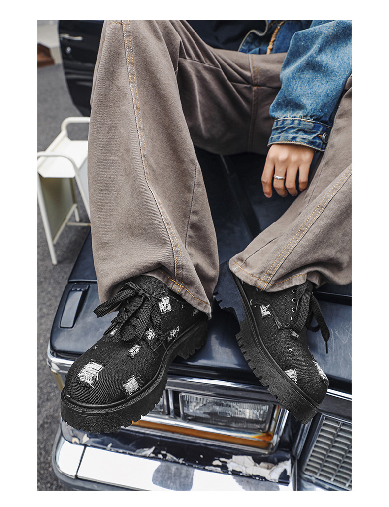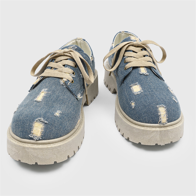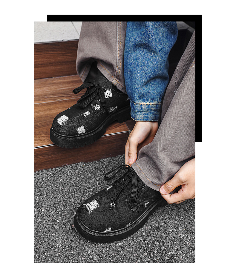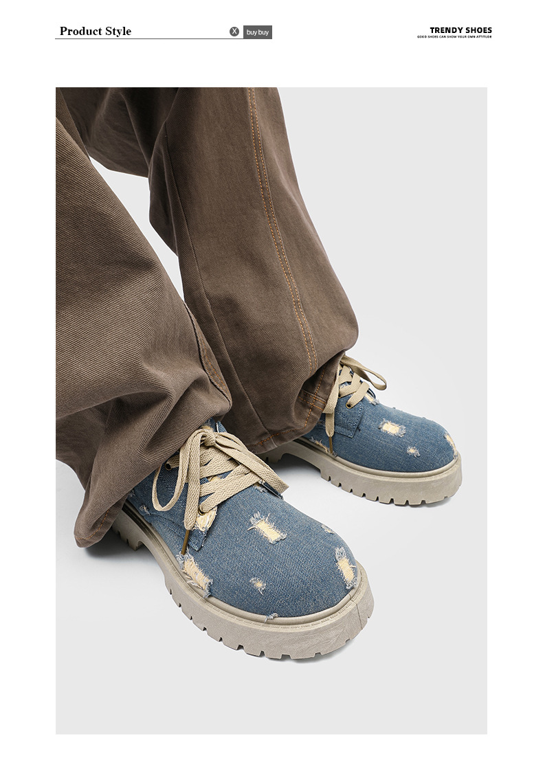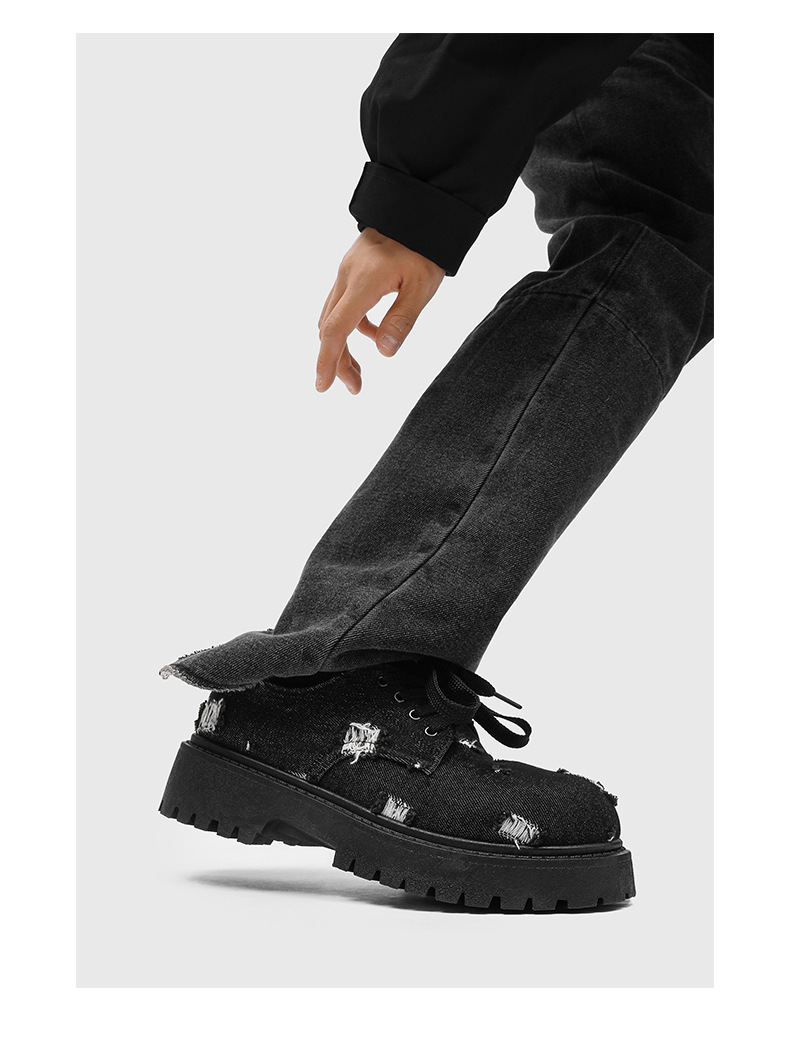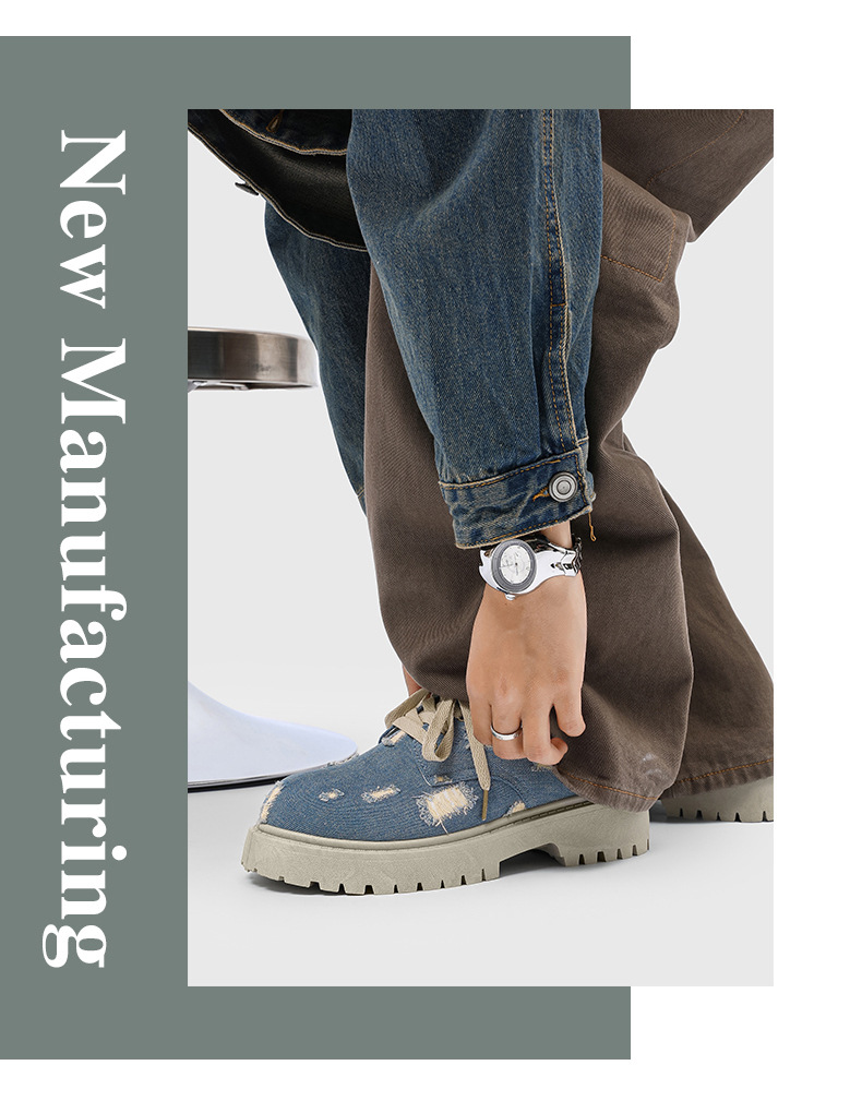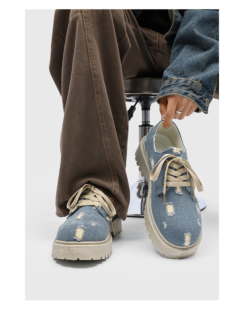 2025 новые джинсовые сапоги с дырами ретро британский стиль Мартин сапоги сапоги одиночные сапоги с толстым дном ковбойские сапоги