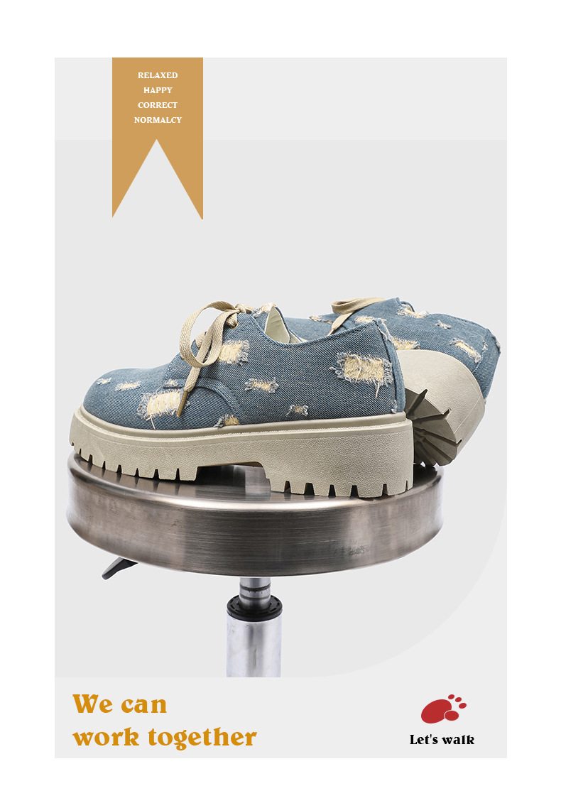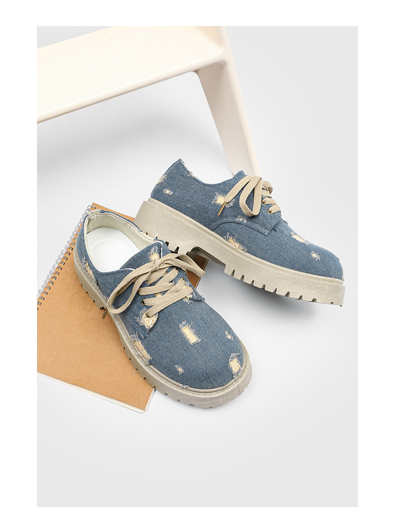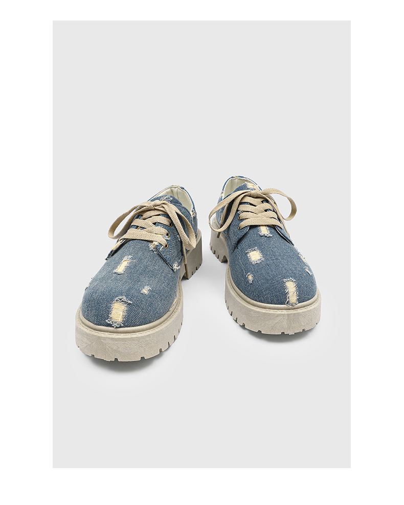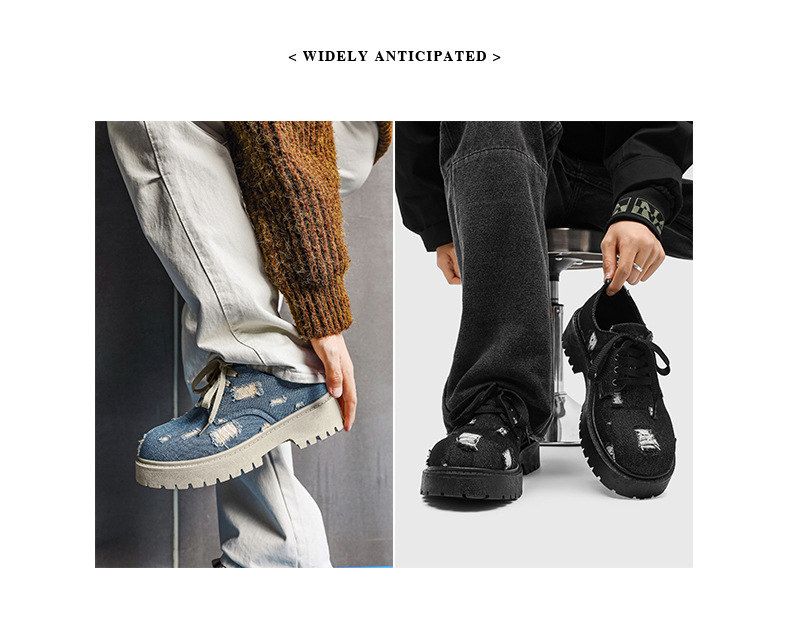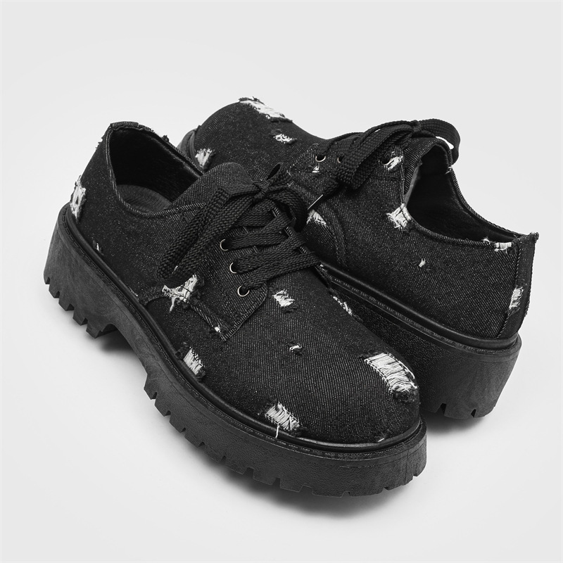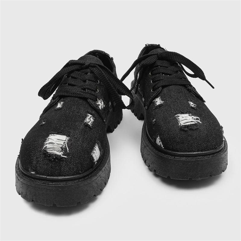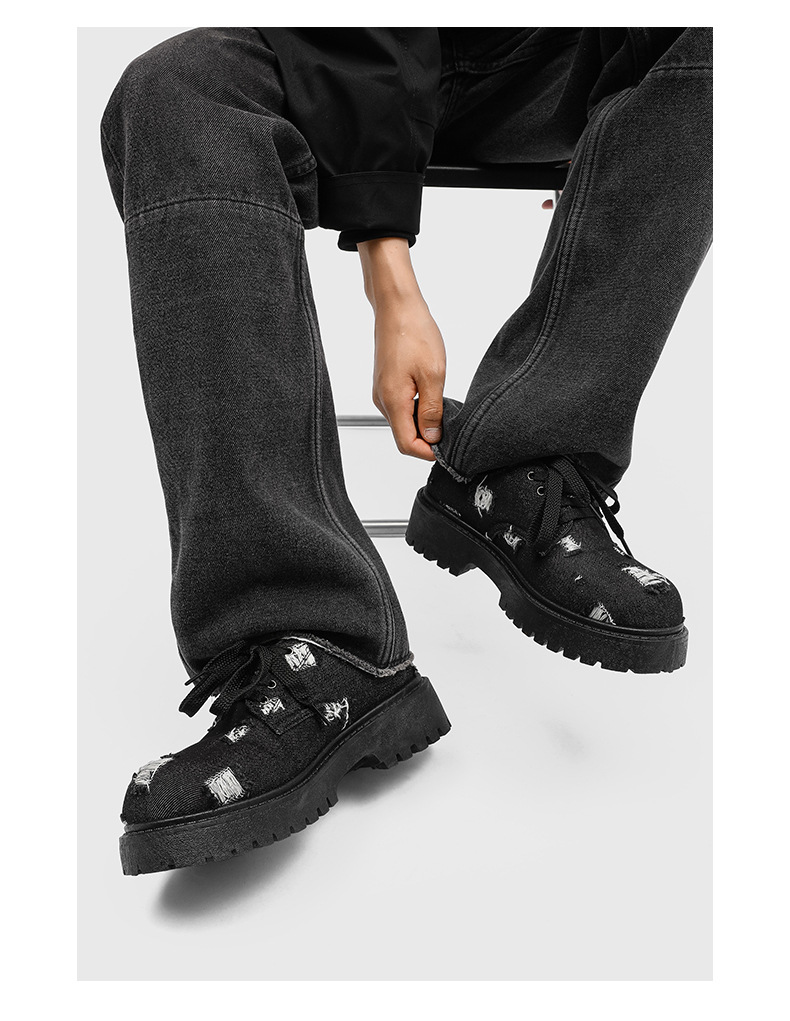 2025 новые джинсовые сапоги с дырами ретро британский стиль Мартин сапоги сапоги одиночные сапоги с толстым дном ковбойские сапоги