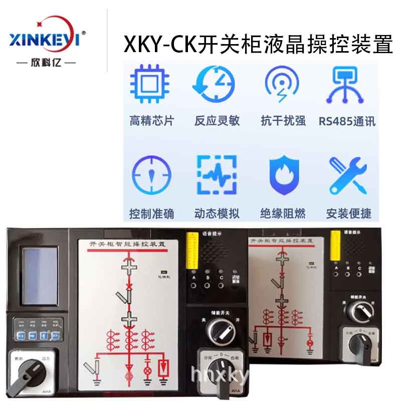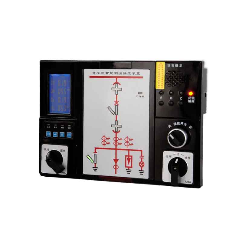 电力开关柜智能操控装置,功能强大,用于0.4KV-35KV 户内开关柜,取代现有的一次回路模拟图、温湿度控制器,高压带电闭锁装置,全功能语音防误提示和告警,配有合闸、分闸、储能、远方/就地、照明开关。具有RS485通讯接口,通讯协议为MODBUS通讯协议。适用于中置柜、手车柜、固定柜、环网柜等多种开关柜。同时本装置外观精致,美观、简化、美化了开关柜面板,有效地提升开关柜品质