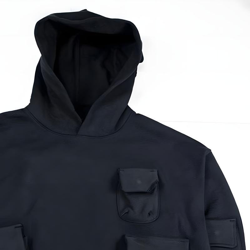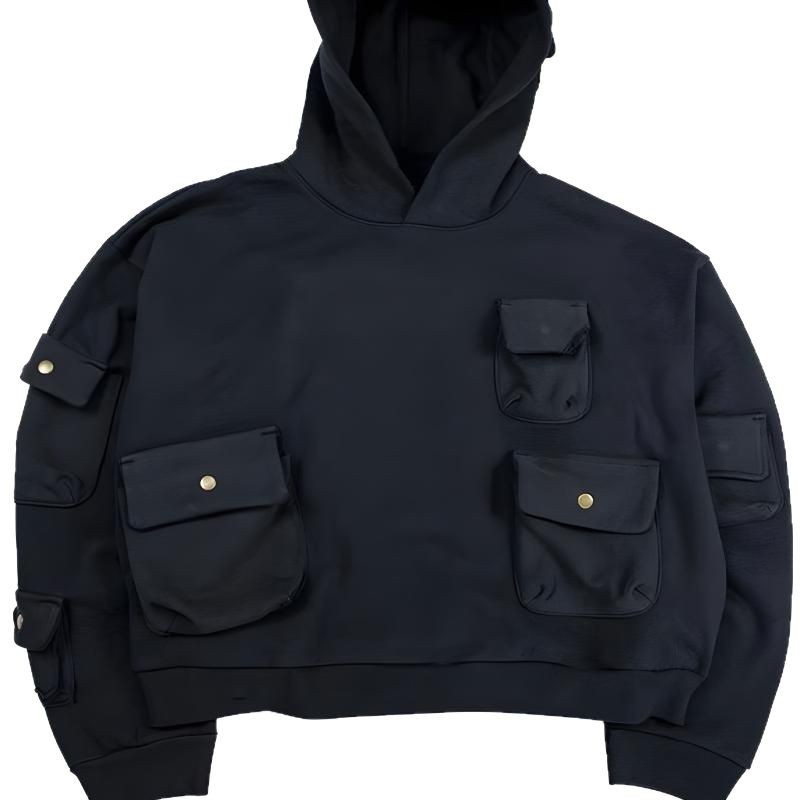Мужские и женские худи-толстовки оверсайз, однотонные, с множеством карманов, капюшоном, для стирки в воде