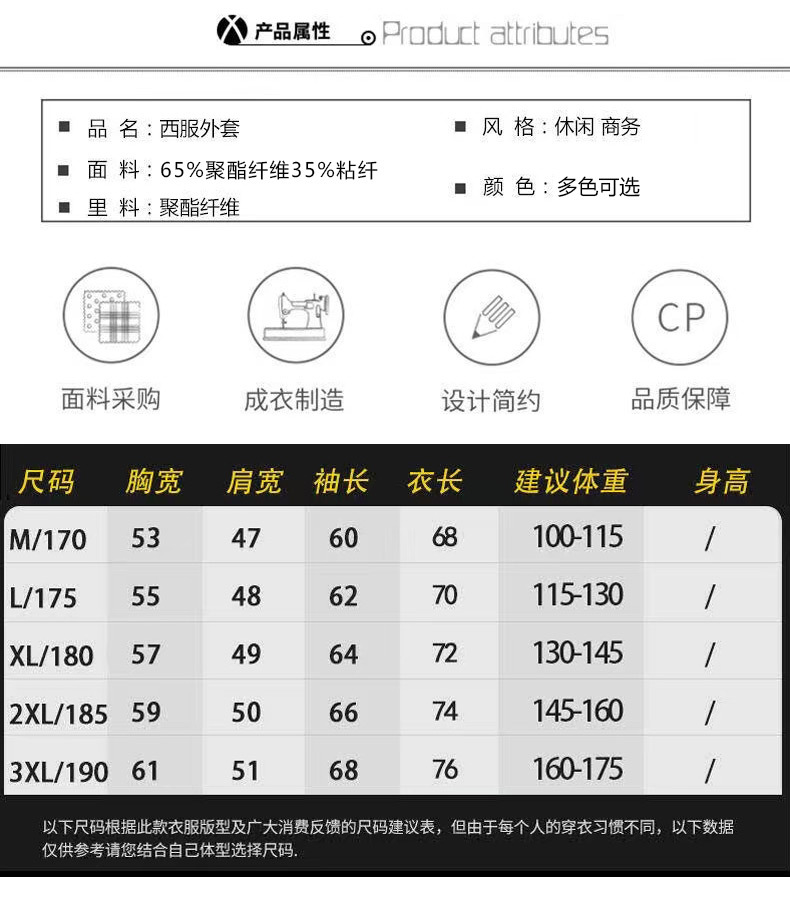 170/M; 175/L; 180/XL; 185/2XL; 190/3XL