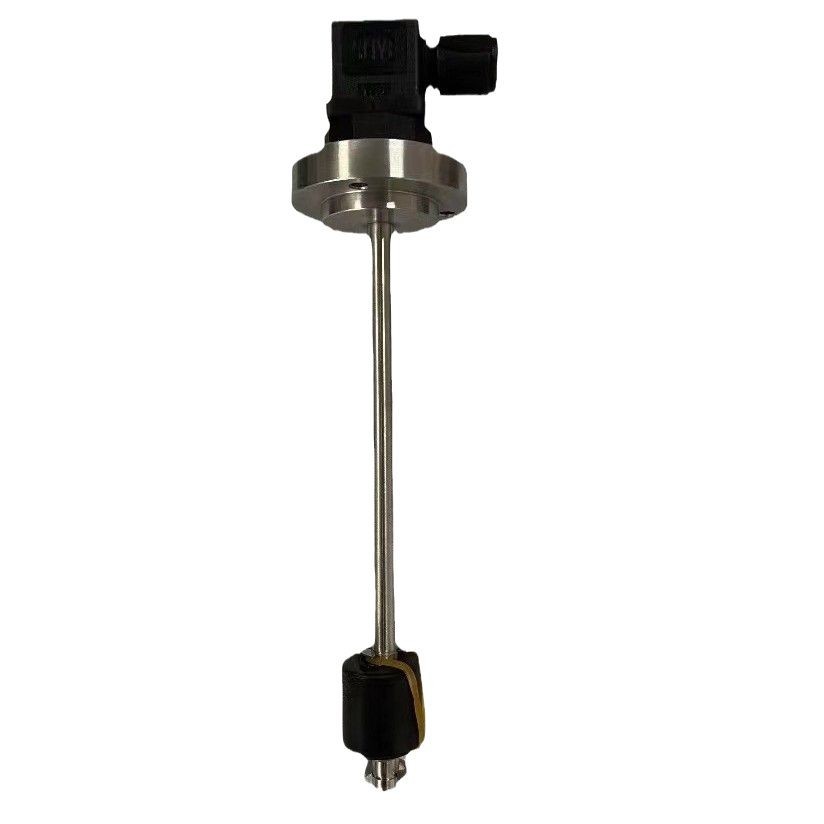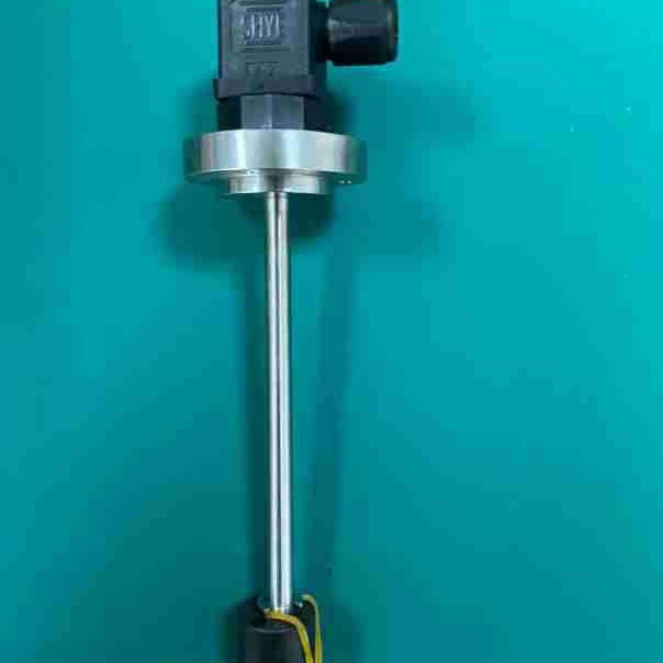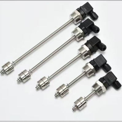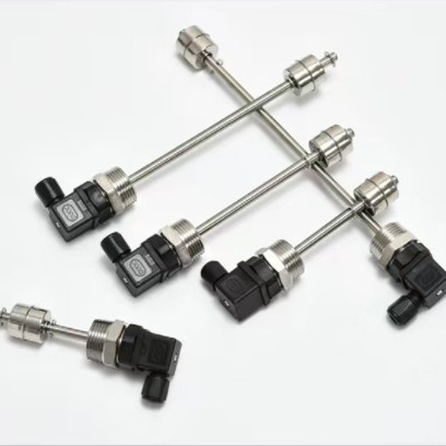 在密闭的金属内,设置一点或多点的干簧管,然后将管子贯穿一个或多个中空且内部装有环型磁铁的浮球,利用固定环将浮球固定在与磁簧开关相关范围内,当浮球移动时,