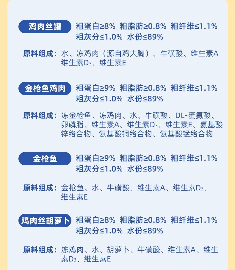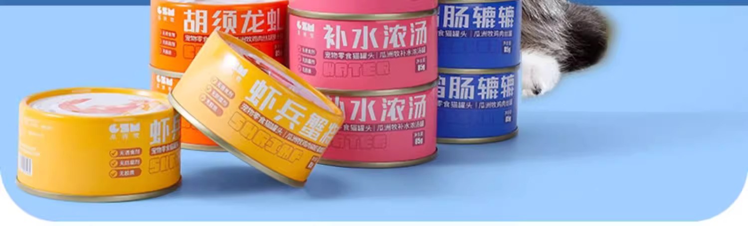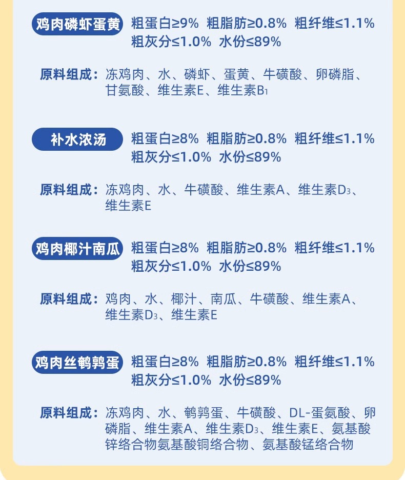 Увлажняющая суповая банка; Банка с морковью, нарезанной курицей; Банка с яичным желтком куриного криля; Банка с курицей и кокосовым молоком и тыквой; Тип A Смешанные вкусы; Смешанные вкусы типа B