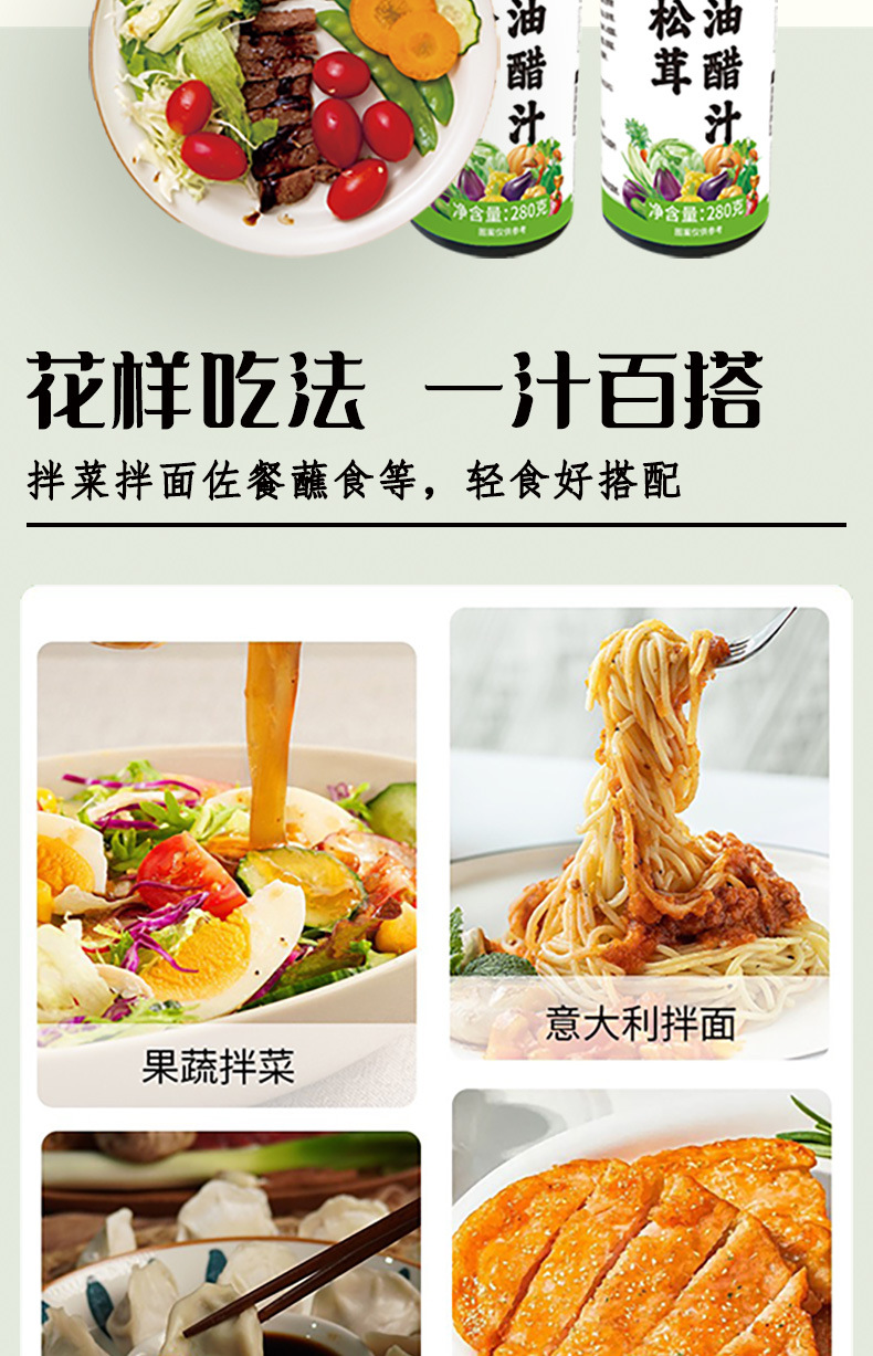 Оливковое масло и уксус для салата с матсутаке, улучшающие свежесть и вкус, вареный соус в бутылках