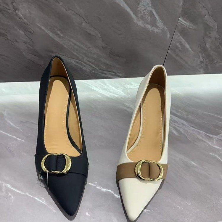 Французские заостренные туфли на каблуках на каблуках женские 2025 новые модные дикие ретро феи одиночные ботинки сандалии