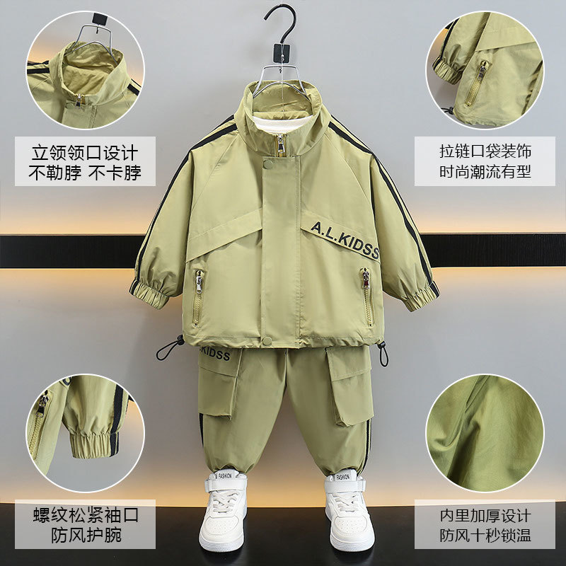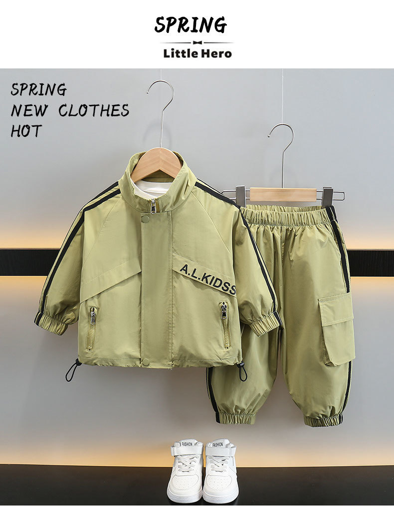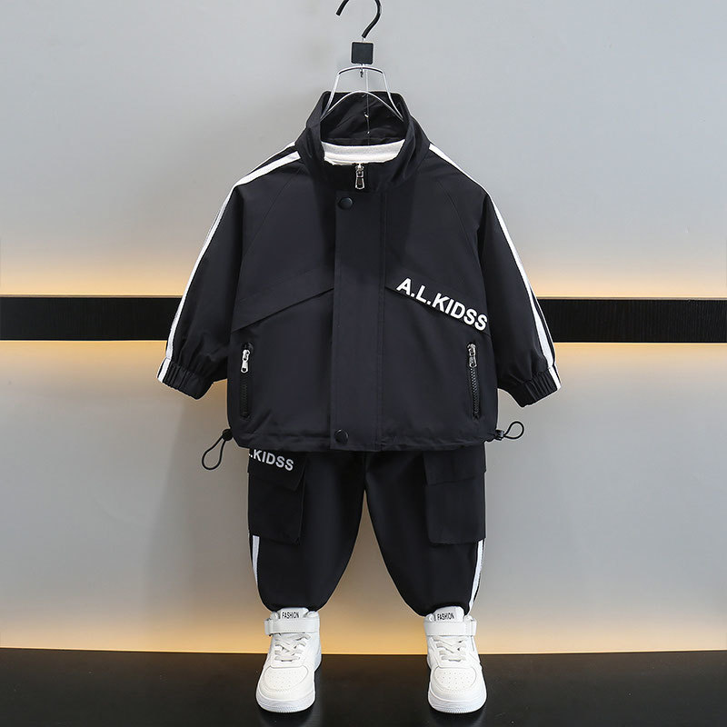 Весенний комплект куртки для мальчиков 2024 Новый средний и маленький ребенок весна крутая красавец спортивная одежда досуг набор из двух частей