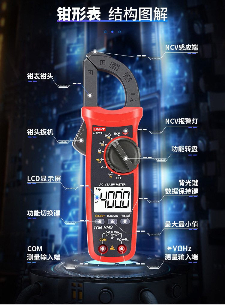 ULIDE UT201 Цифровой зажим мультиметр переменного тока тока электрический мультиметр высокой точности