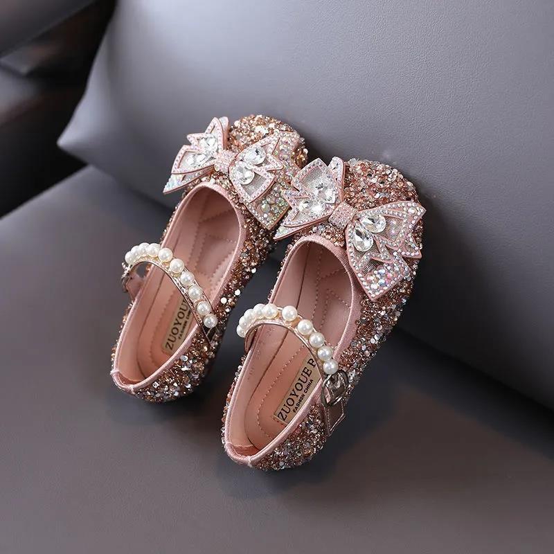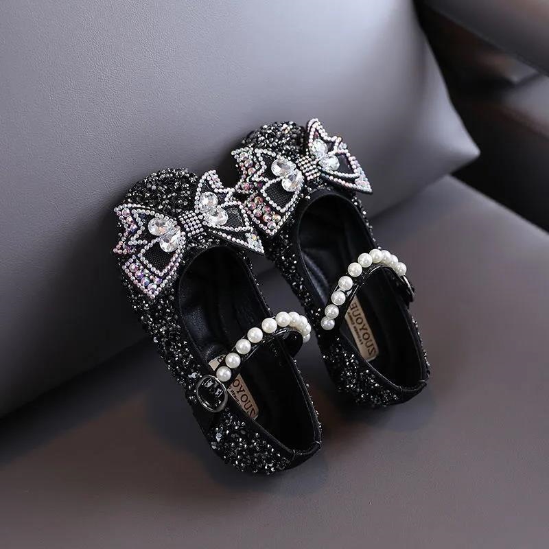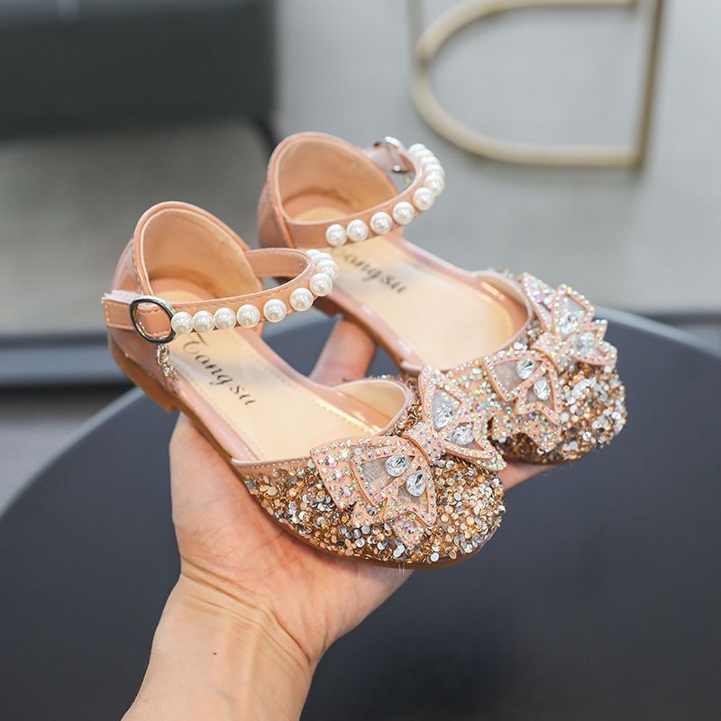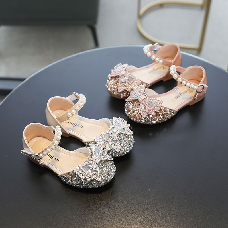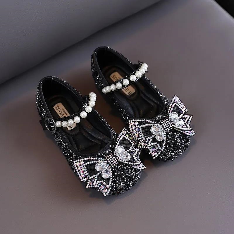 2023 детская обувь принцессы весна и лето новый танец мягкая подошва девушка корейская версия девушки одиночные туфли сандалии хрустальный бант