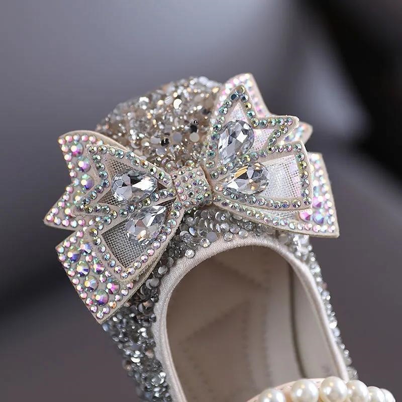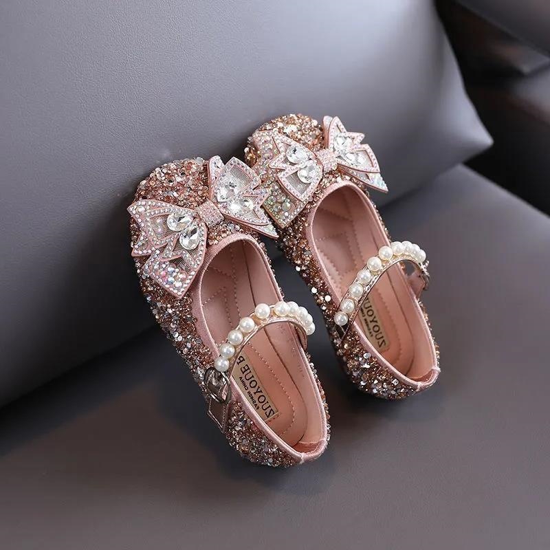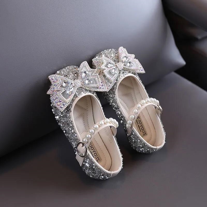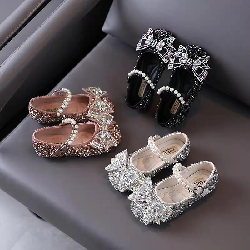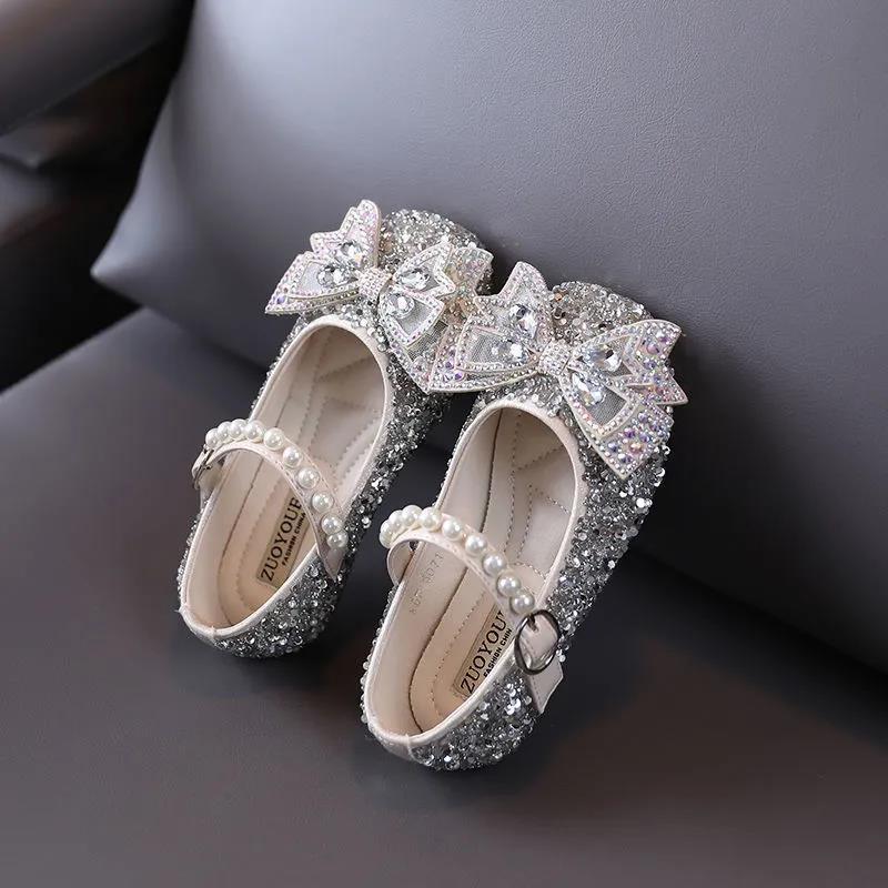 2023 детская обувь принцессы весна и лето новый танец мягкая подошва девушка корейская версия девушки одиночные туфли сандалии хрустальный бант