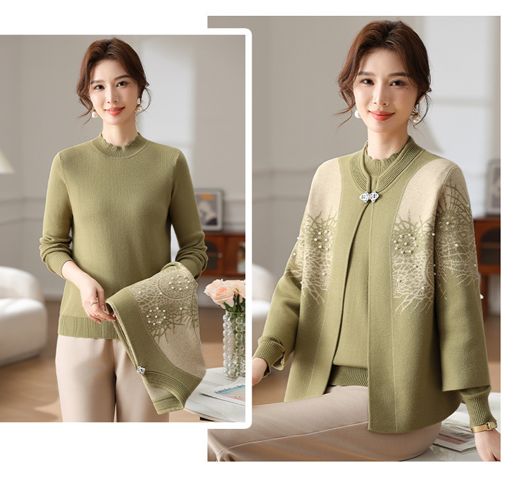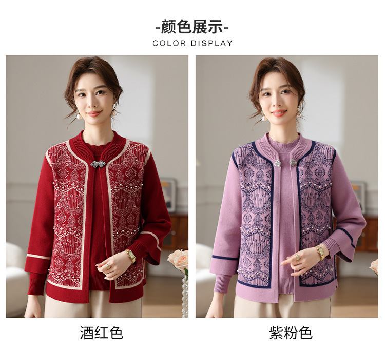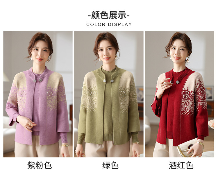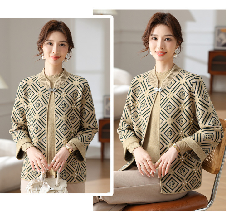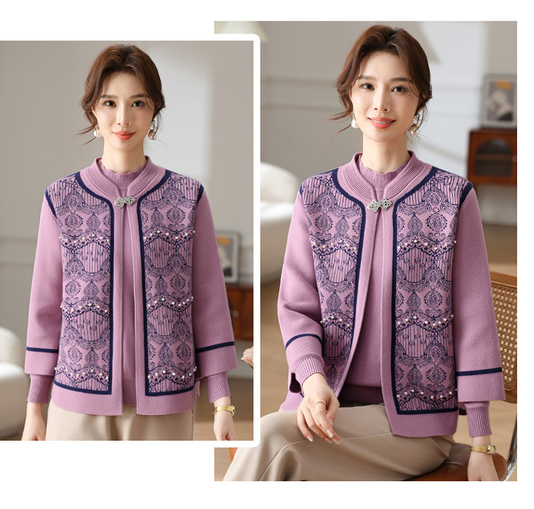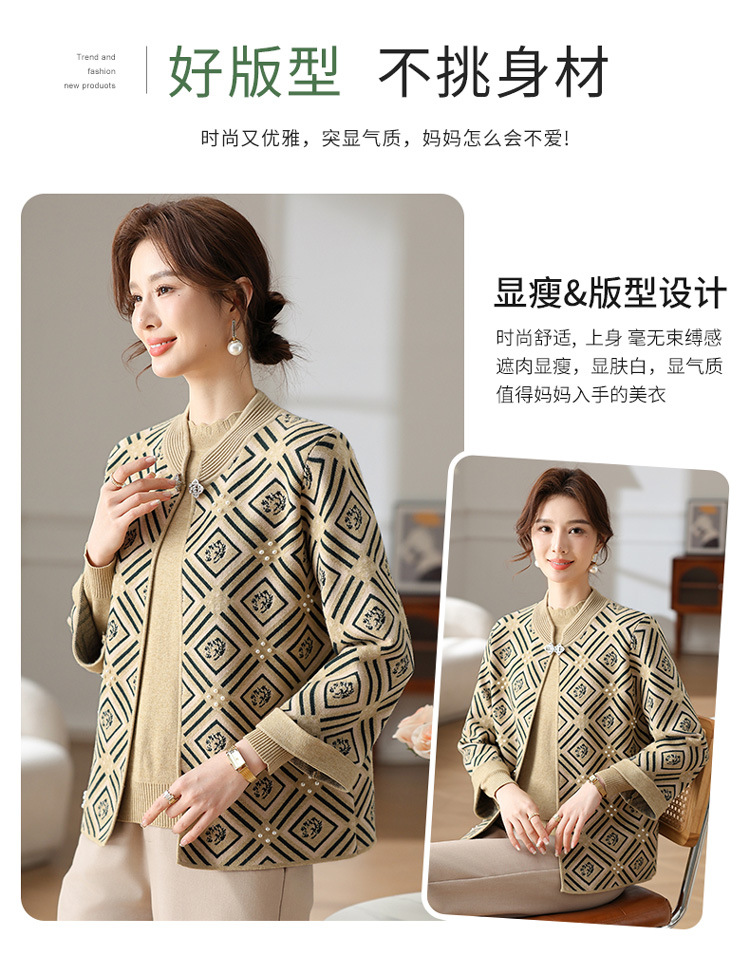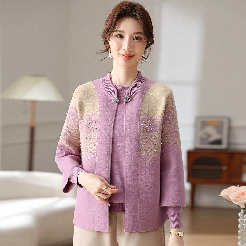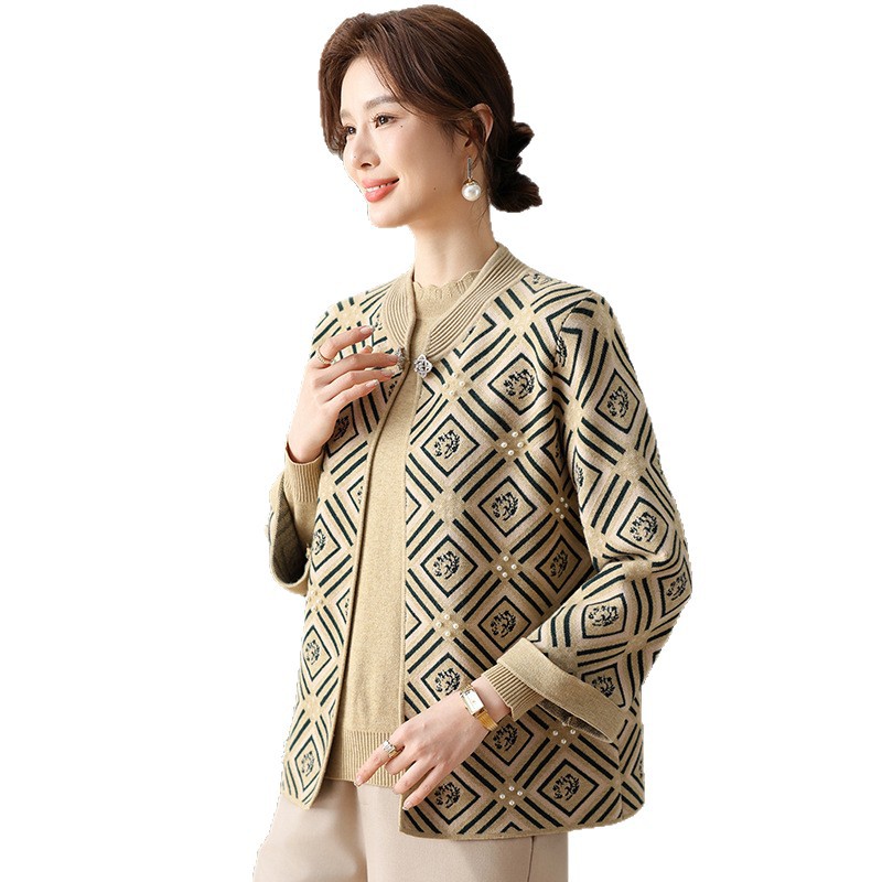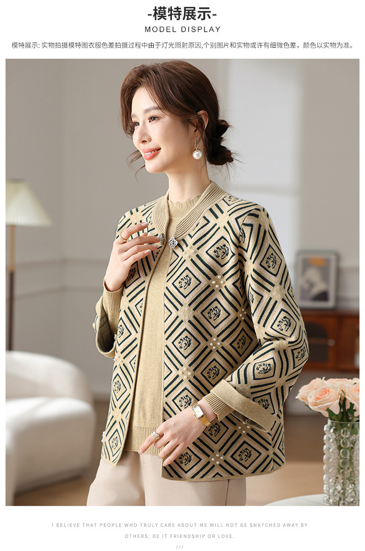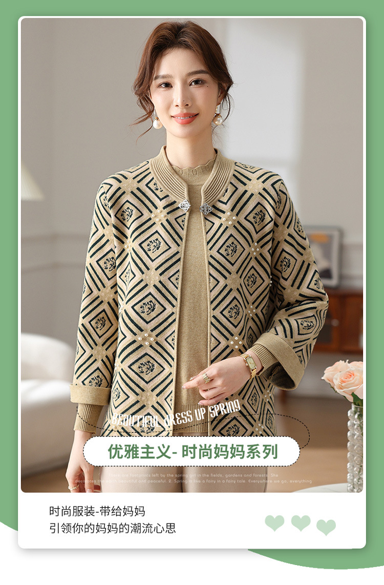 Иностранная мама весеннее пальто 2025 новый средний и пожилой женский весенний и осенний трикотажный кардиган топ из двух частей благородный