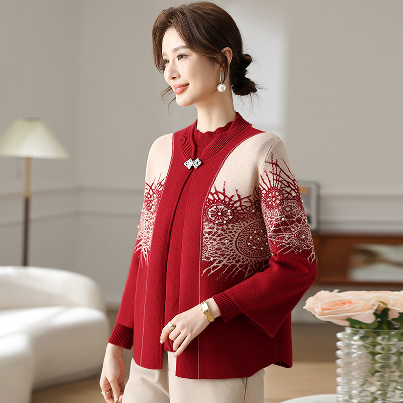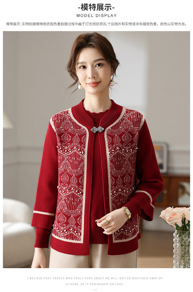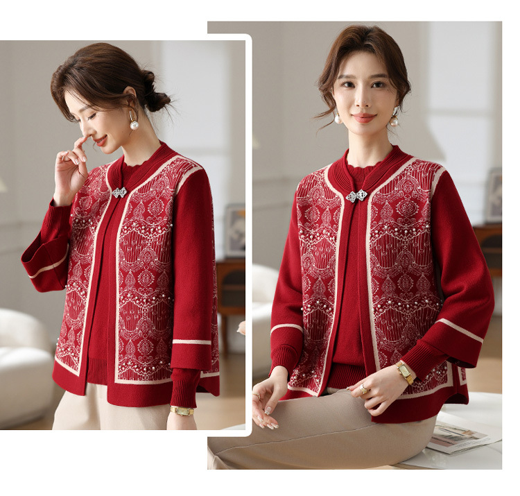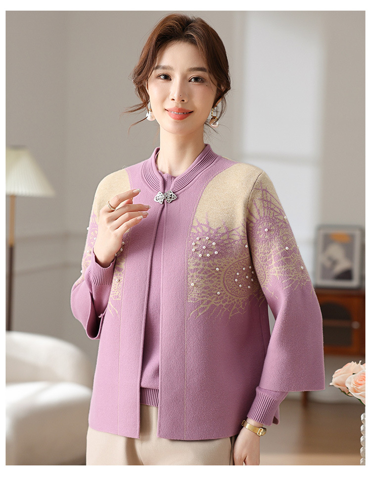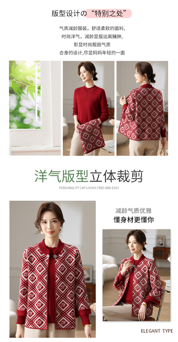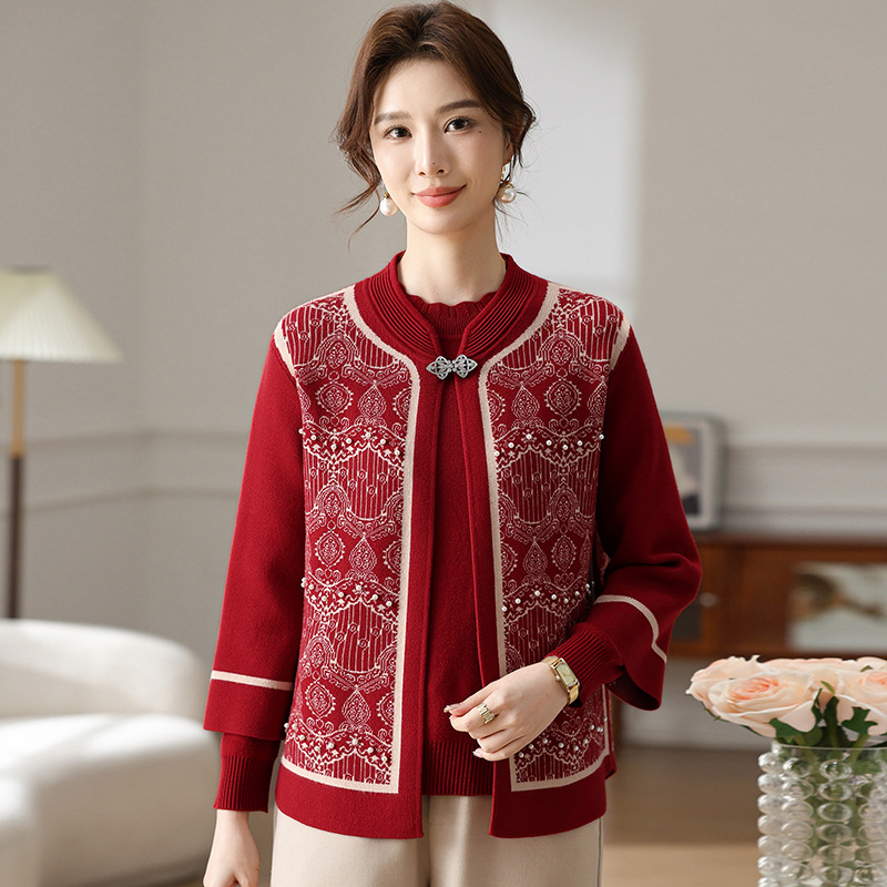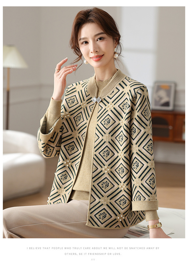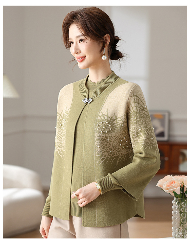 Иностранная мама весеннее пальто 2025 новый средний и пожилой женский весенний и осенний трикотажный кардиган топ из двух частей благородный