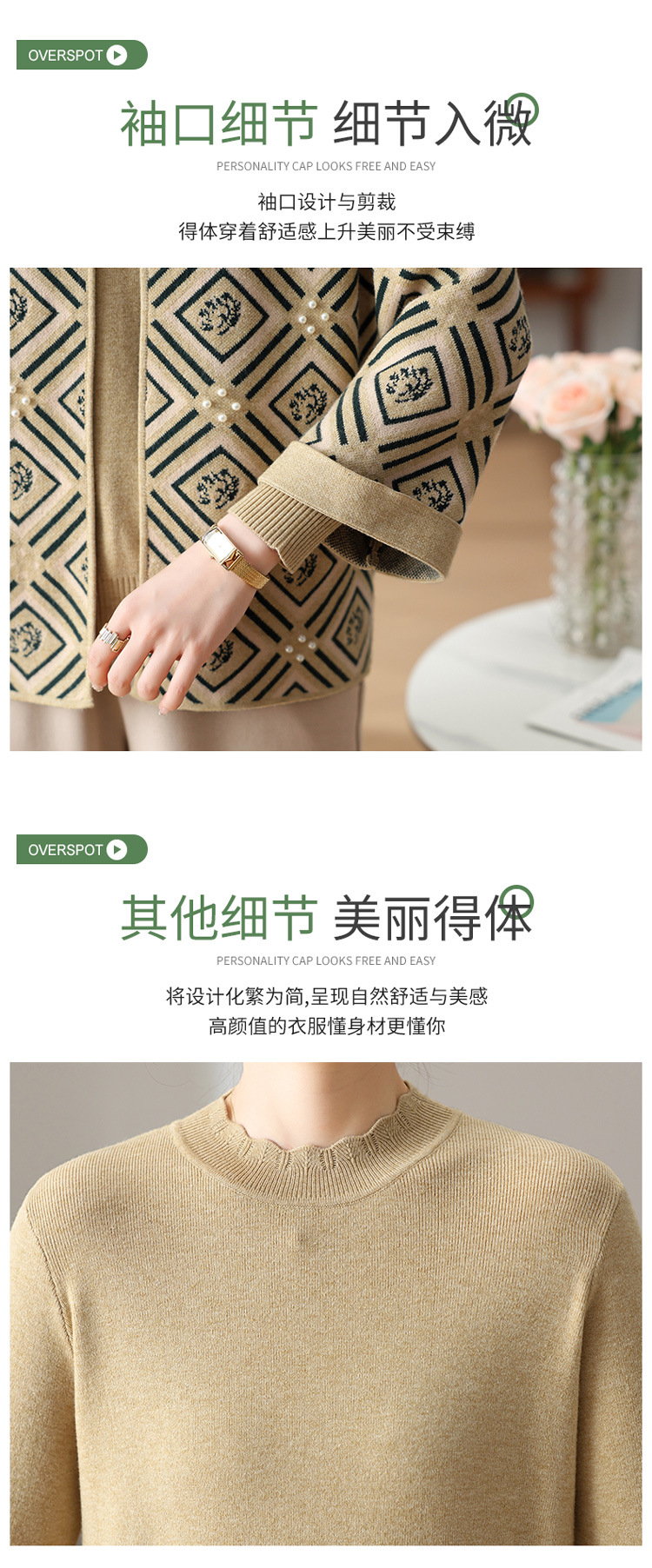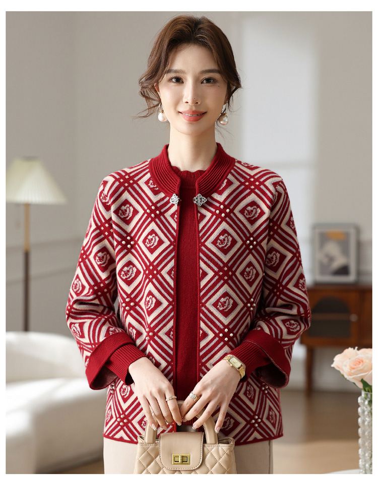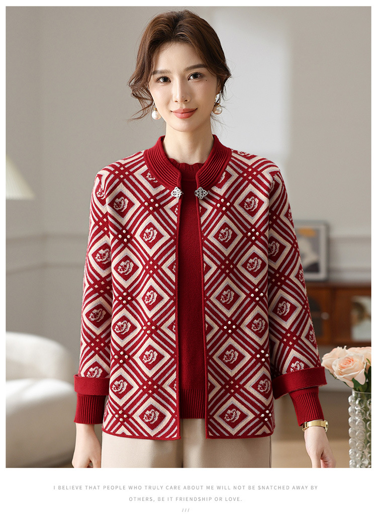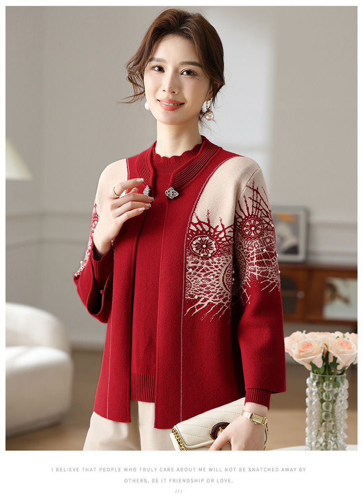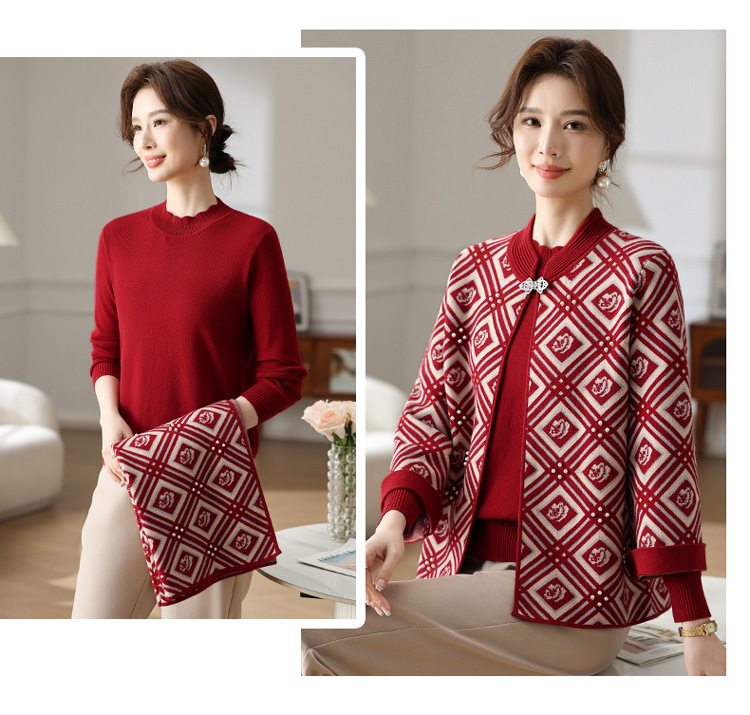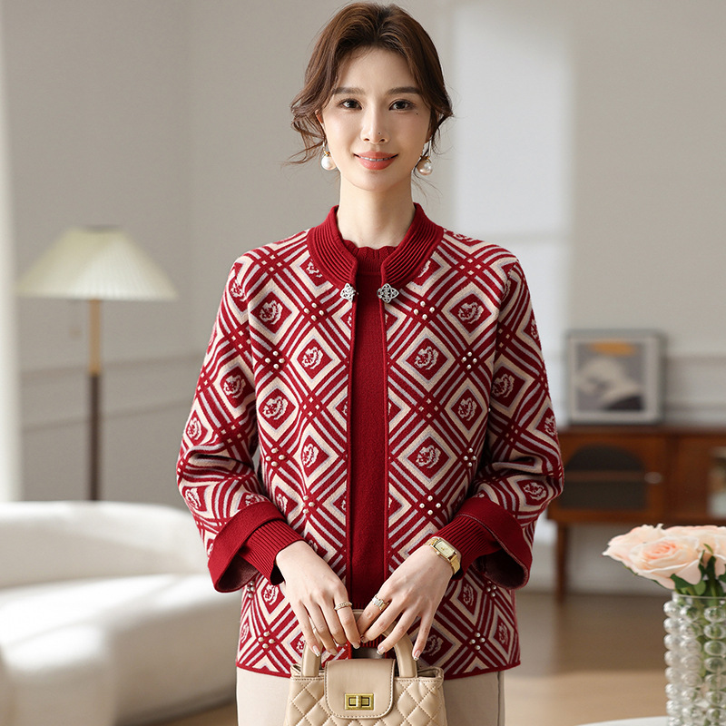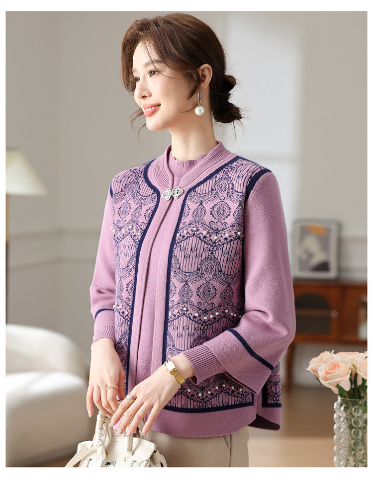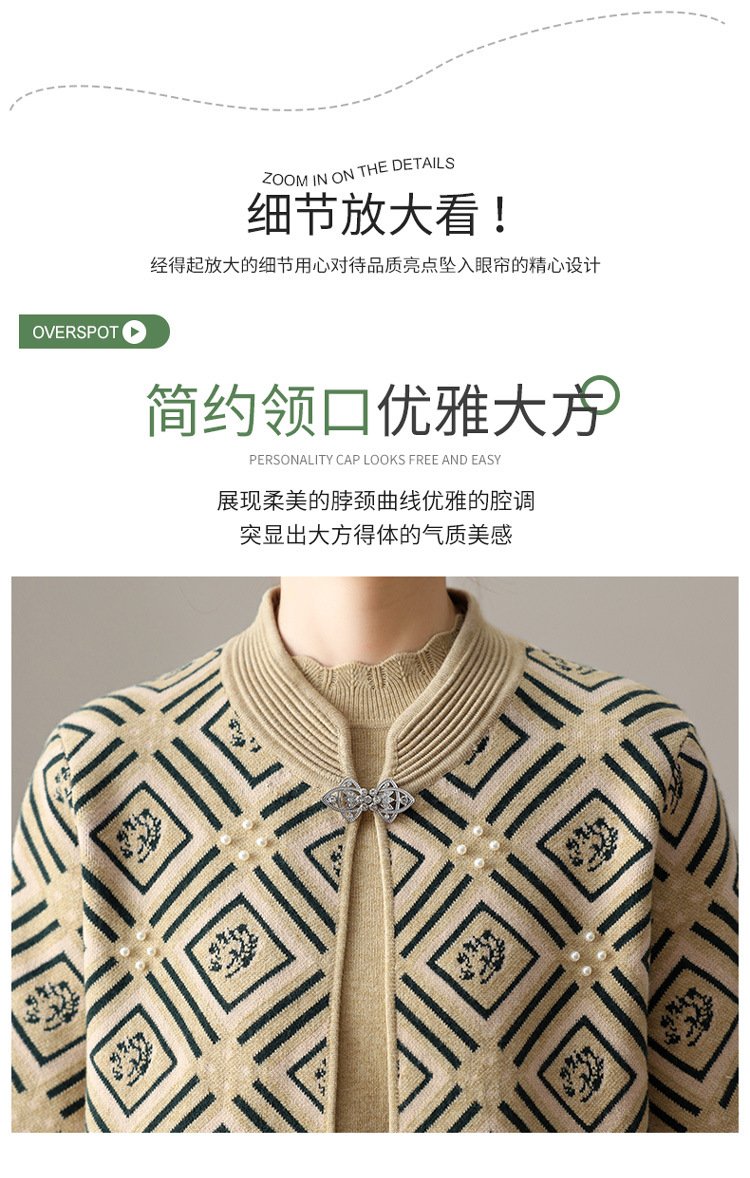 Иностранная мама весеннее пальто 2025 новый средний и пожилой женский весенний и осенний трикотажный кардиган топ из двух частей благородный