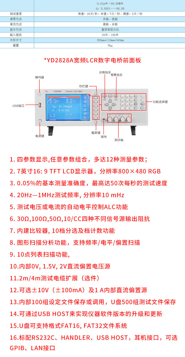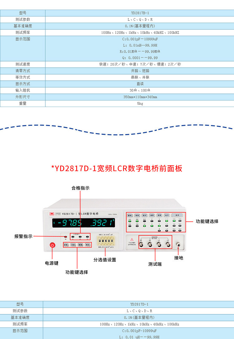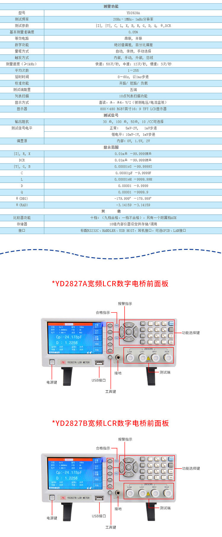 Yangzi YD2827A/B Высокая точность 200 кГц Настольный LCR цифровой мост индуктивный емкостный резистор
