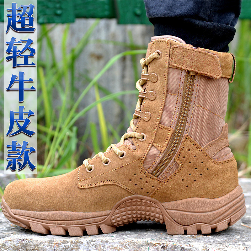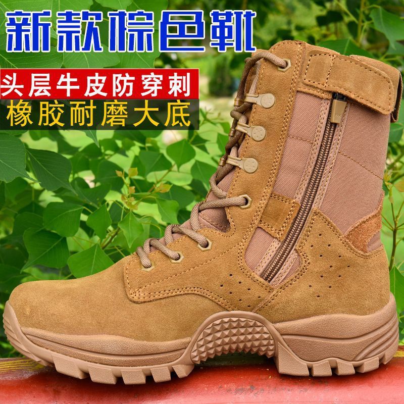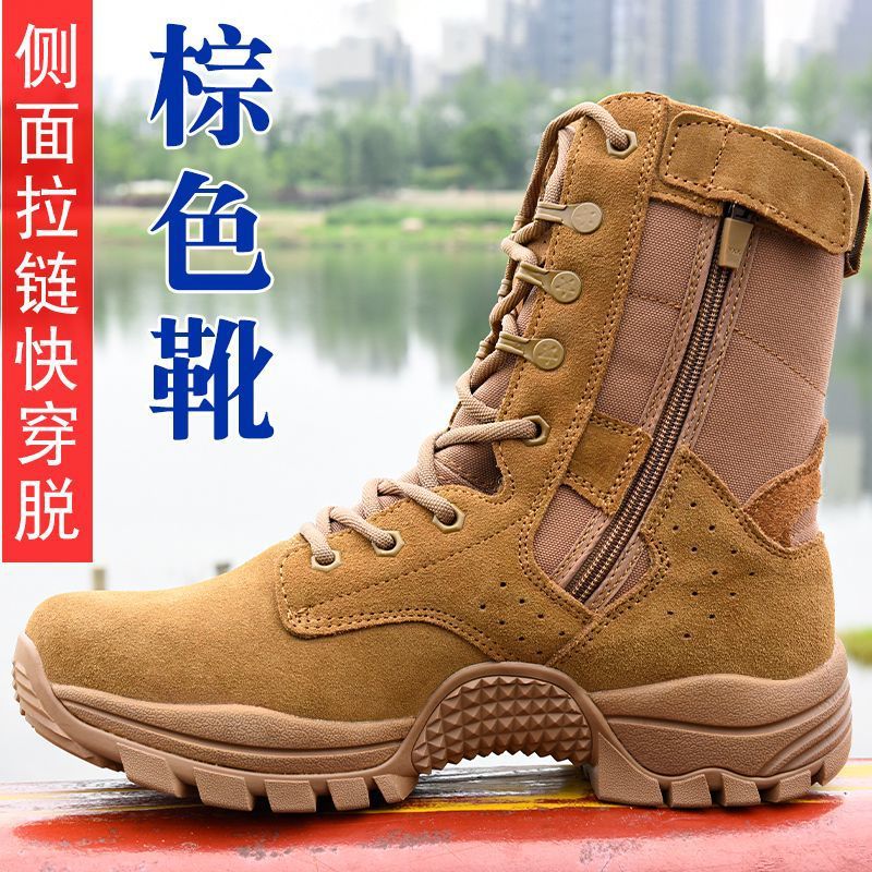 Новые коричневые мужские ботинки для боевой подготовки, износостойкие походные и альпинистские ультралегкие походные ботинки на молнии, высокие военные тренировочные ботинки для женщин.
