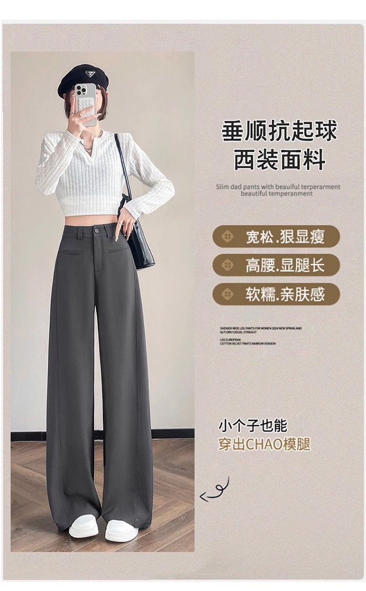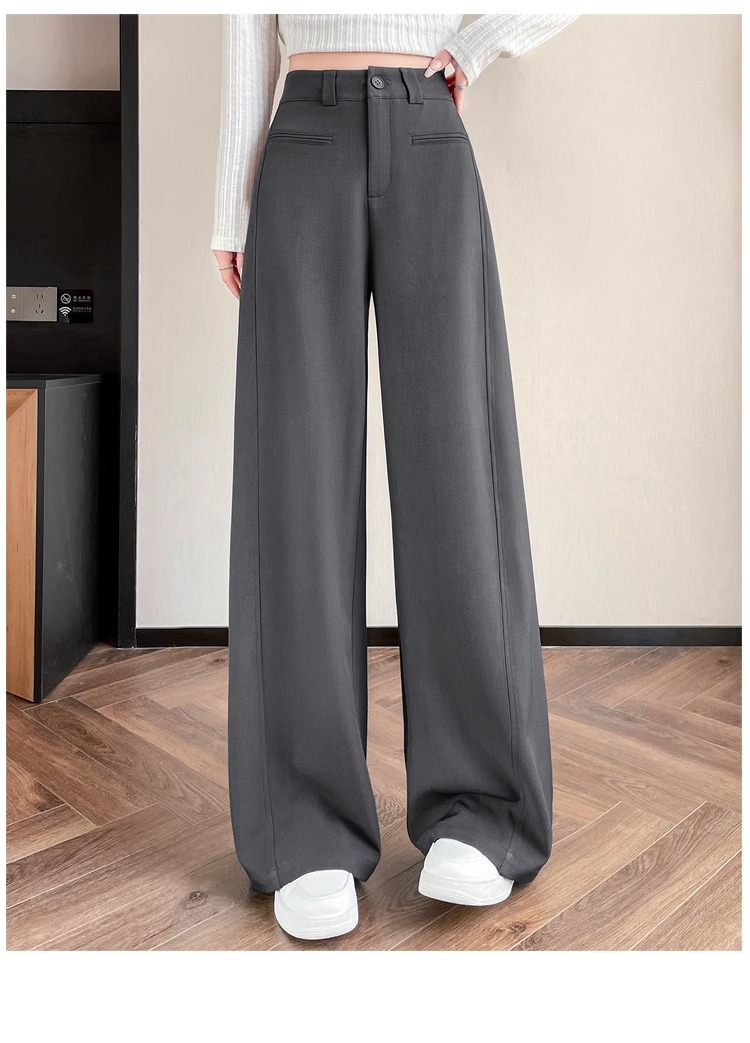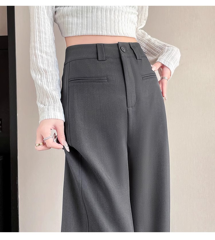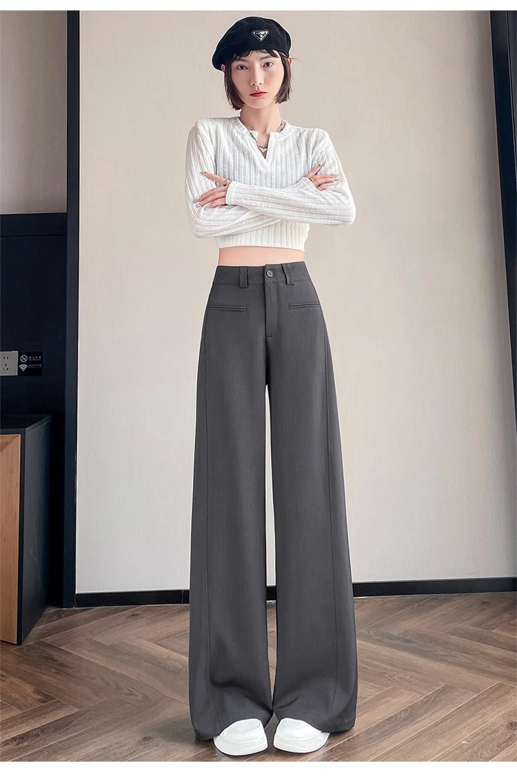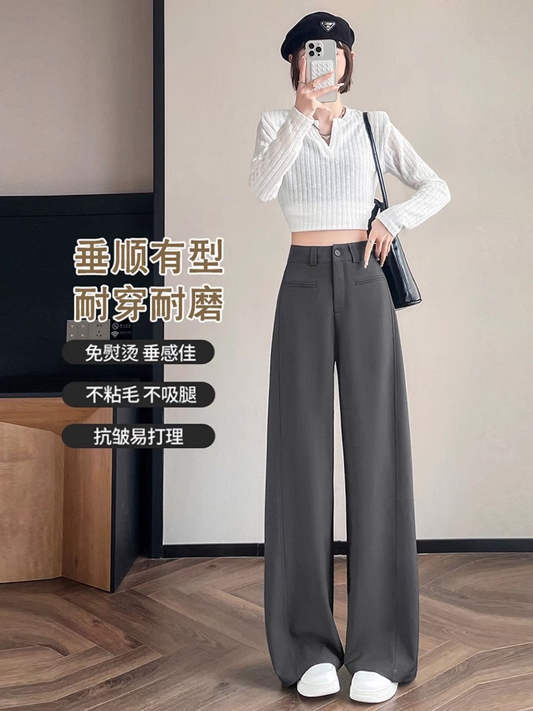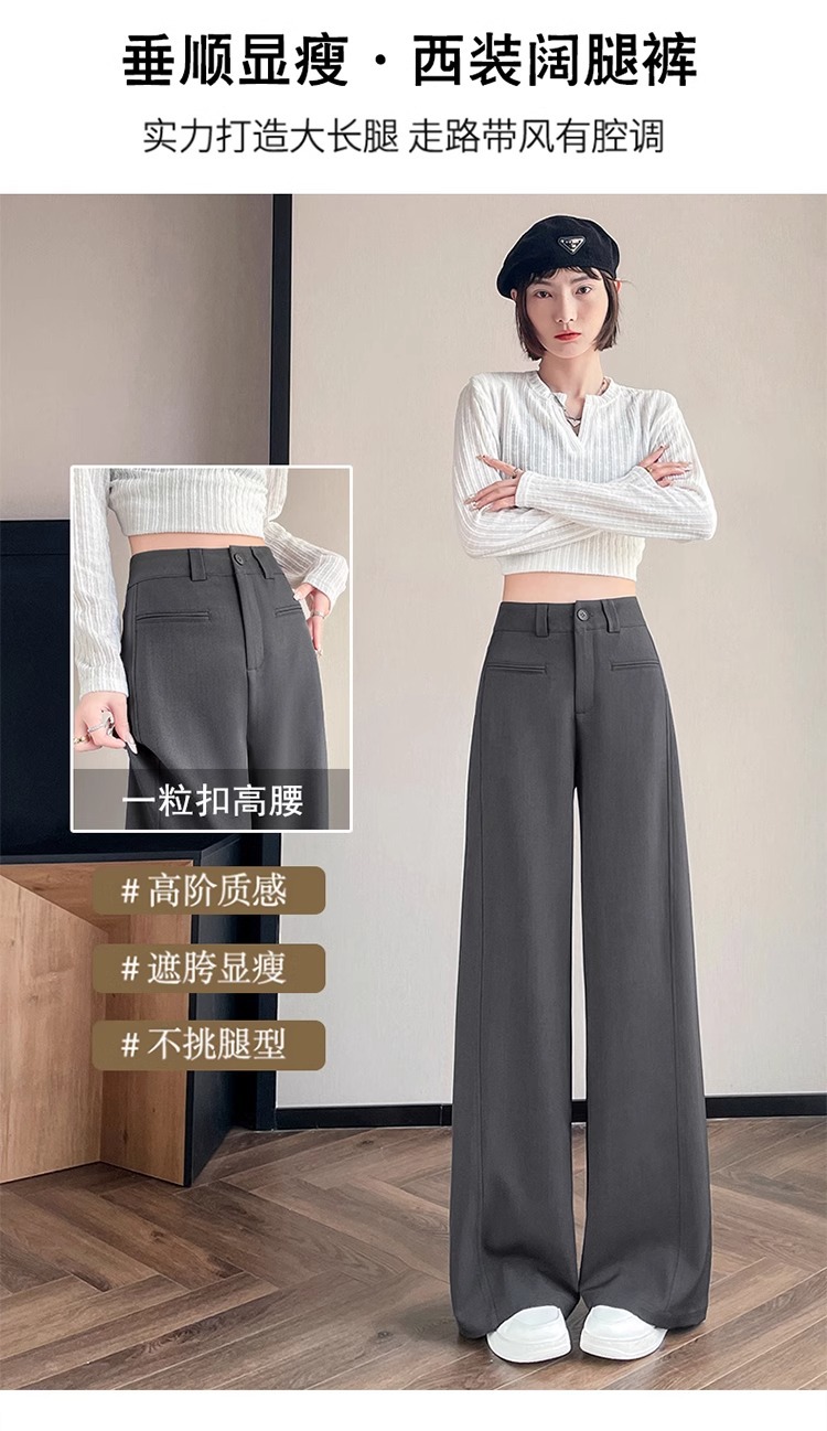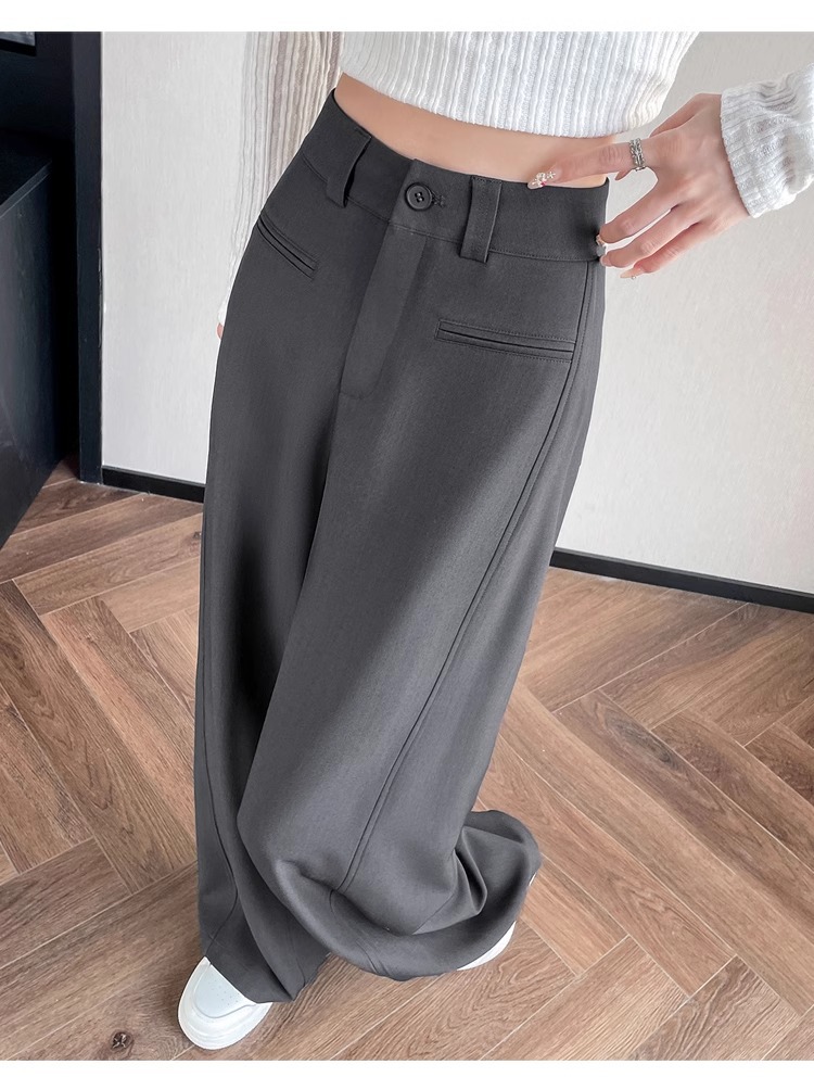 Серый костюм брюки женская весна осень 2025 новый стиль брюки с высокой талией прямой трубочки свободная повседневная перетаскивание широкие брюки